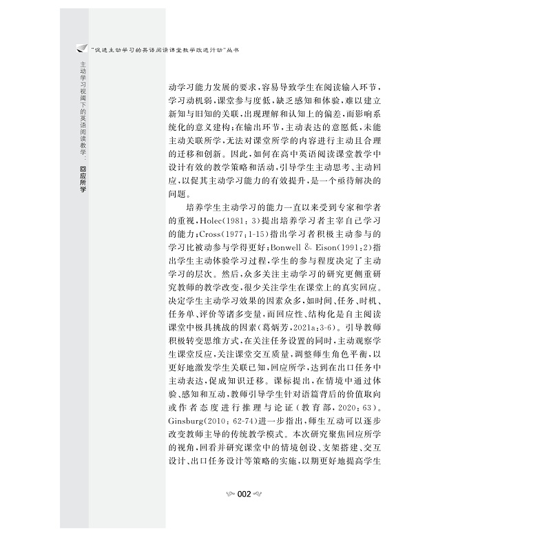 书名:主动学习视阈下的英语阅读教学:回应所学