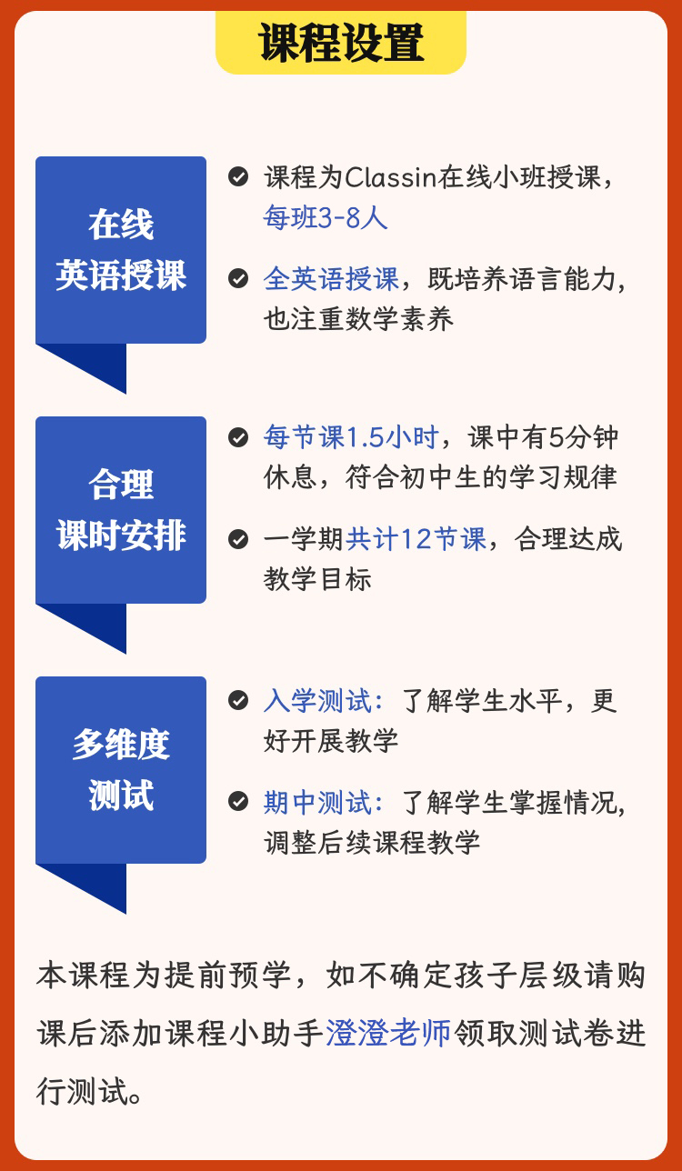 备注:本课程不是义务教育阶段的学科类应试或培优课程,是面向国际化学校初中国际课程