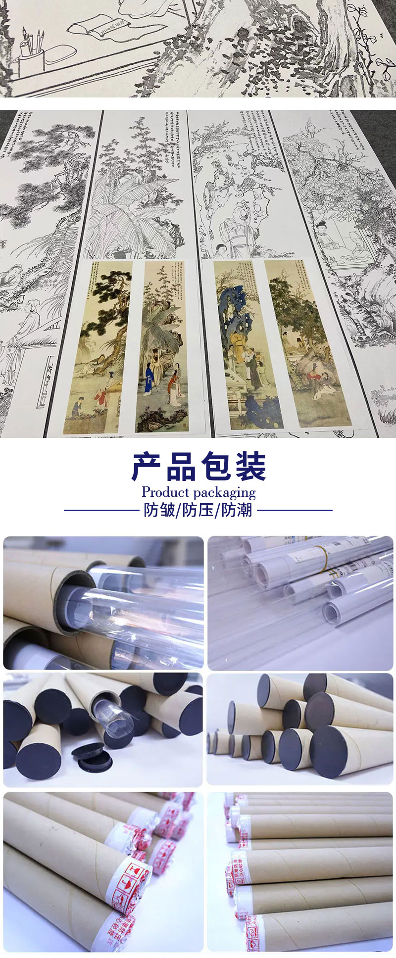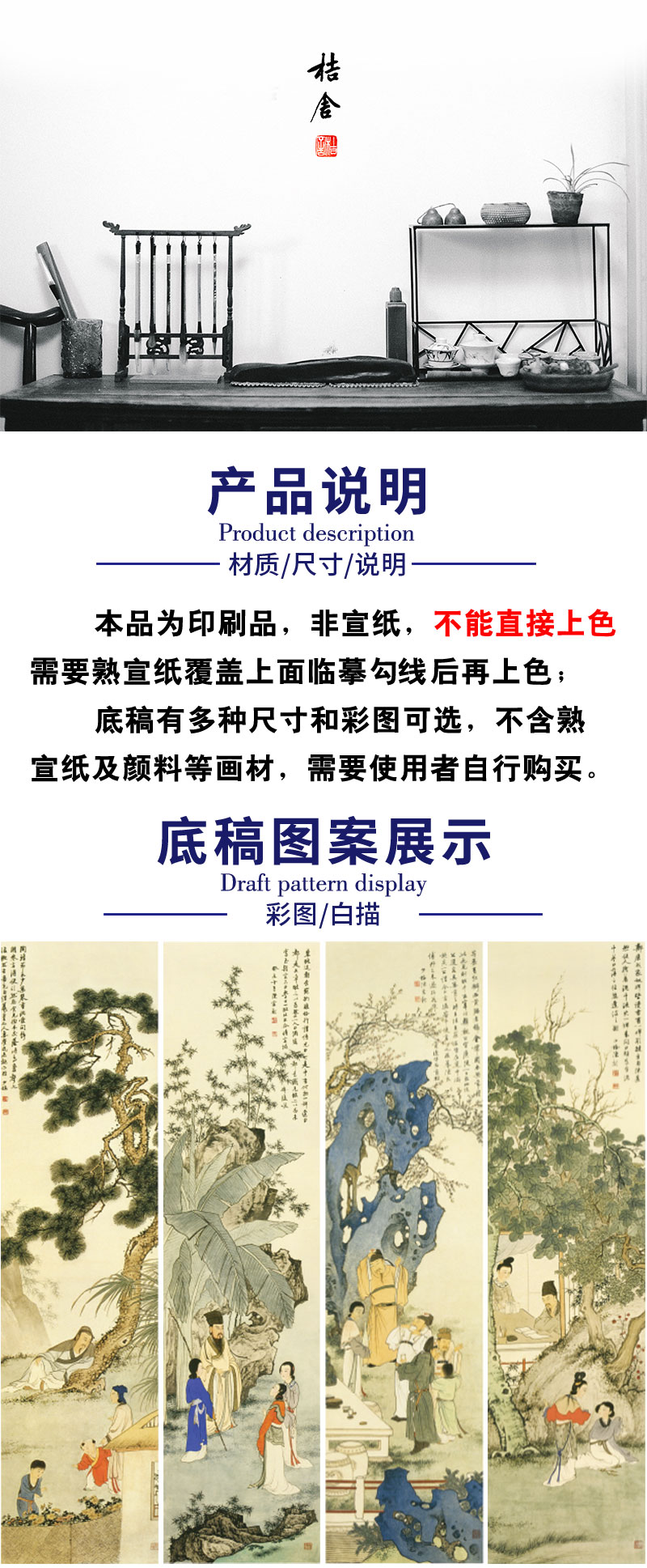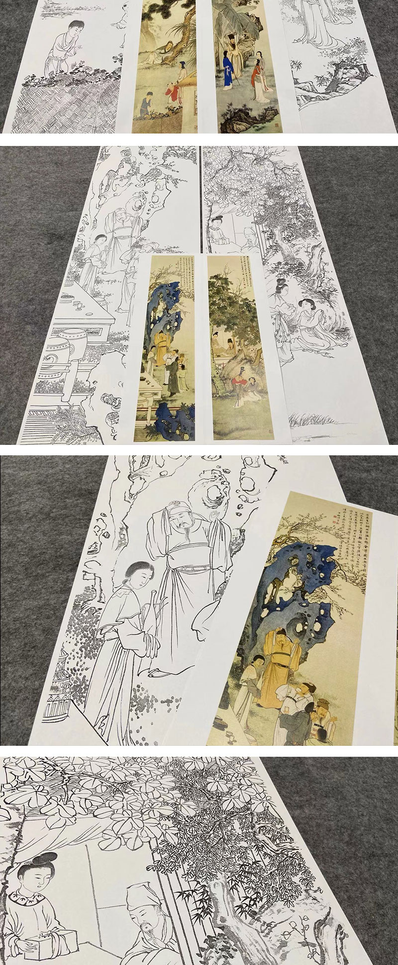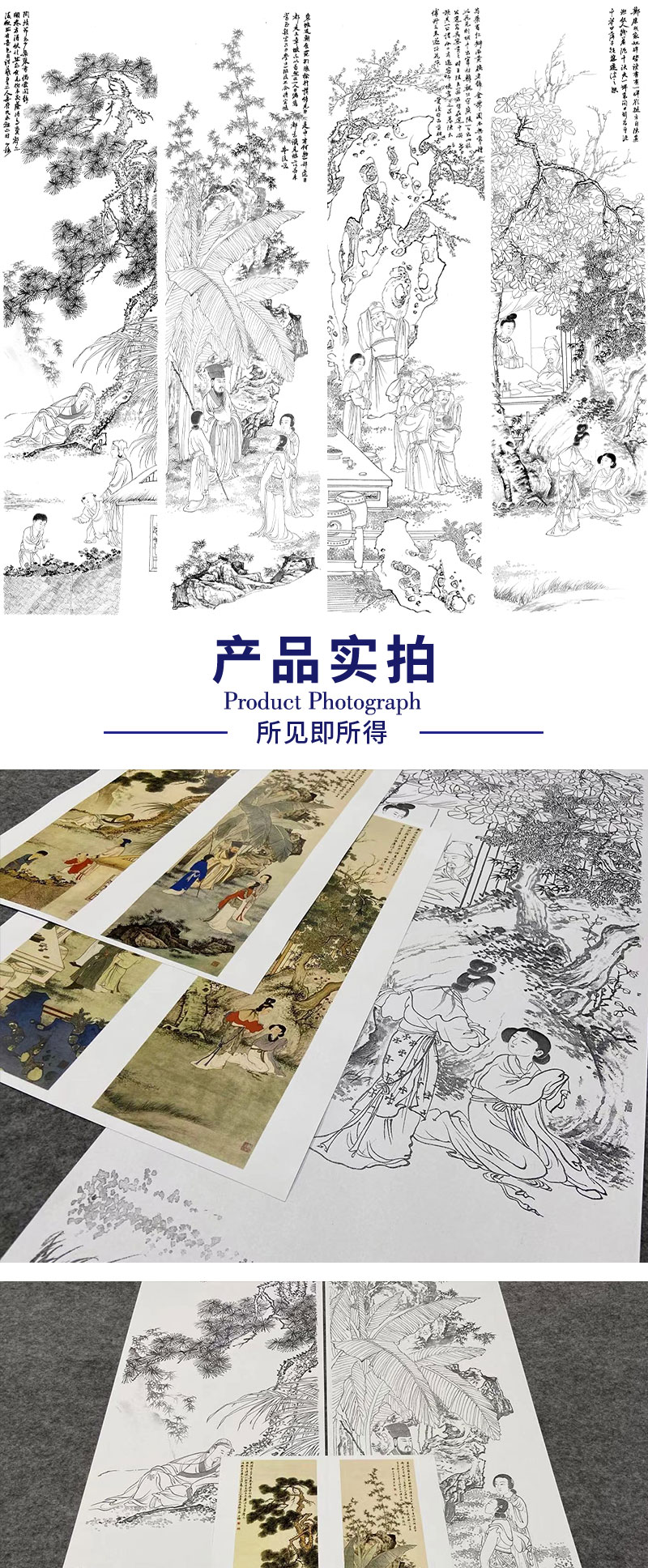 【四条屏】陈少梅工笔画白描底稿山水传统人物临摹勾线高清打印稿CR70