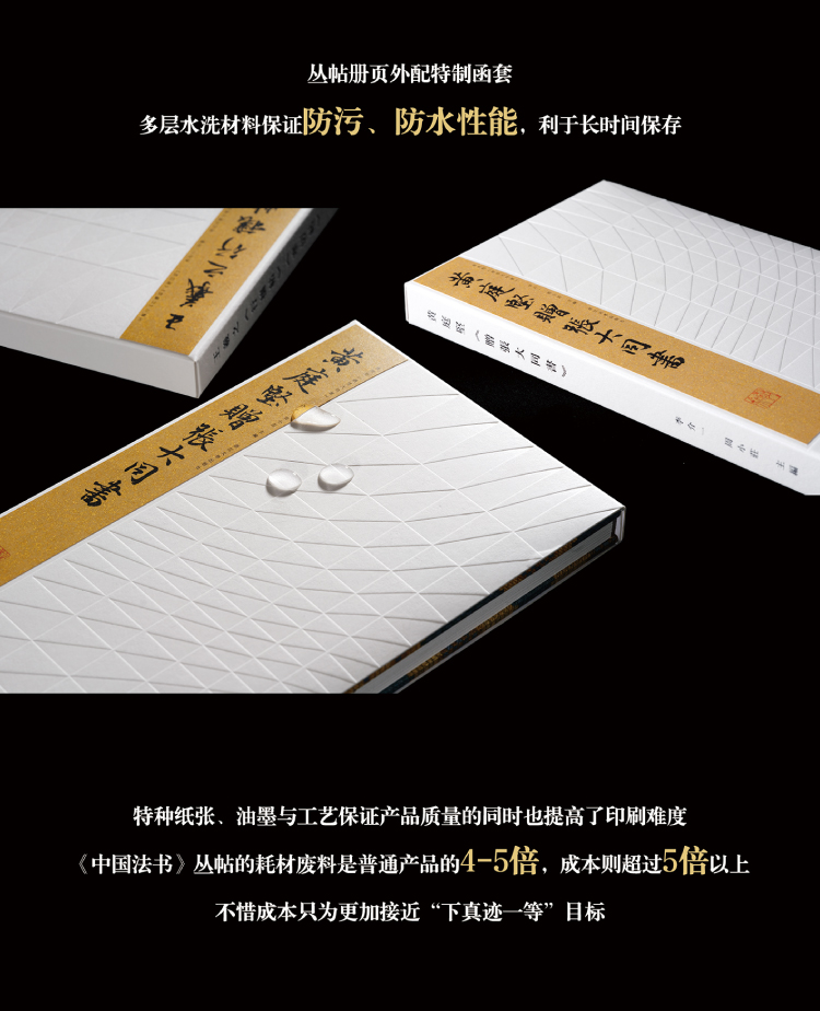 《中国法书》丛帖内文采用特别定制特种纸,具有低反光、高分辨率的特点,可以完美地控制网点扩大率在标准范围之内。