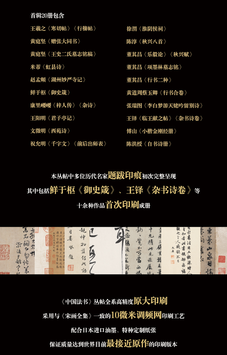 《中国法书》丛帖选取历代著名书家的书法作品,涵盖从晋唐到明清十八位书法大家之代表作。共20种包含22件作品蓄势待发: