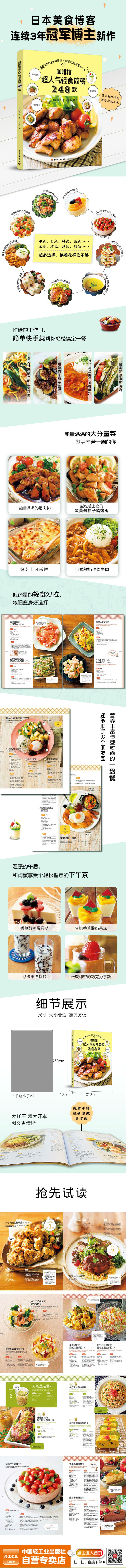 《咖啡馆超人气轻食简餐248款》食谱不仅适合家庭制作,也可以作为咖啡馆经营者菜单设计的参考。