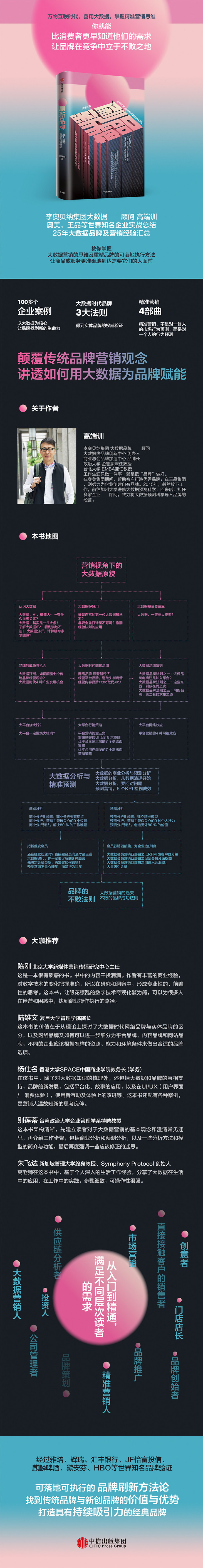 希望管理者与营销人在阅读此书后,能用大数据重新构建营销模式,找到适合自己品牌的发展方向,让品牌焕发新的生命力。