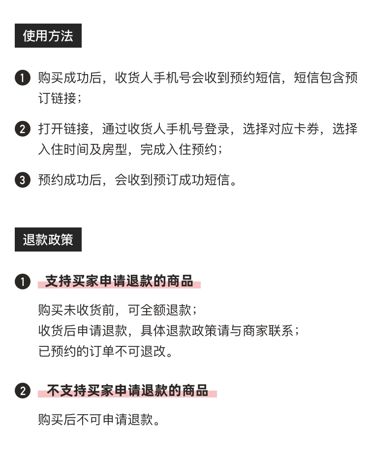 5、退改规则:套餐有效期内未预约可退,一旦预约入住时间,则不可更改取消