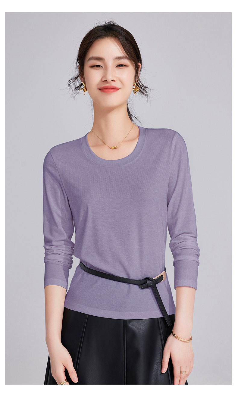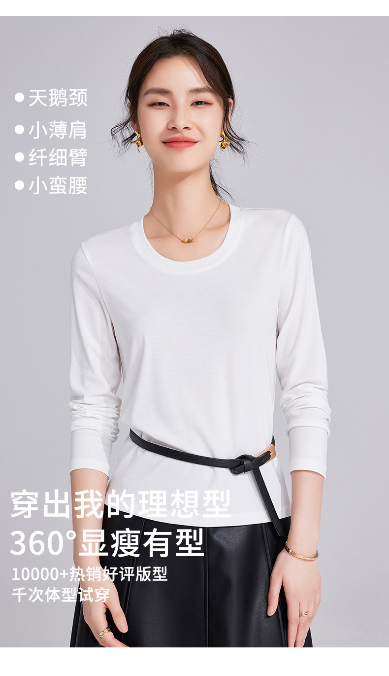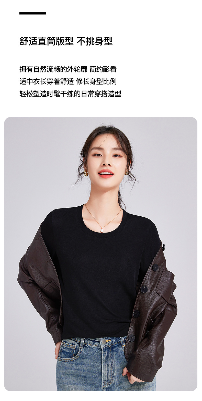 「自j」全新升级【铂金会员119/天猫159/差价40】(92052)洛诗琳天丝亚麻长袖T恤2025早秋新款气质显瘦休闲U领上衣女