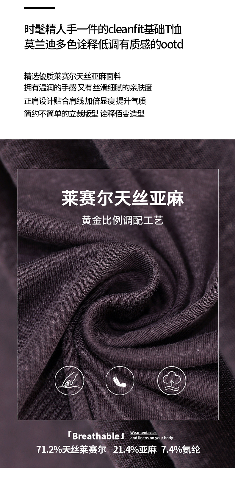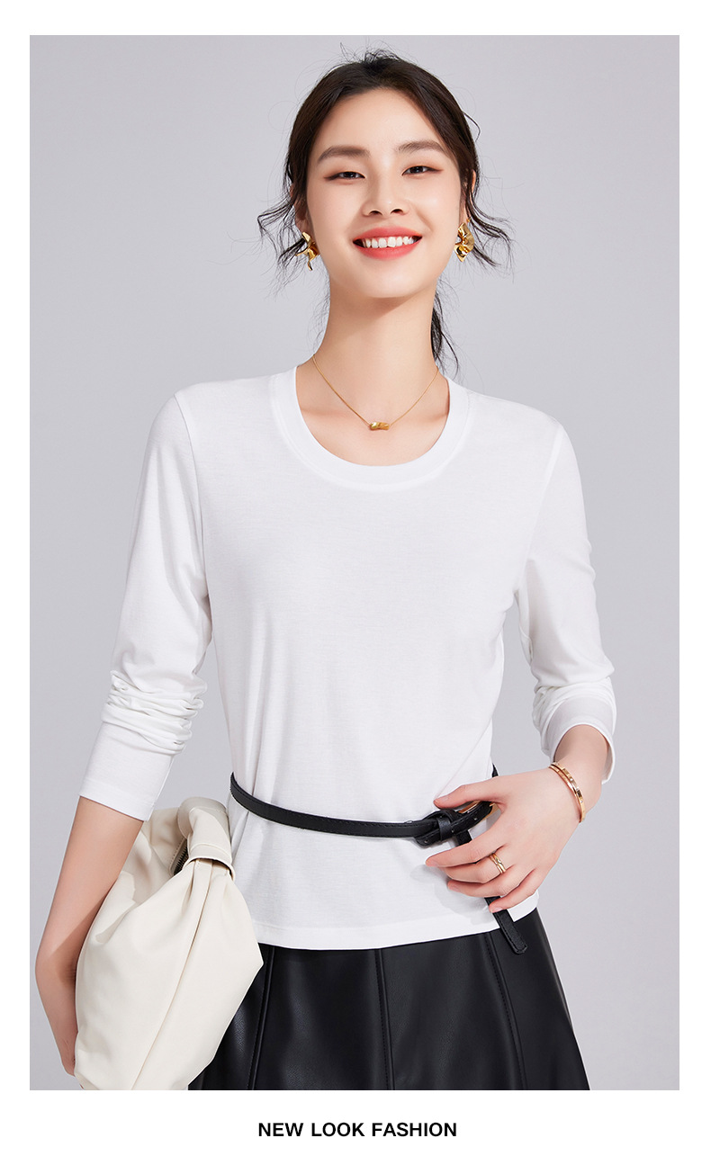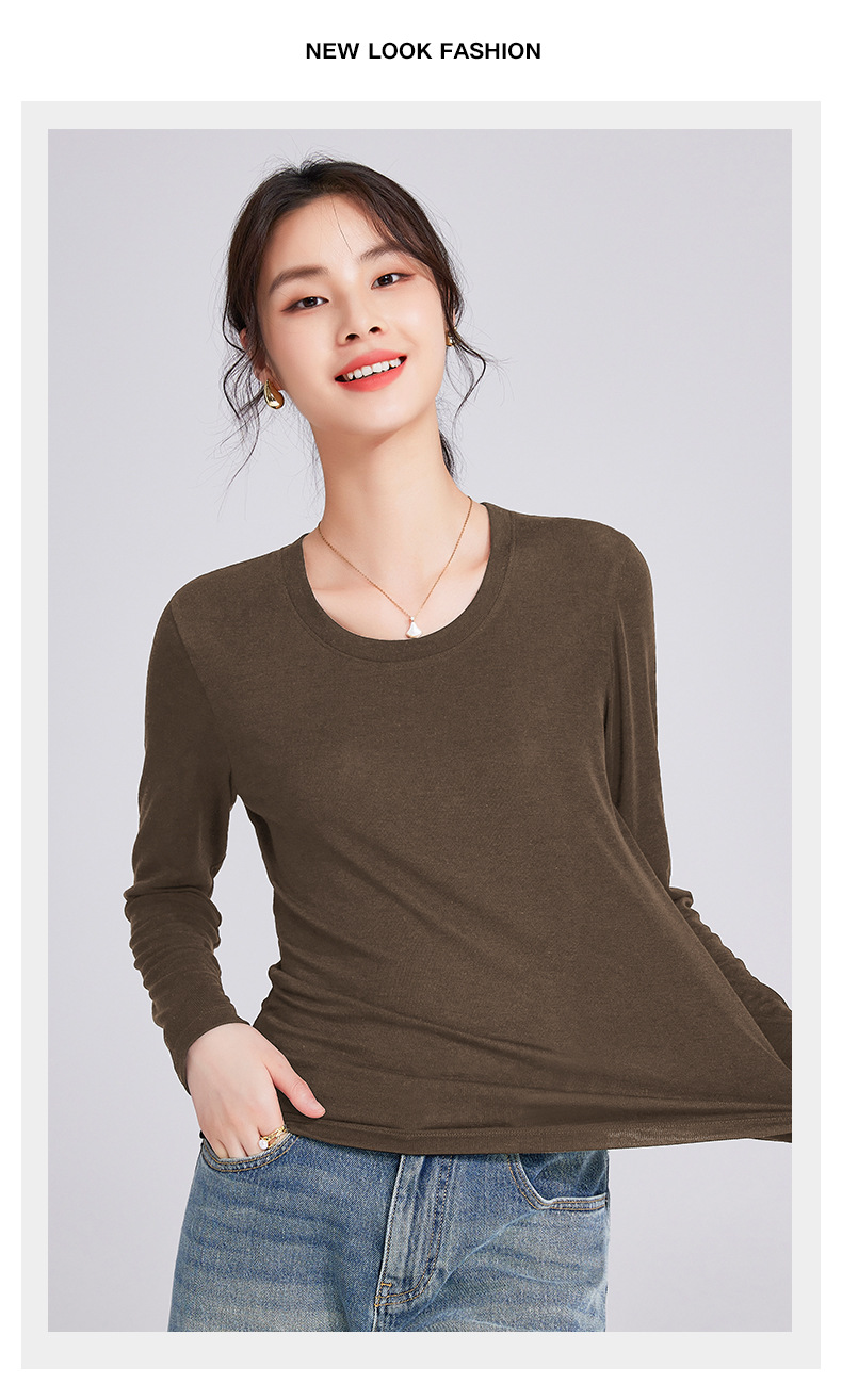 「自j」全新升级【铂金会员119/天猫159/差价40】(92052)洛诗琳天丝亚麻长袖T恤2025早秋新款气质显瘦休闲U领上衣女