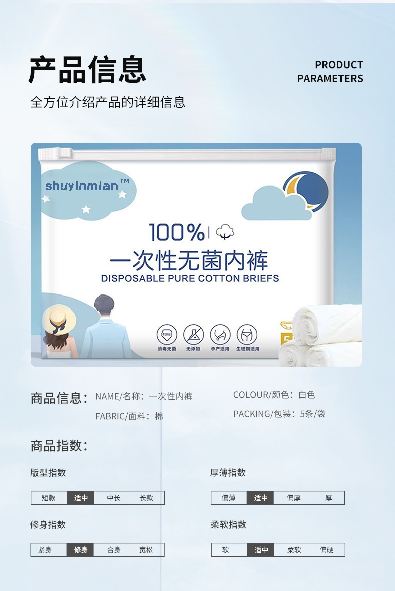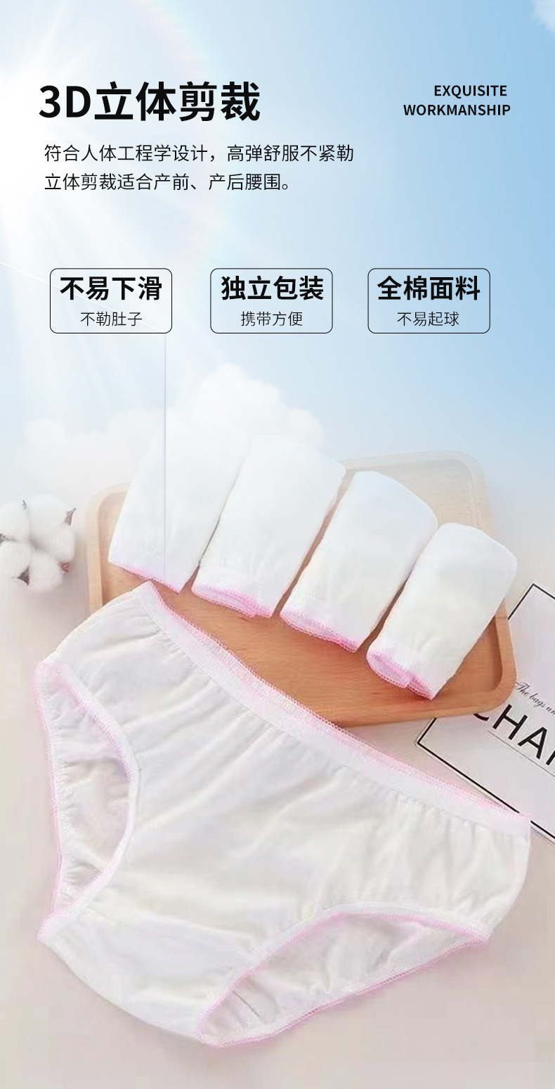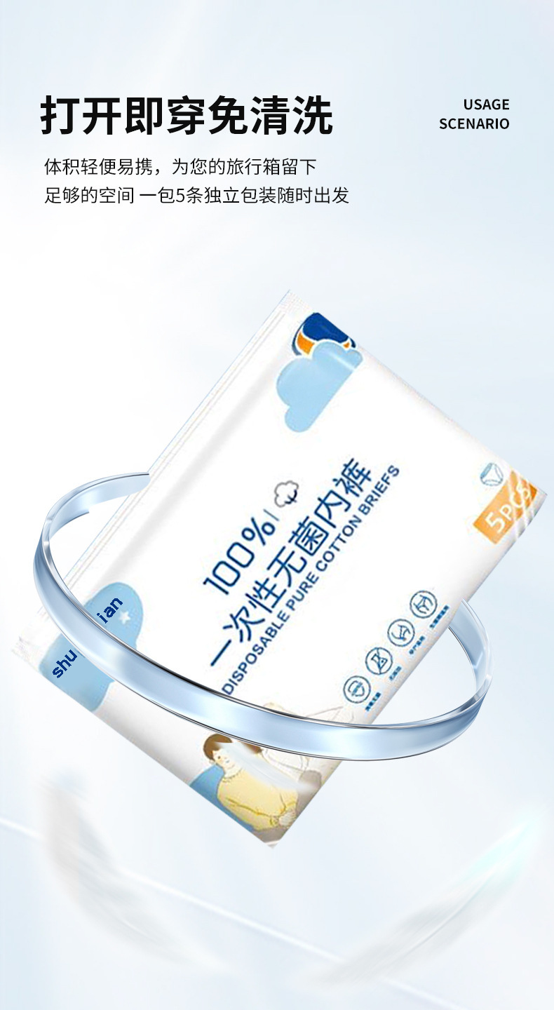 【打开即穿免清洗 体积轻便易携】女生产妇孕妇无菌免洗内裤 独立包装 户外旅行一次性内裤 一包5条独立包装随时出发-QQ