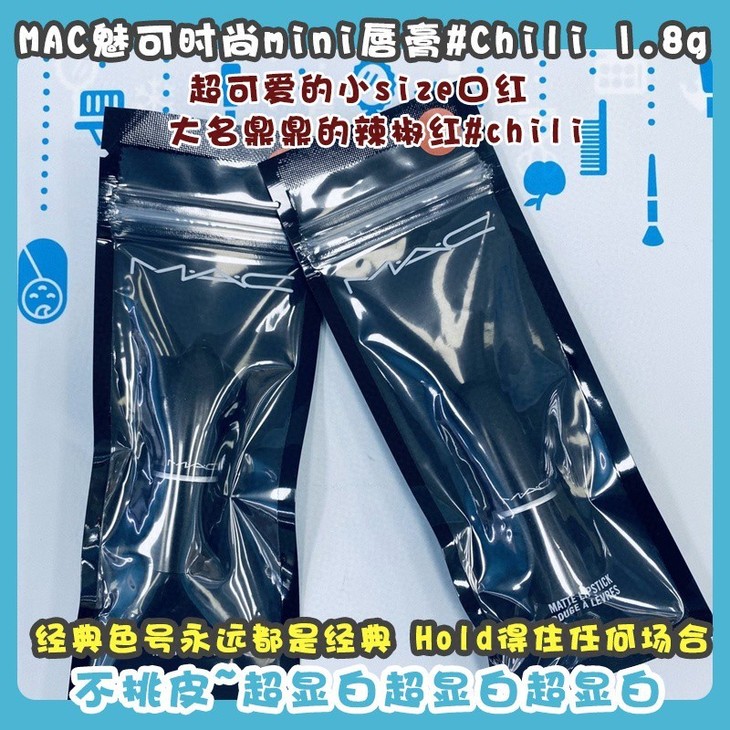 MAC魅可时尚mini唇膏#Chili 1.8g👍超可爱的小size口红👅,大名鼎鼎的辣椒红#chili🌶,经典色号永远都是经典,Hold得住任何场合😎,可谓是MAC中的战斗机。小辣椒红是属于那种有些偏一丢丢🍊橘调的红,性感魅力的秀智海报色,涂上十分有气场,不挑皮~超显白超显白超显白,重要的事情说三遍❗❗❗