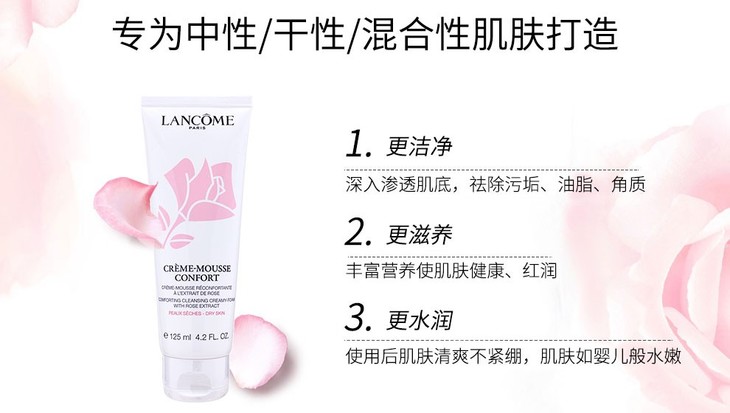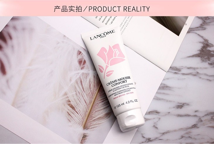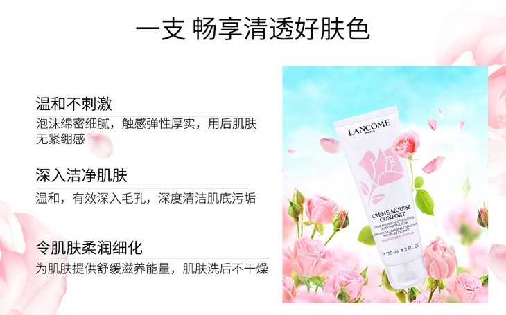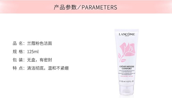 🌈BX👑法国Lancome兰蔻清滢柔肤泡沫洗面奶粉色125ml兰蔻新款洗面,🌻清爽的凝膠質地遇水,形成柔軟泡沫,除去面部灰塵及污垢的同時🐥,溫和的清潔肌膚,不刺激。 💕天然保濕成分,帶給肌膚舒適不乾燥的感受。令肌膚倍感淨透清爽,綻放亮採。☘️富含狗牙薔薇果油🎏、法國薔薇花提取物,與肌膚很好接合,達到潔淨的效果。適合乾性肌膚。