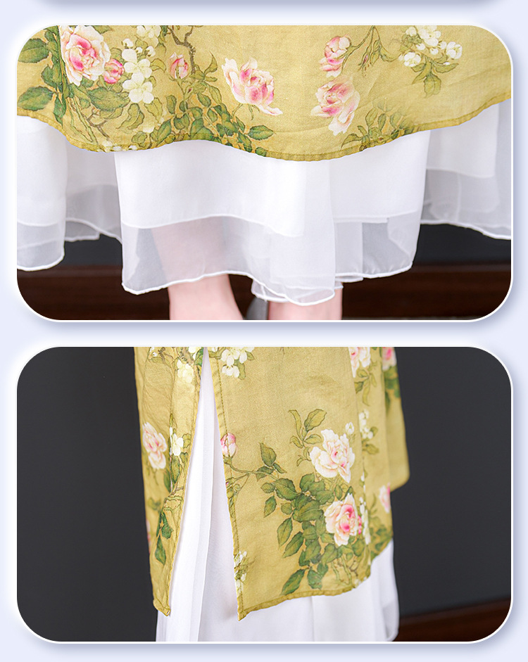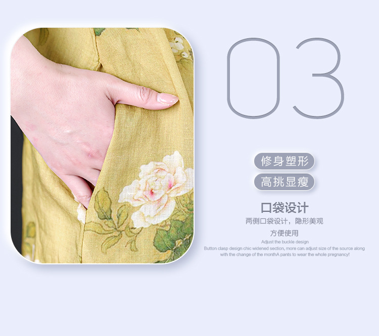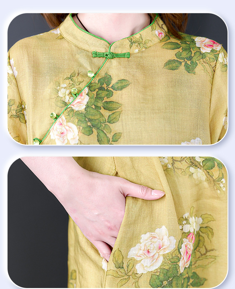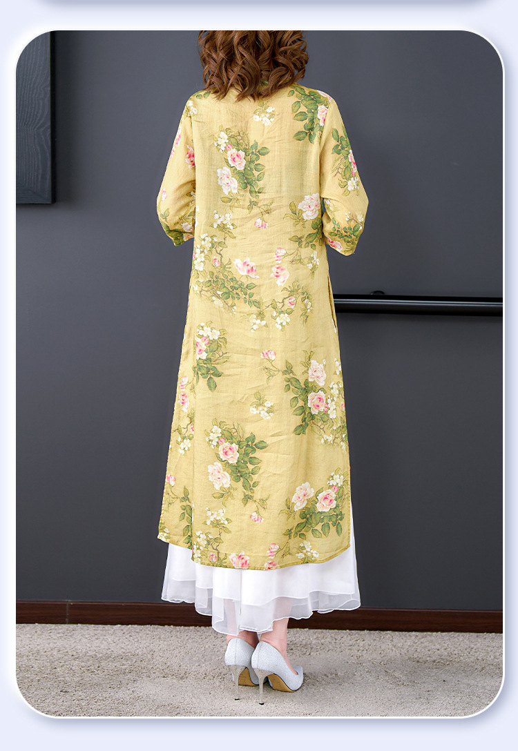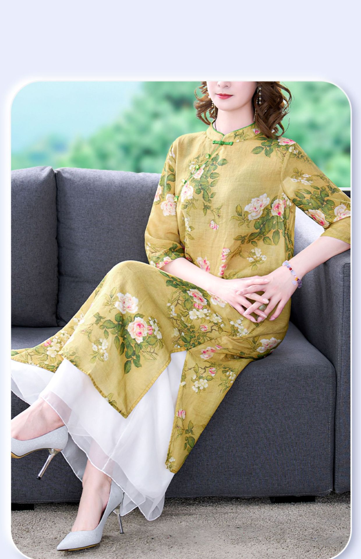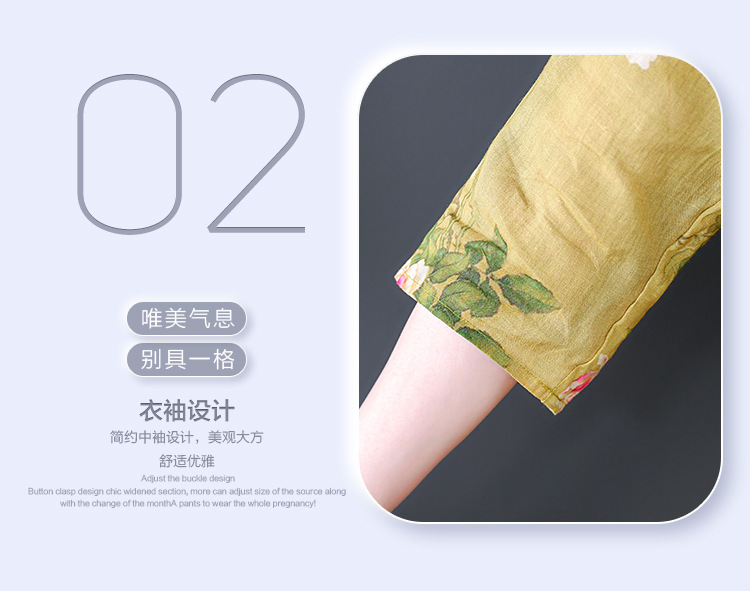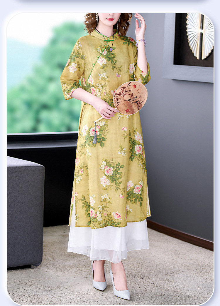 NYL-0023春夏新款时尚文艺立领印花拼接七分袖显瘦改良版旗袍连衣裙