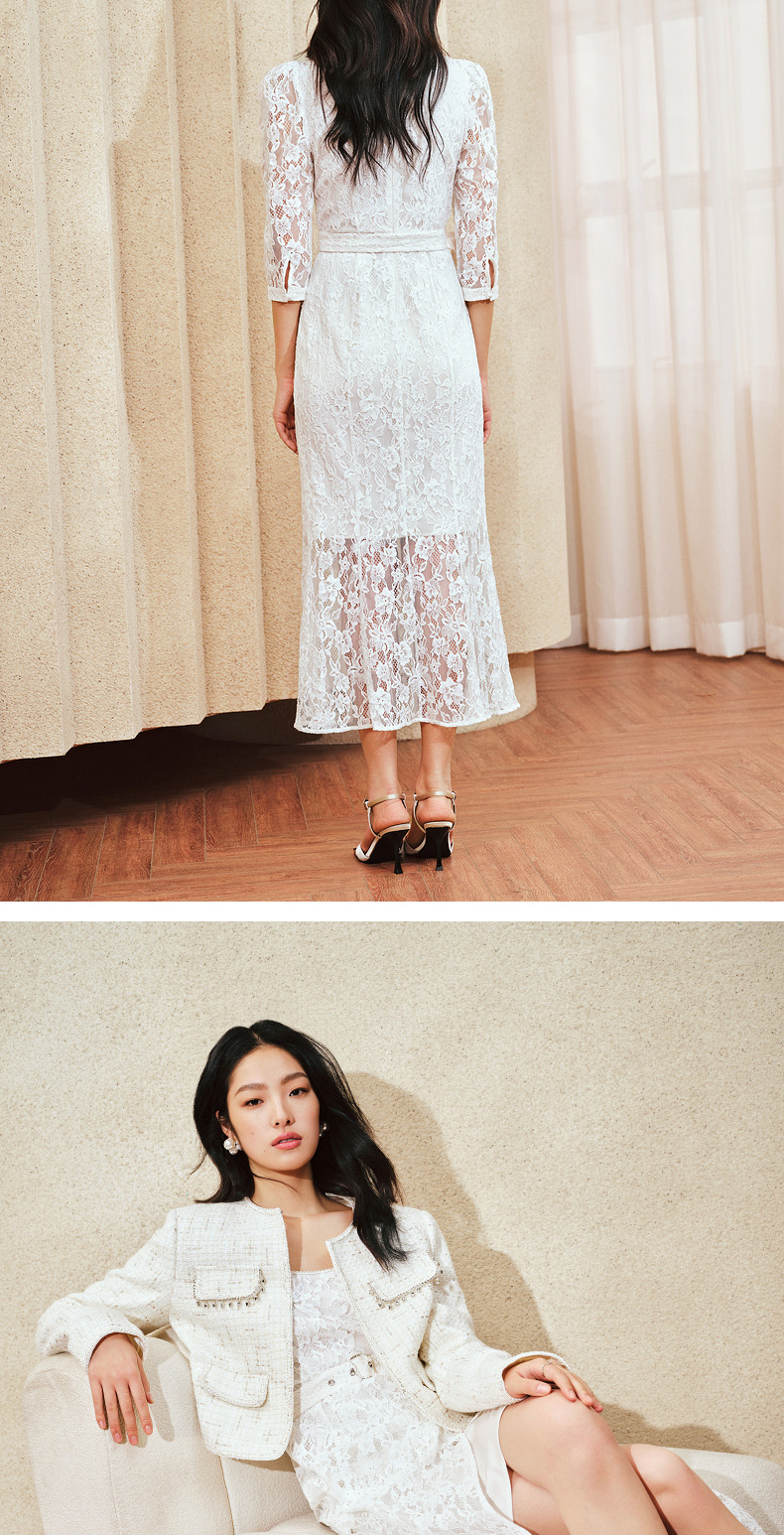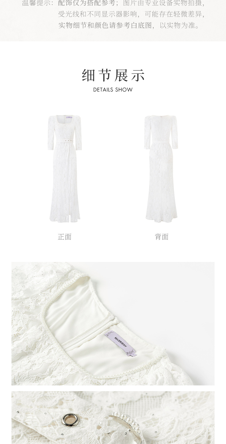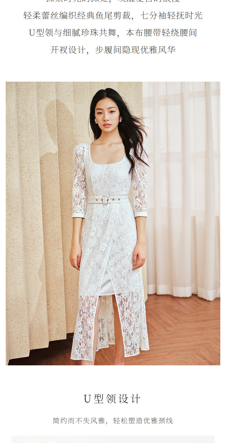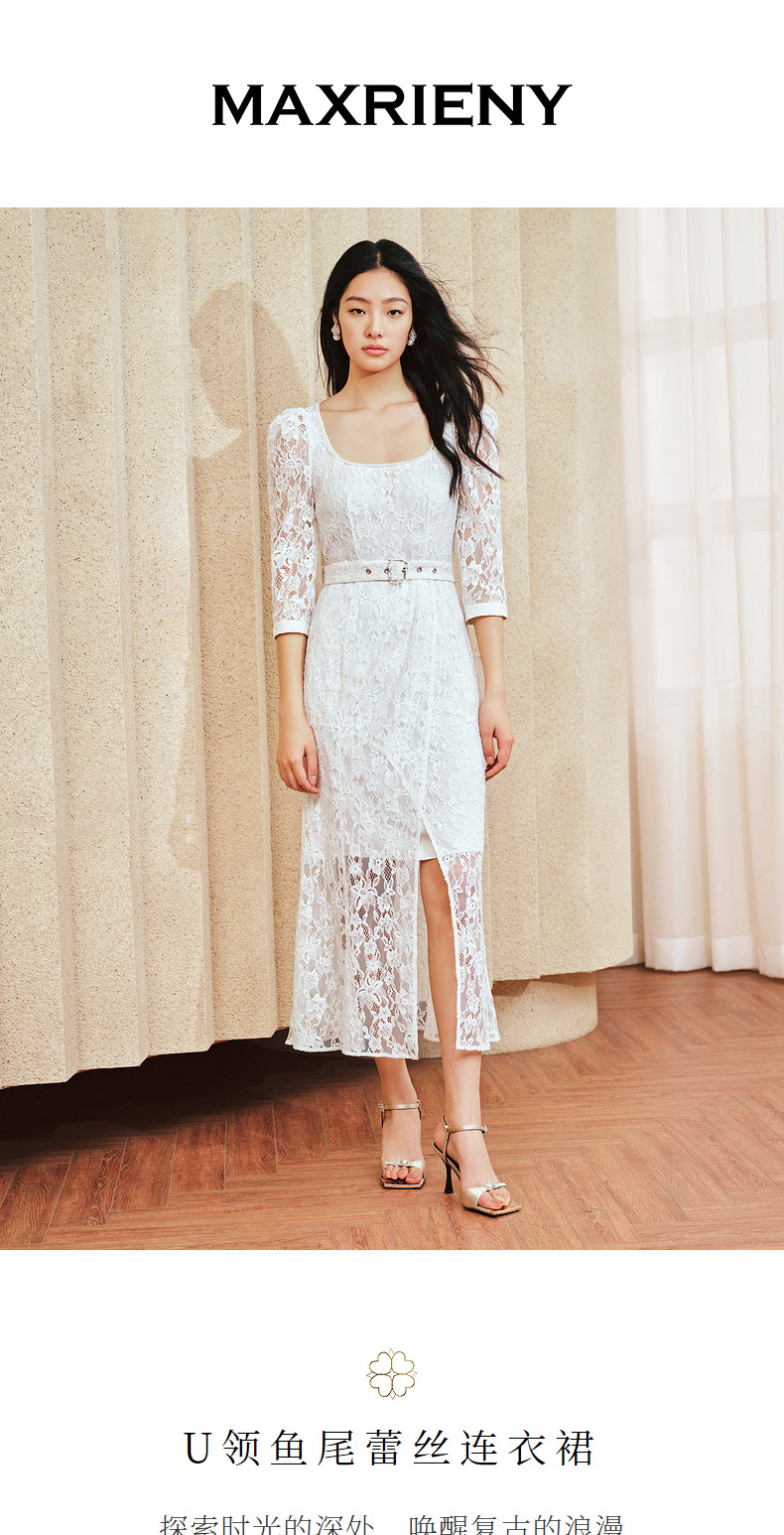 【城市静奢】MAXRIENY浪漫复古U领鱼尾蕾丝连衣裙优雅显瘦修身裙(货号:MS85DR049)