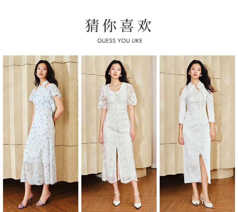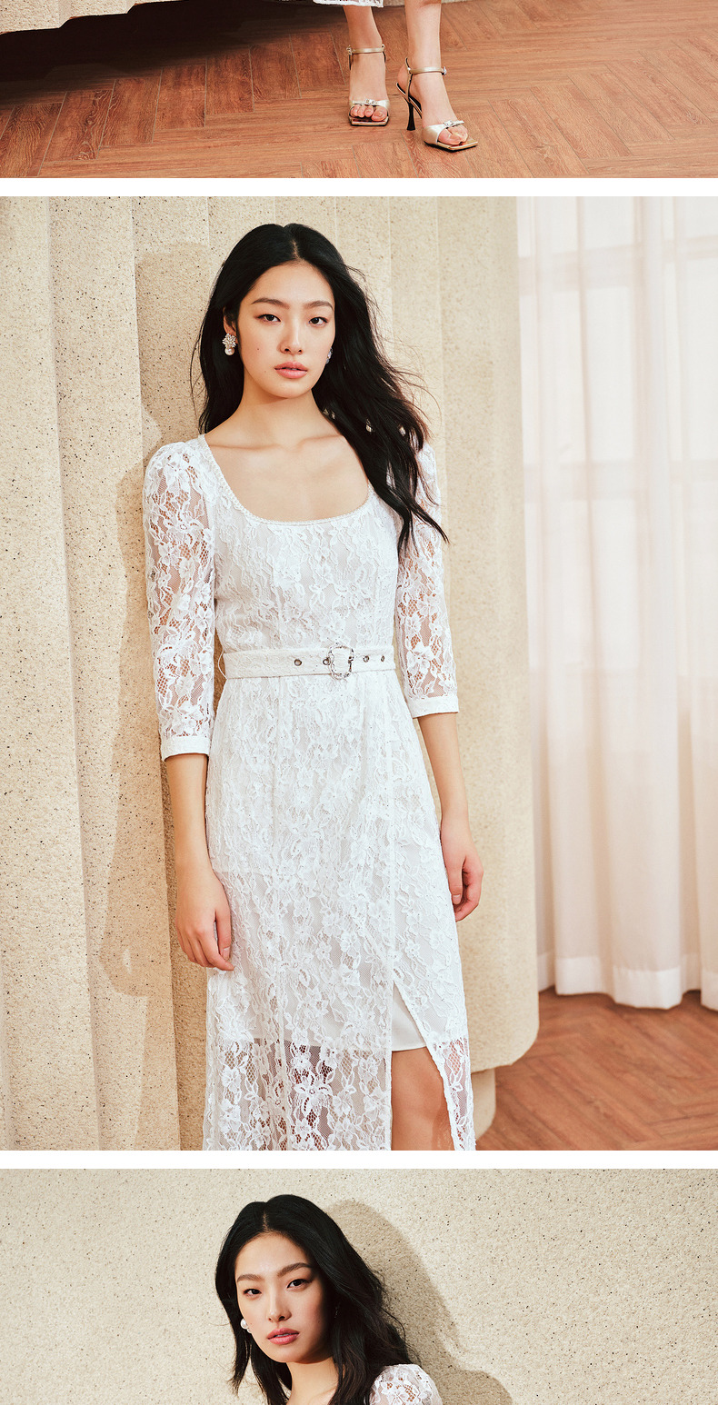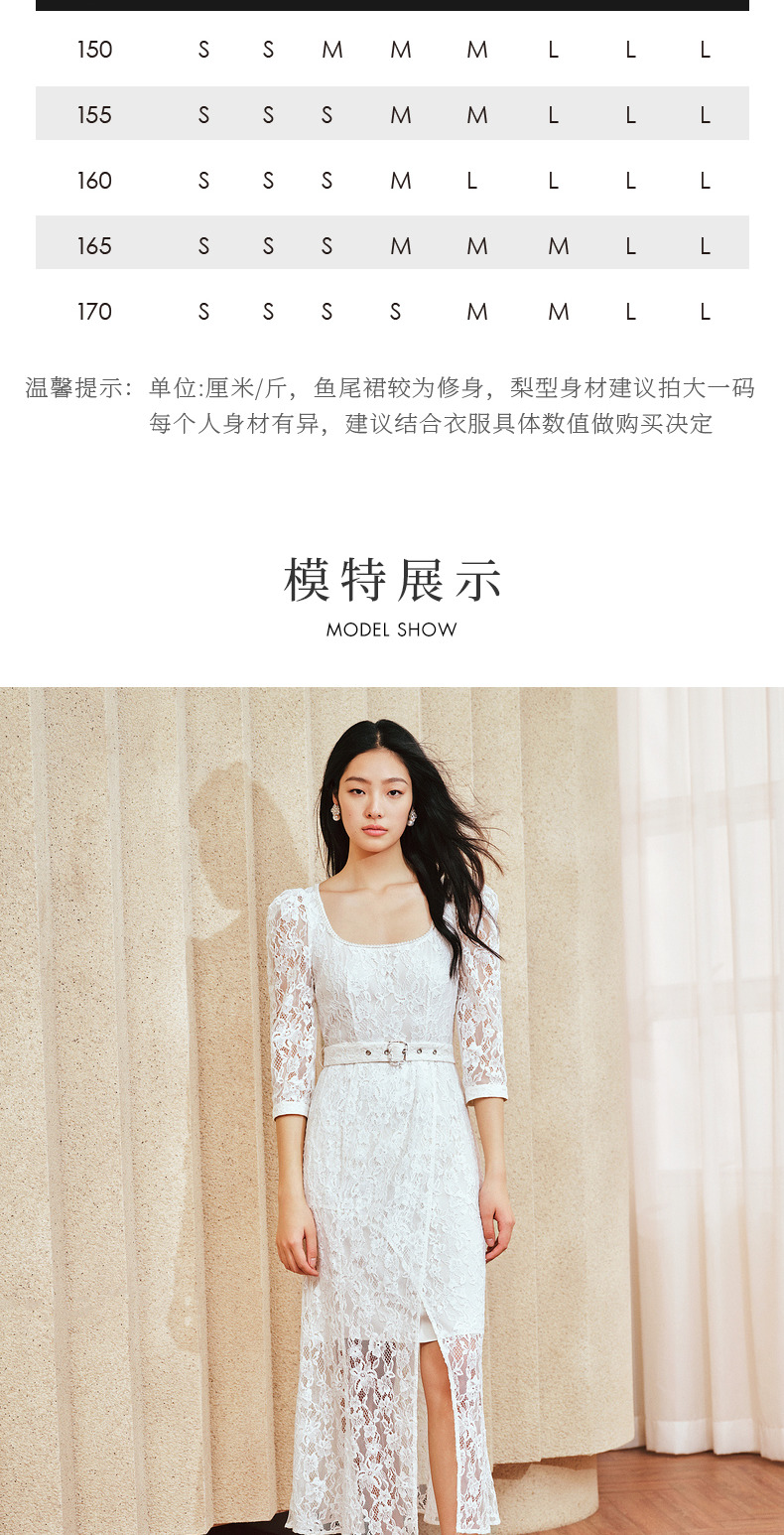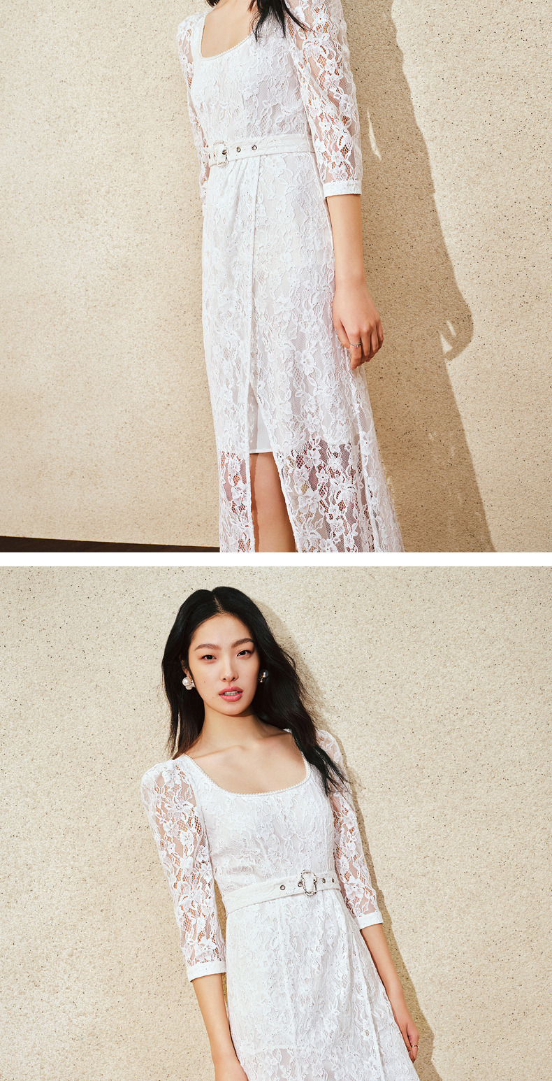 【城市静奢】MAXRIENY浪漫复古U领鱼尾蕾丝连衣裙优雅显瘦修身裙(货号:MS85DR049)