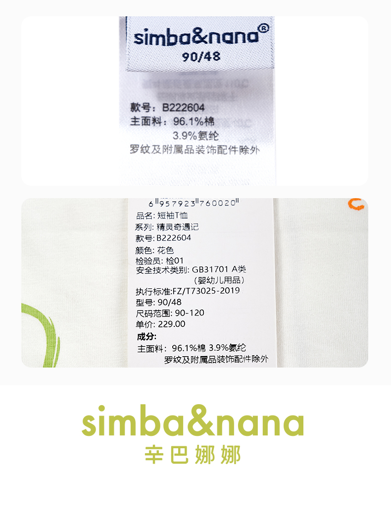 【辛巴娜娜】simbanana中小童圆领T恤短袖上衣卡通动物图案
