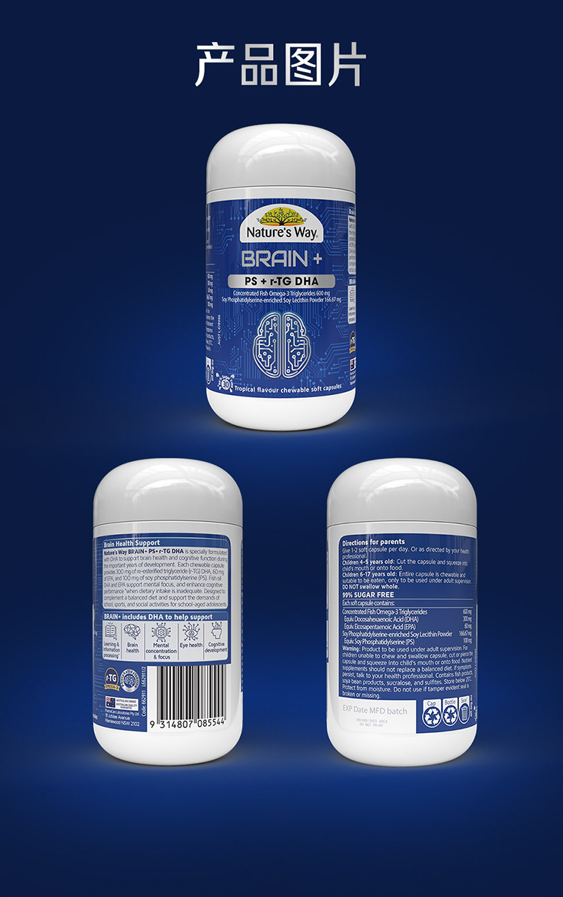 【N】Natures Way佳思敏脑力佳神经酸磷脂酰丝氨酸PS备考鱼油DHA30粒(28年1月)