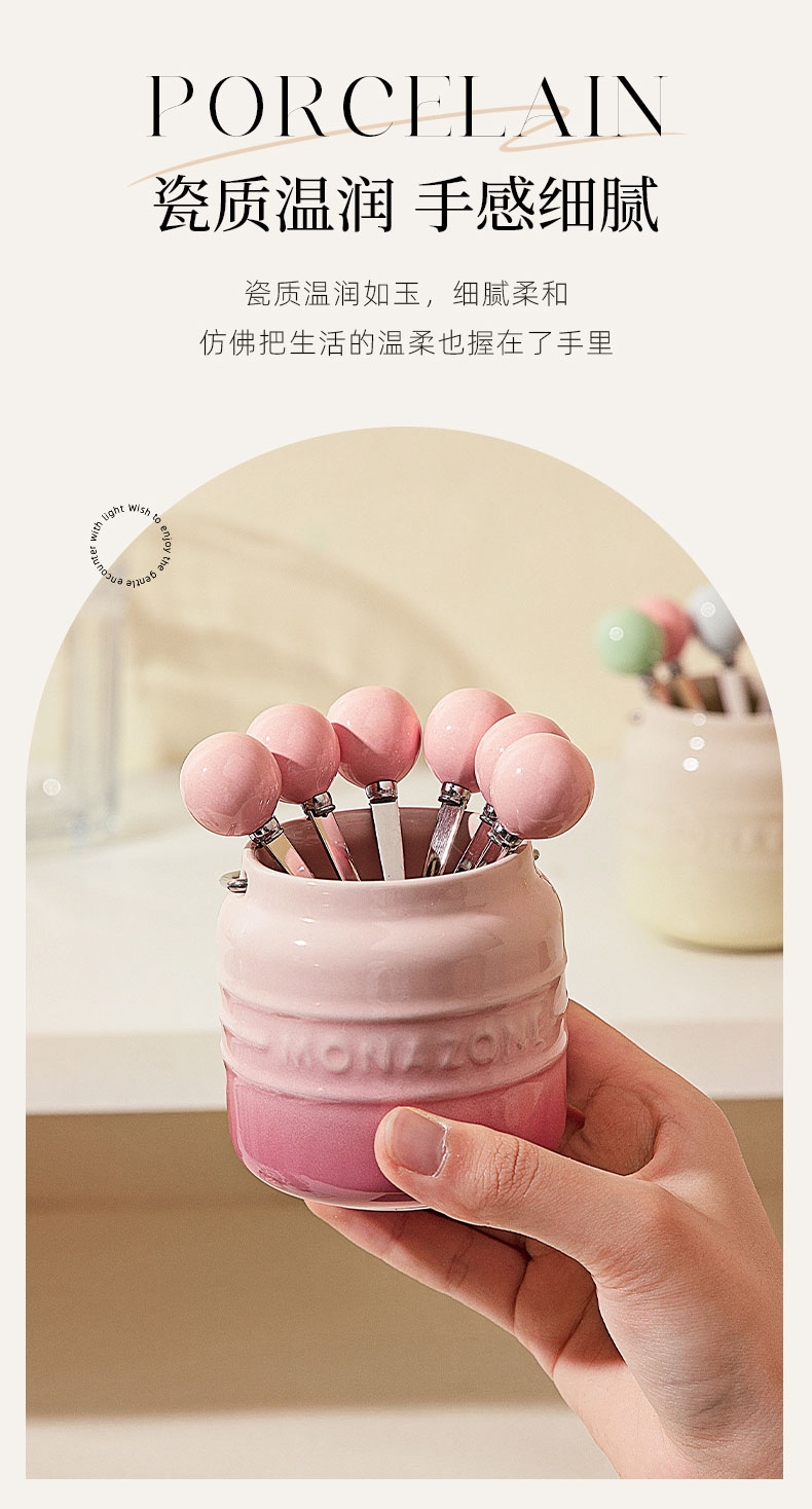 【厨具上新】中国摩登主妇陶瓷罐+304不锈钢水果叉6支(混色)