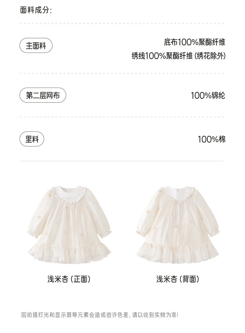 【商场同款】英氏女童网纱连衣裙2025新款长袖洋气绣花公主裙童装