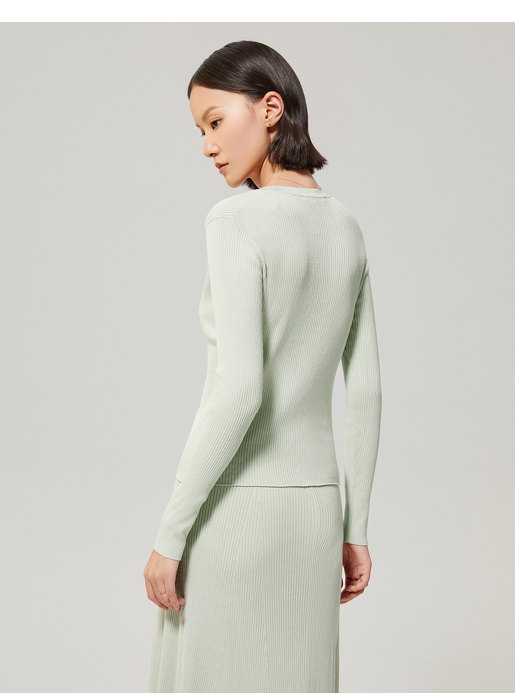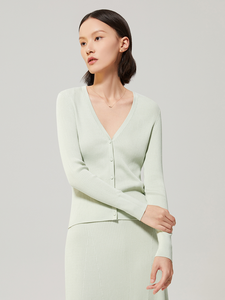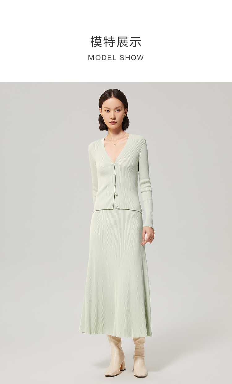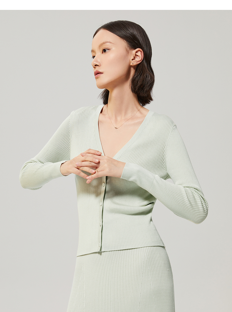 OVV 2022秋冬新款女装基础款桑蚕丝棉混纺V领休闲长袖针织开衫