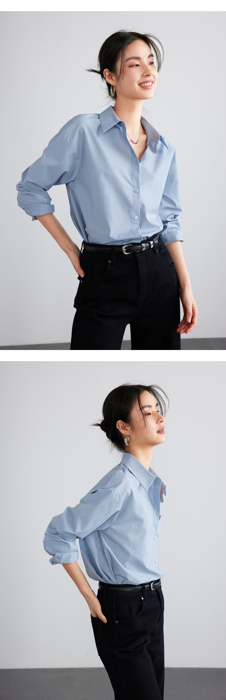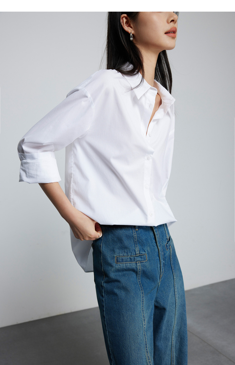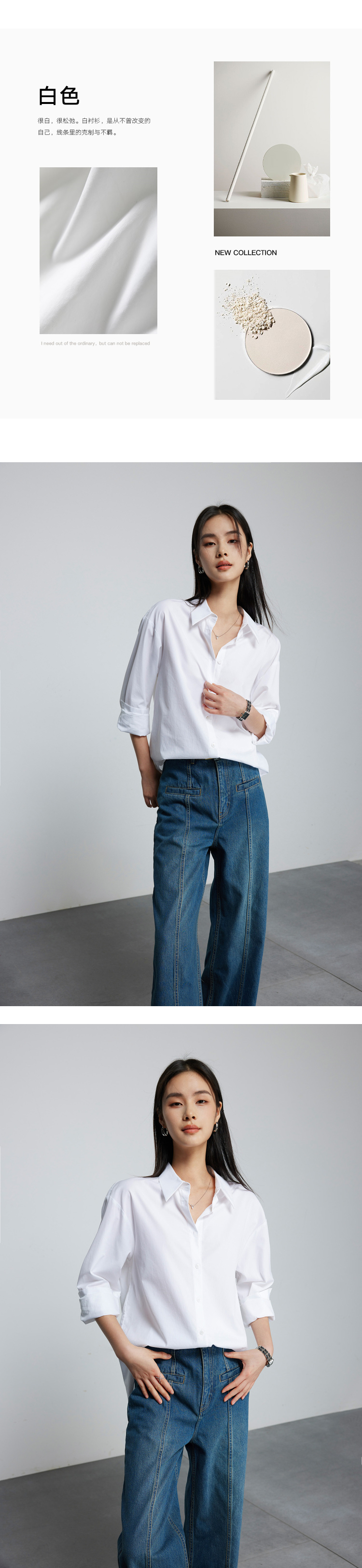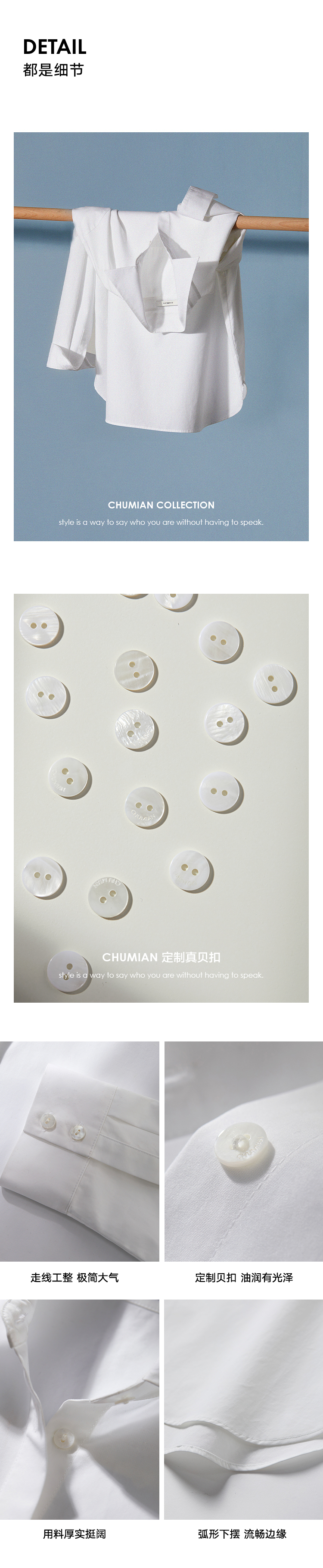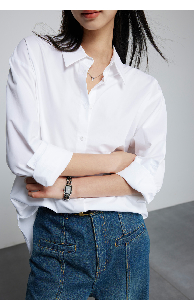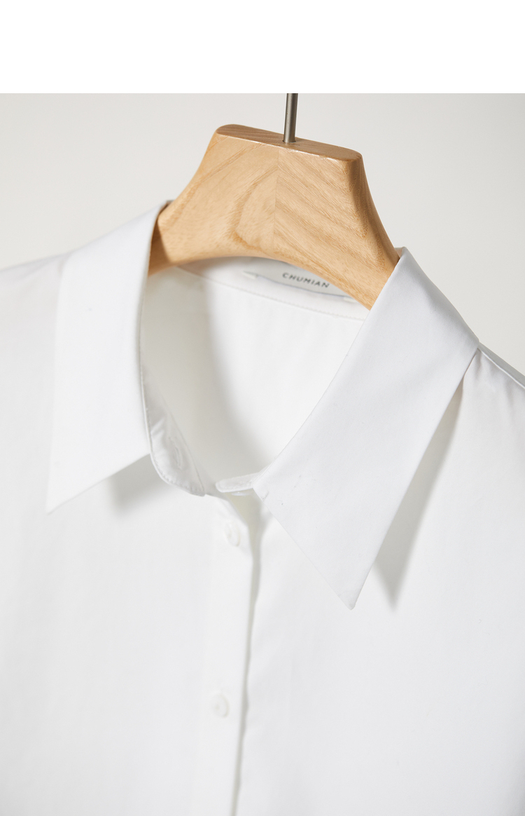 333604044棉仓-初棉OL风80s纯棉长袖白色衬衫女 微磨毛内搭气质长绒棉衬衣