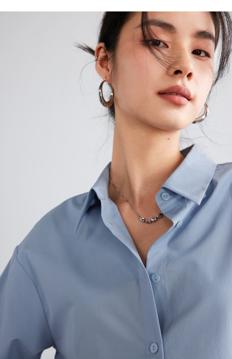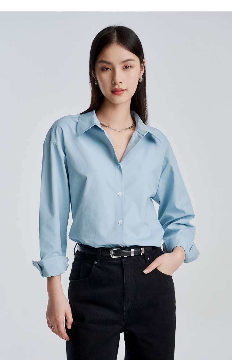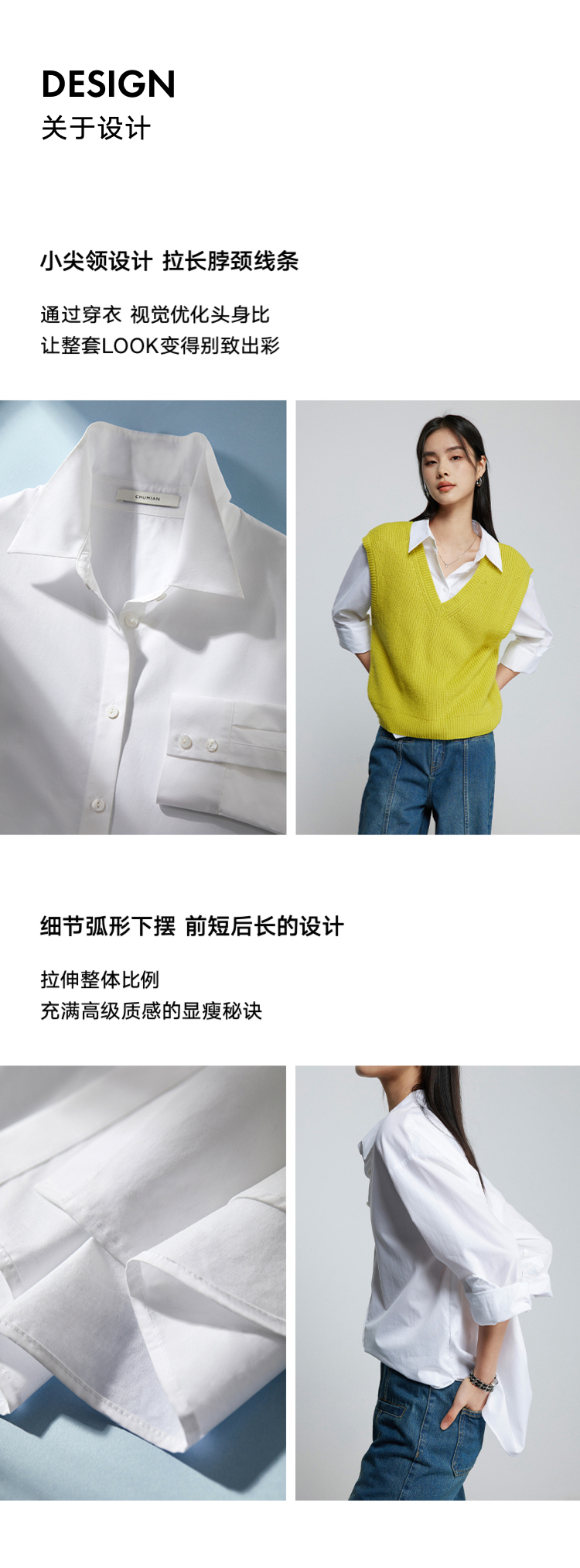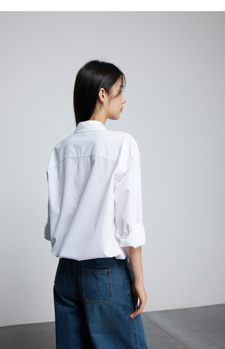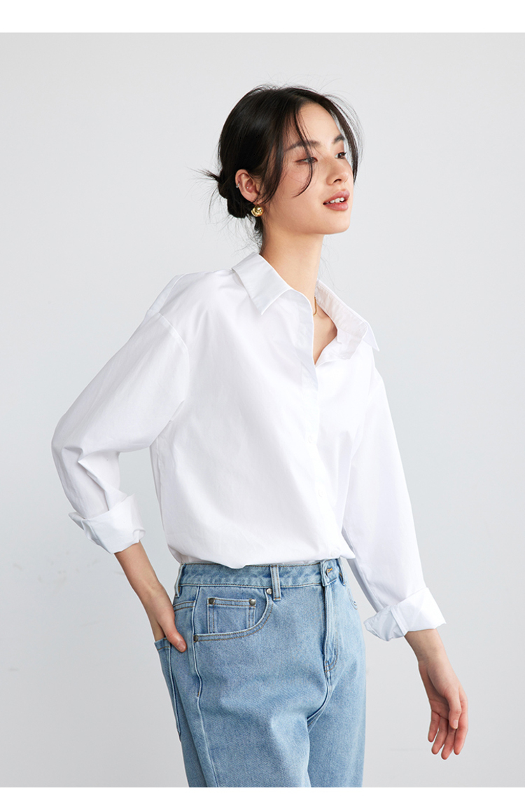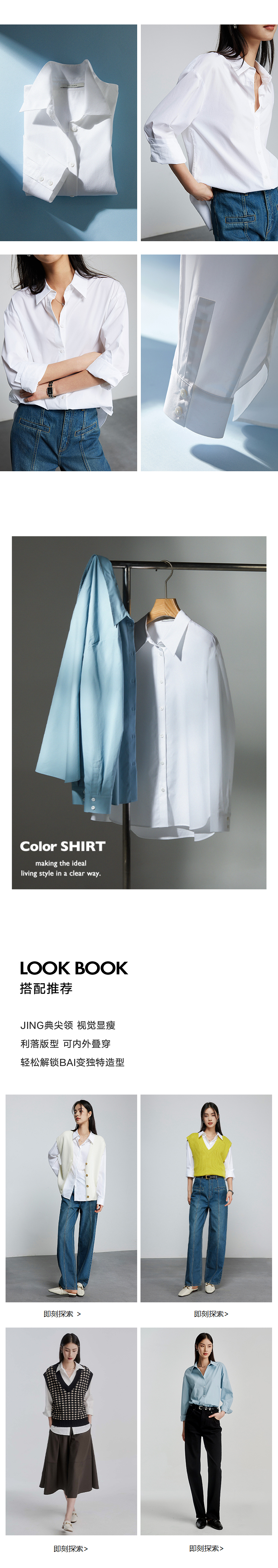 333604044棉仓-初棉OL风80s纯棉长袖白色衬衫女 微磨毛内搭气质长绒棉衬衣