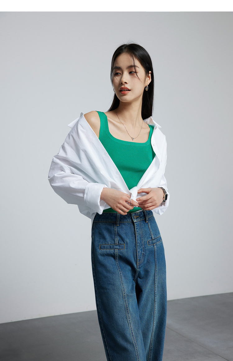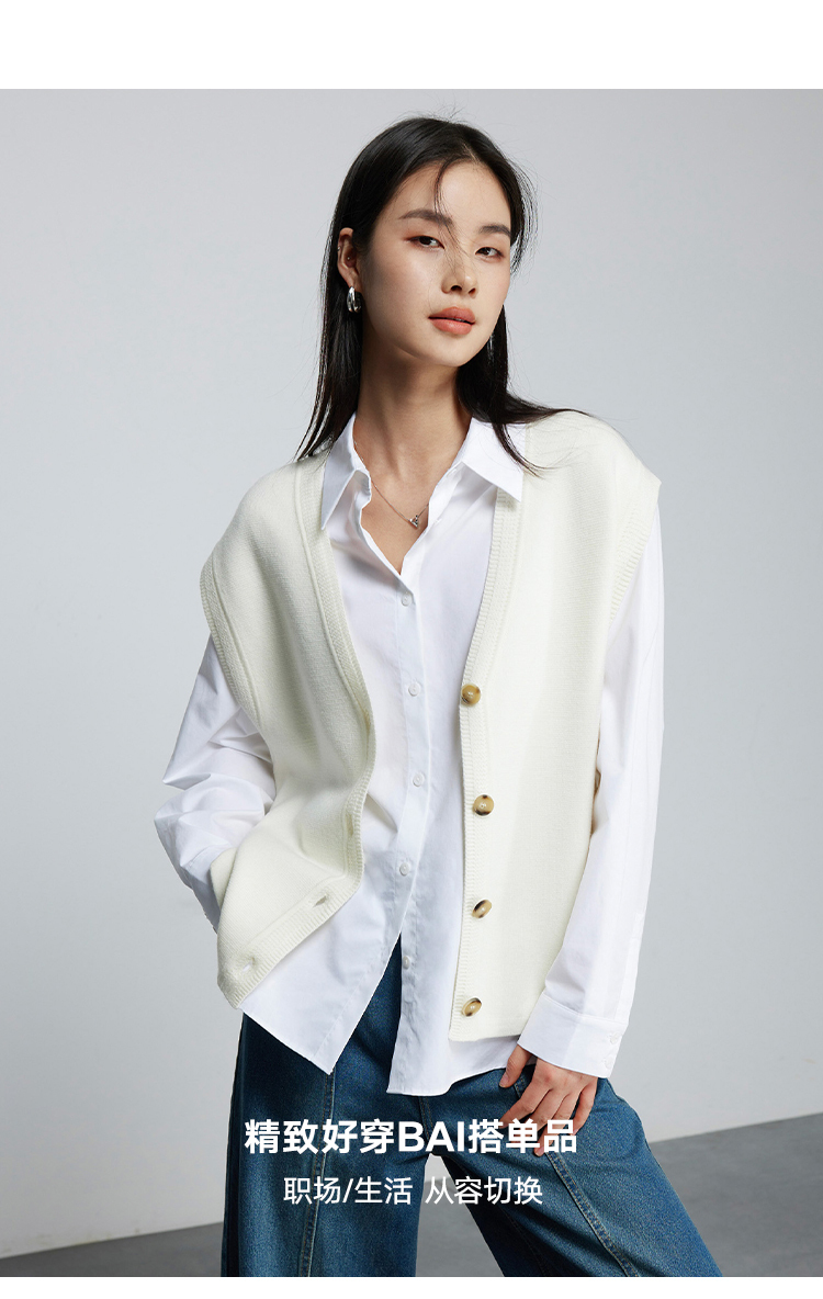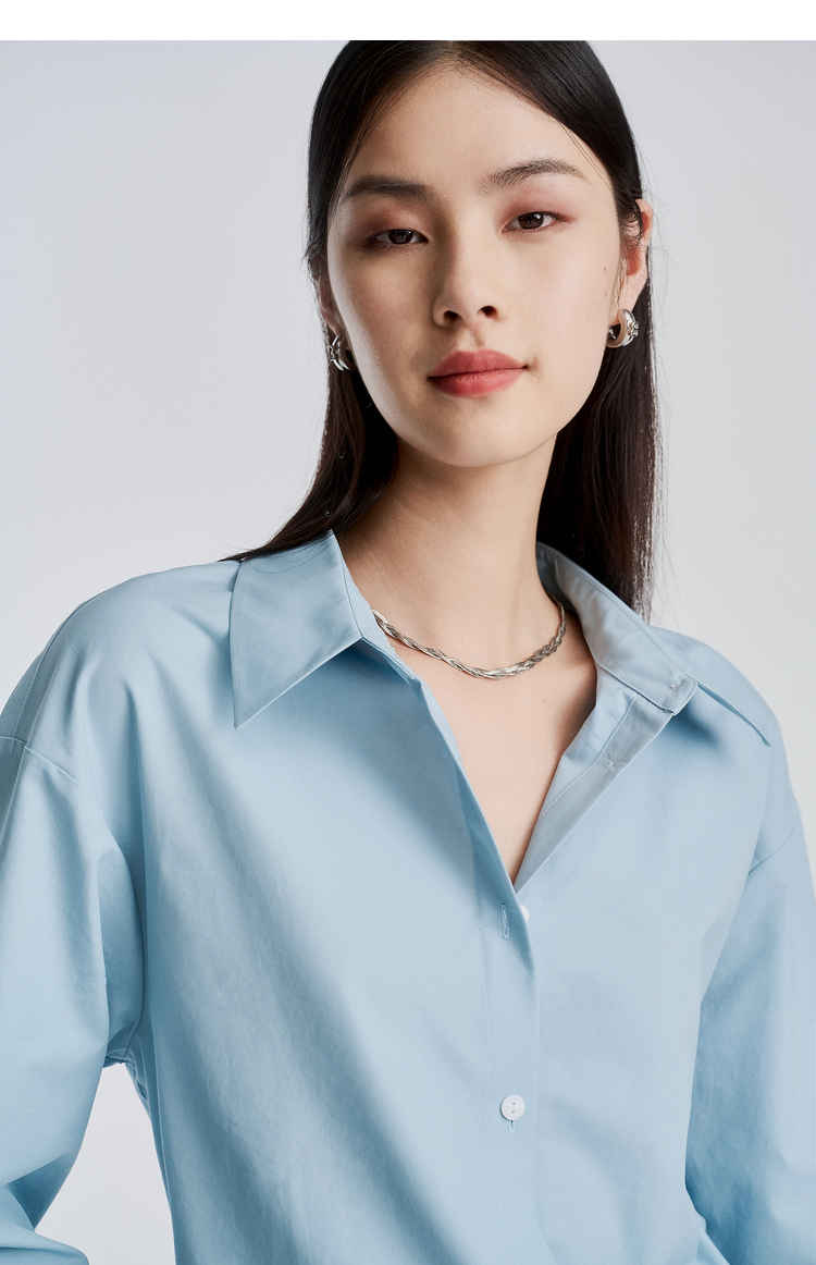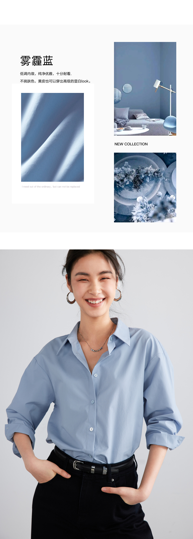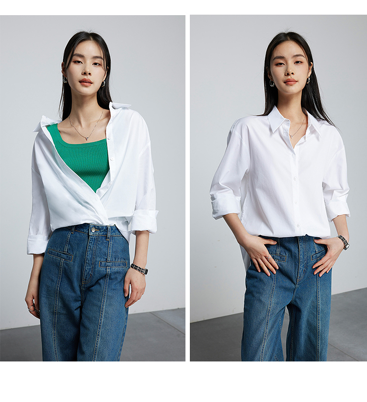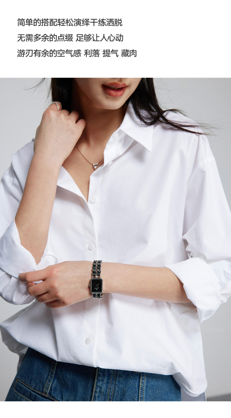 333604044棉仓-初棉OL风80s纯棉长袖白色衬衫女 微磨毛内搭气质长绒棉衬衣