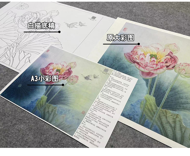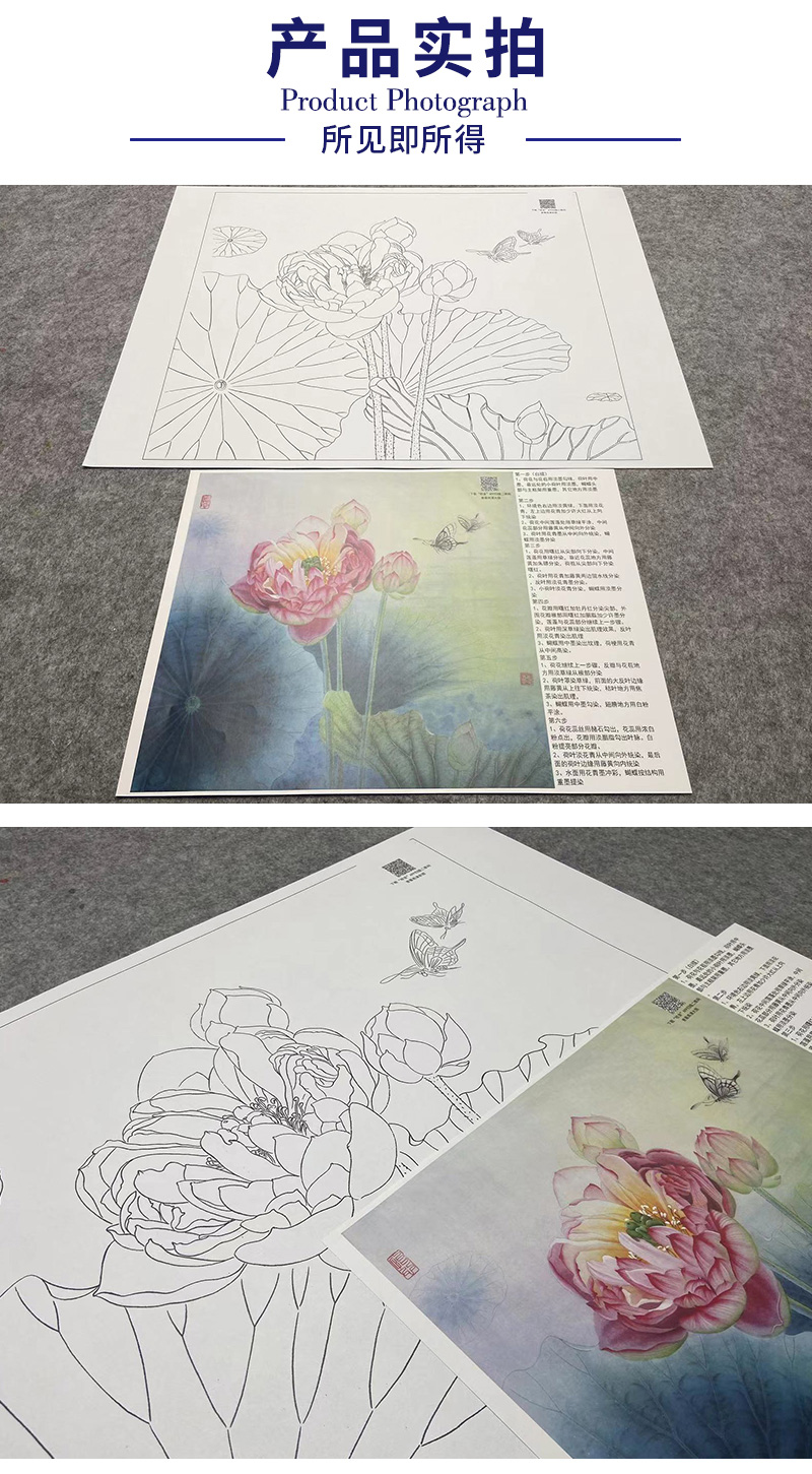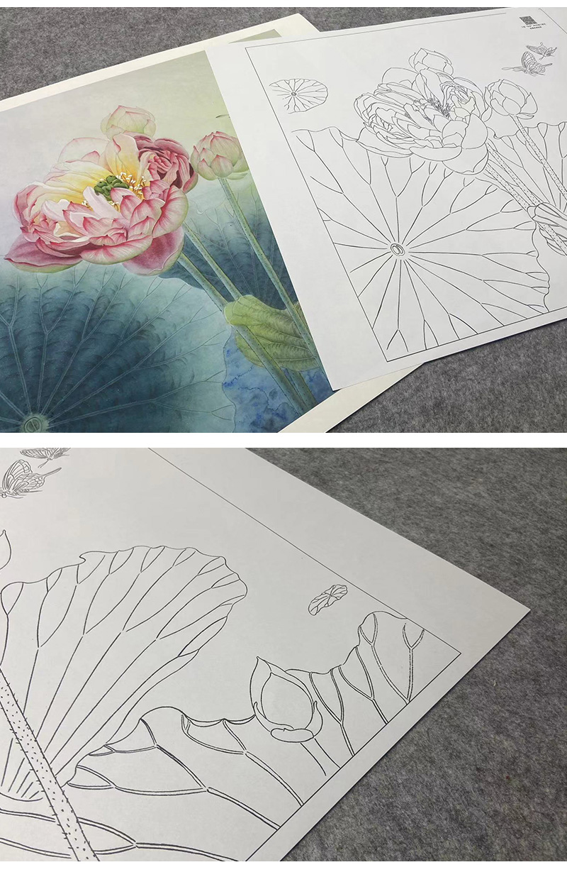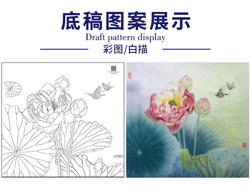 【大彩图】杨冬冬工笔画白描底稿小品《双蝶慕幽香》荷花临摹勾线花鸟线稿HD23