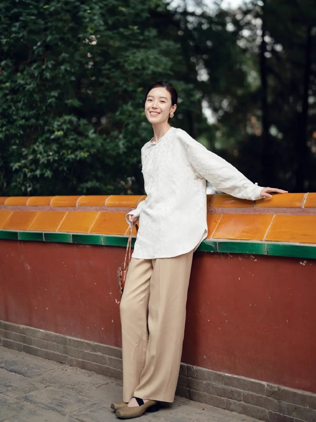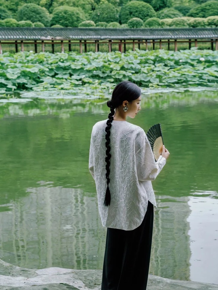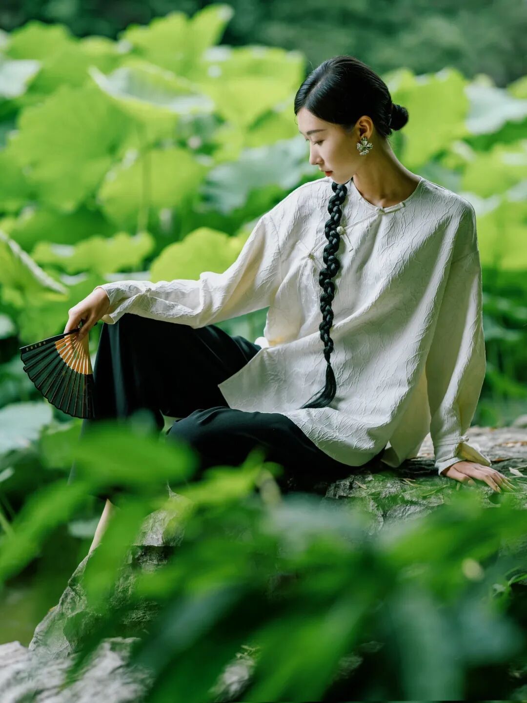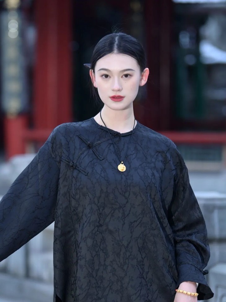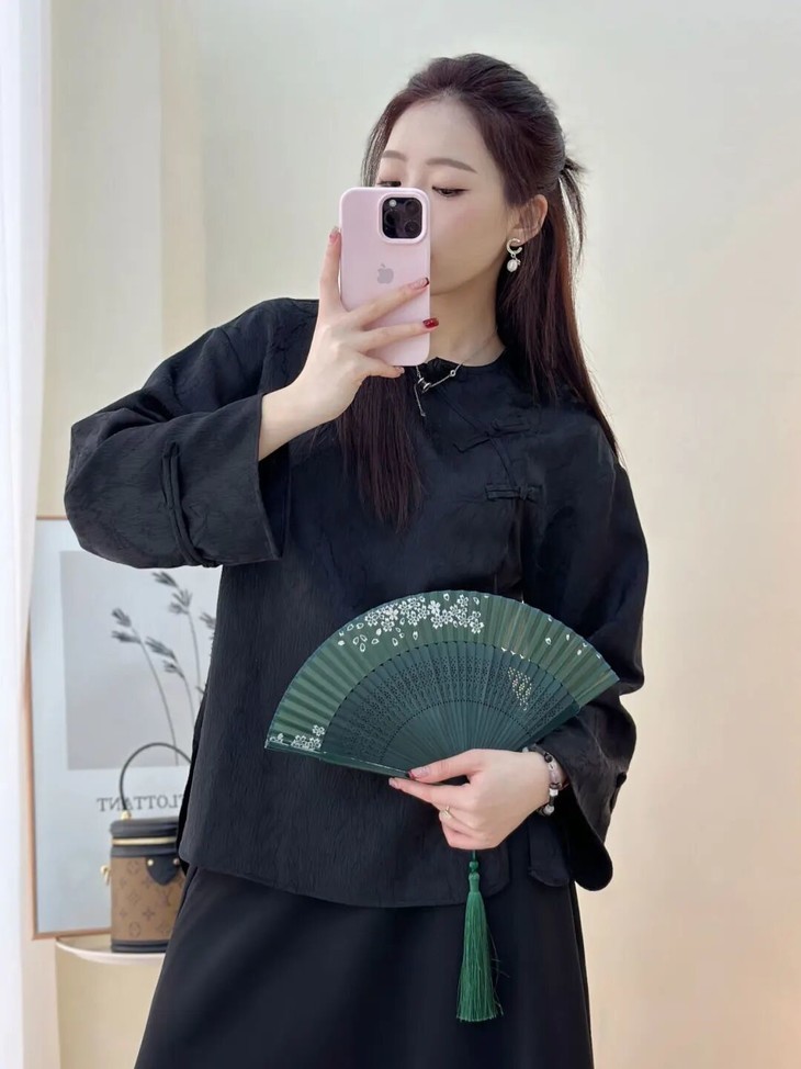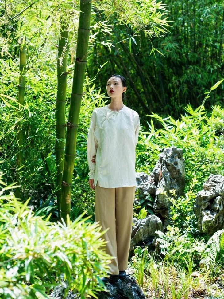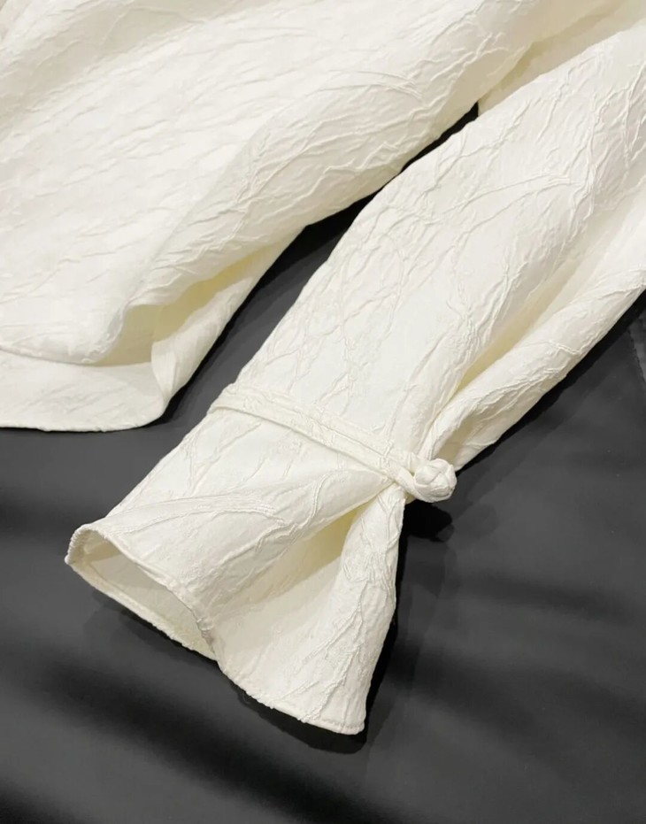 (3-5天发货)枯笔提花新中式衬衫,圆领中式右衽开襟,团云扣富有格调,重工浮雕提花,定制客供提花面料!