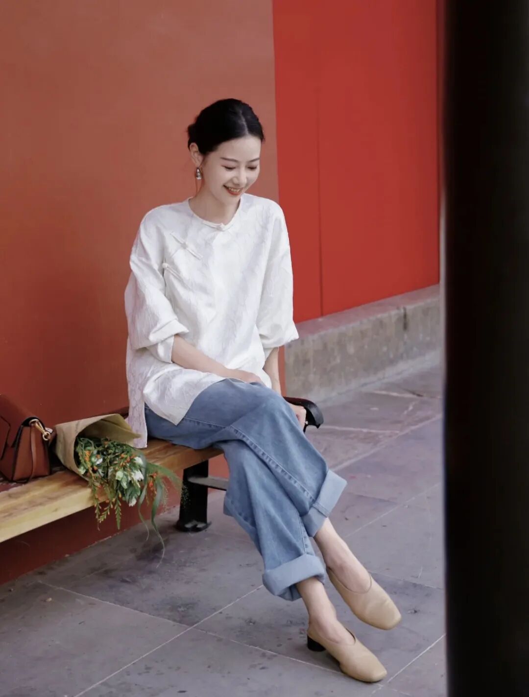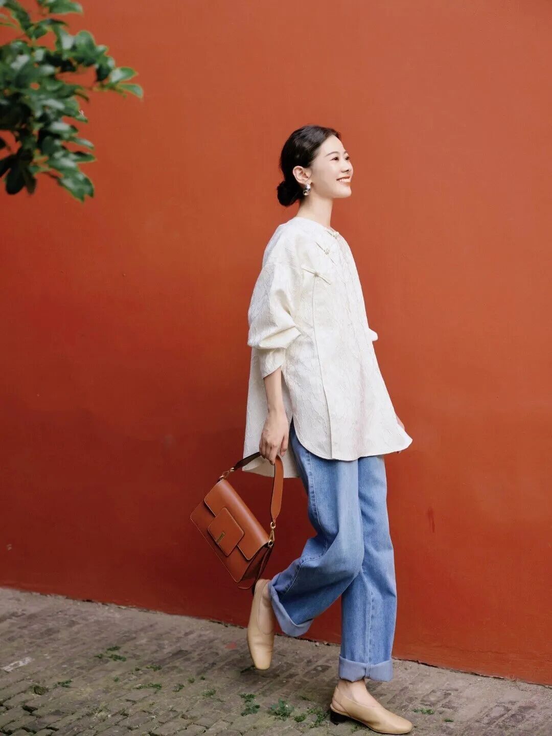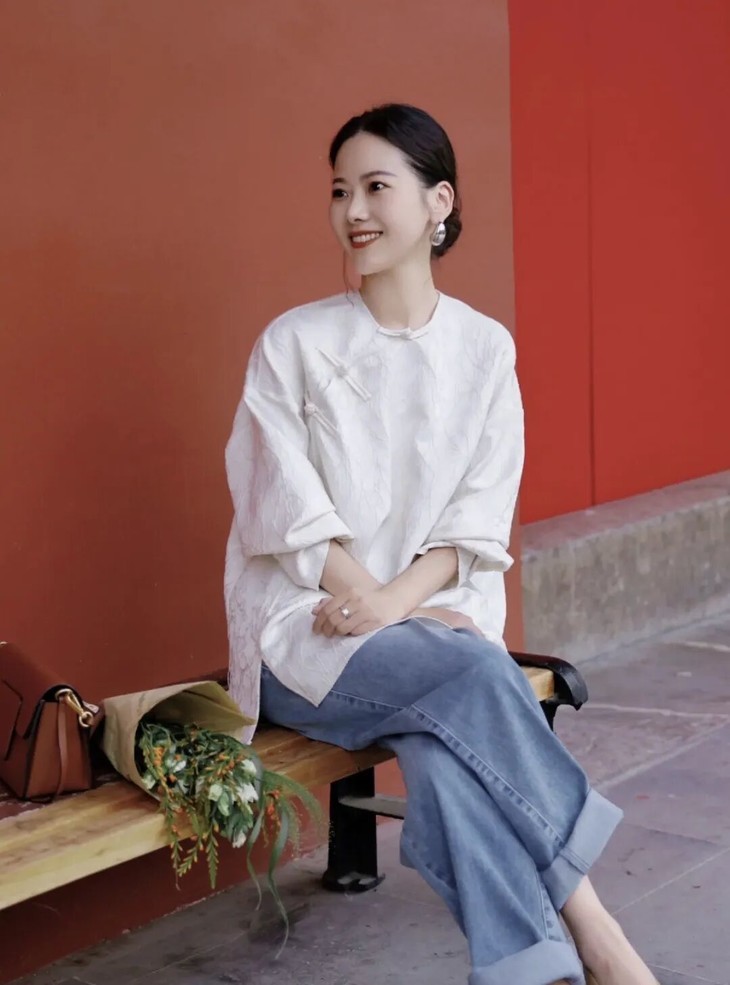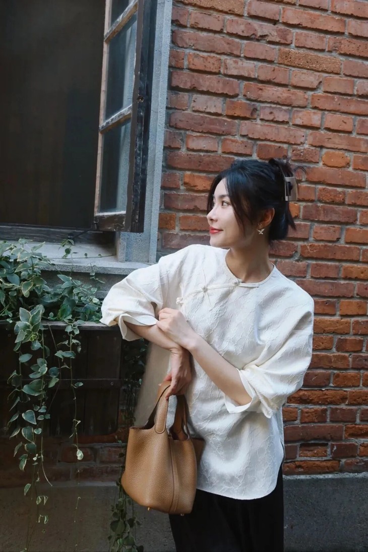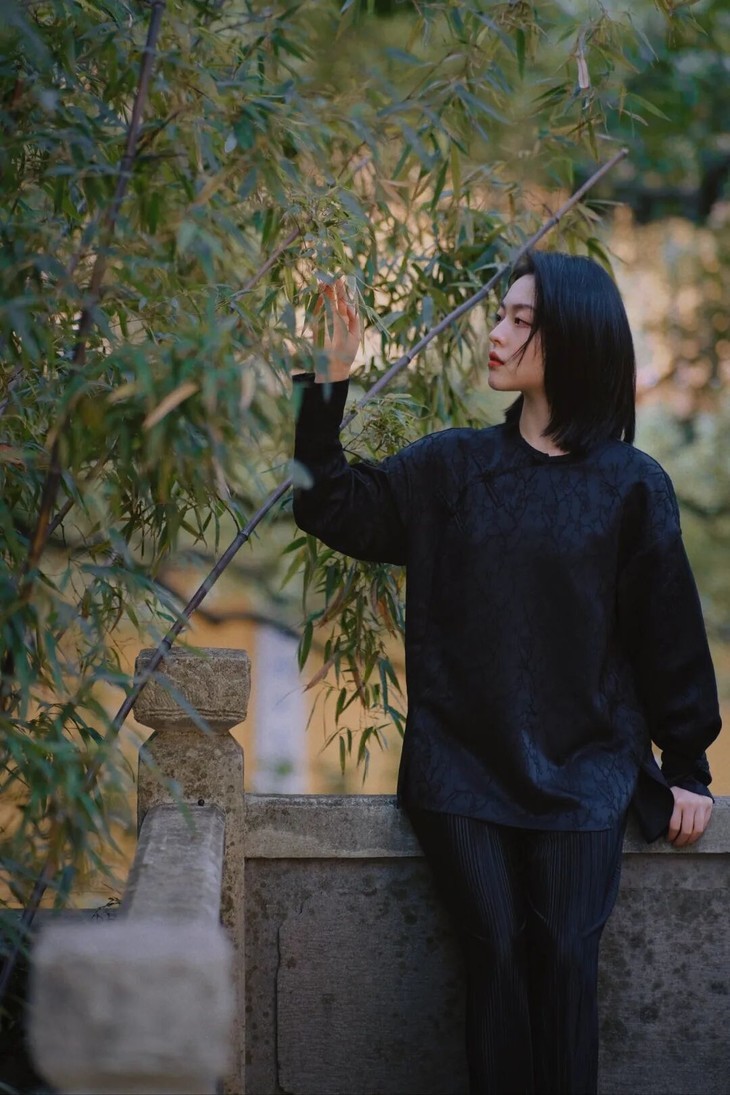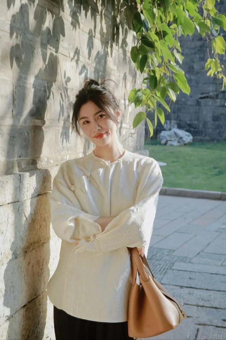 (3-5天发货)枯笔提花新中式衬衫,圆领中式右衽开襟,团云扣富有格调,重工浮雕提花,定制客供提花面料!