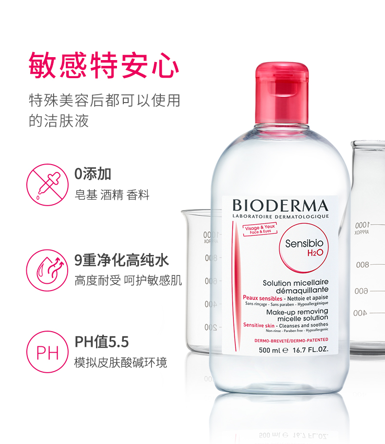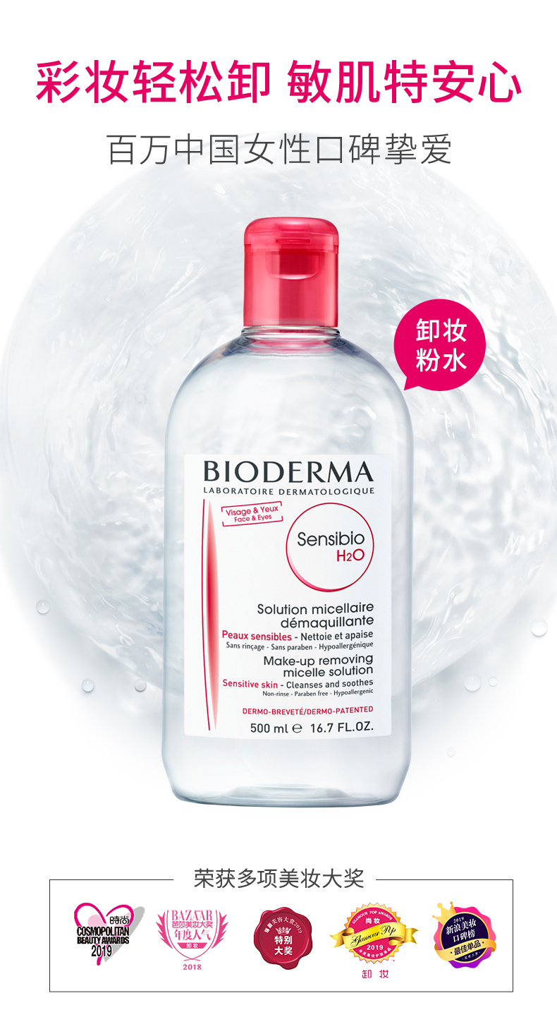 下单500ml即赠同款100ml~【一抹卸净】法国贝德玛卸妆水 清洁力UP 卸妆无负担 敏感特安心