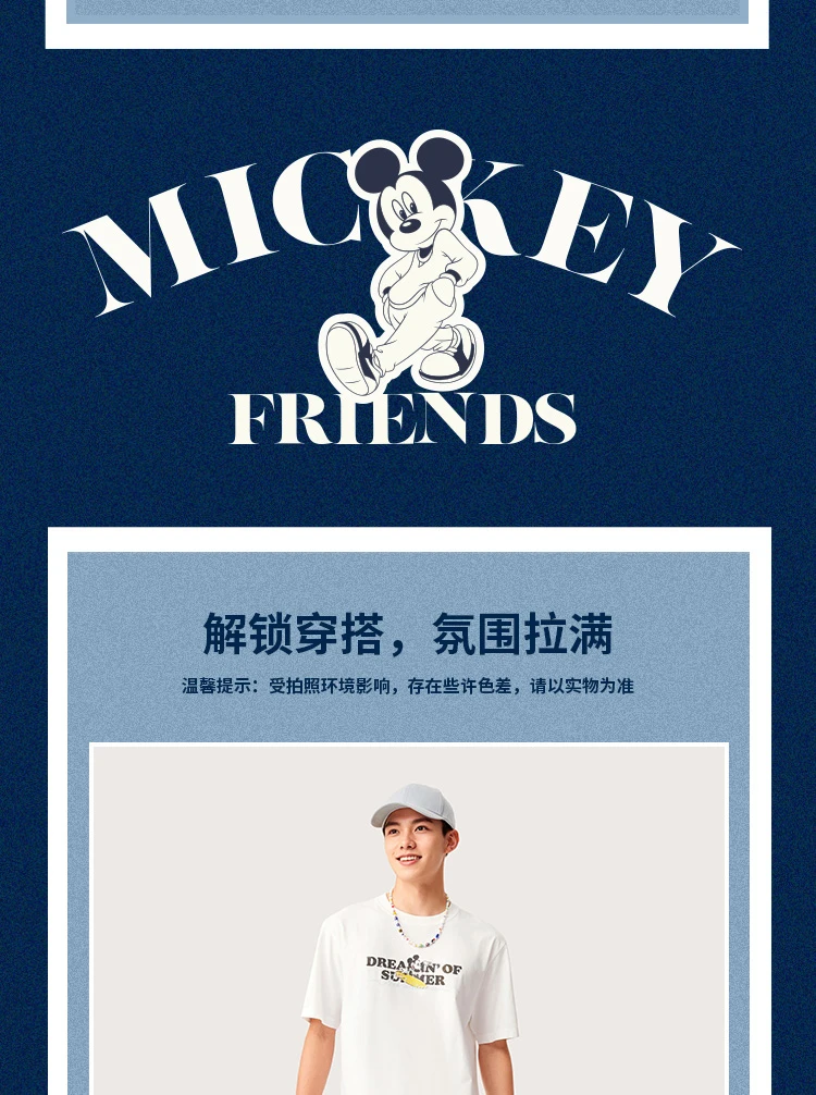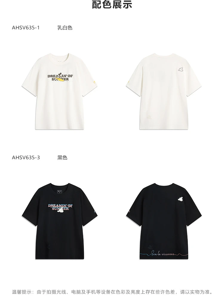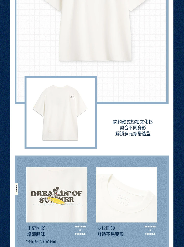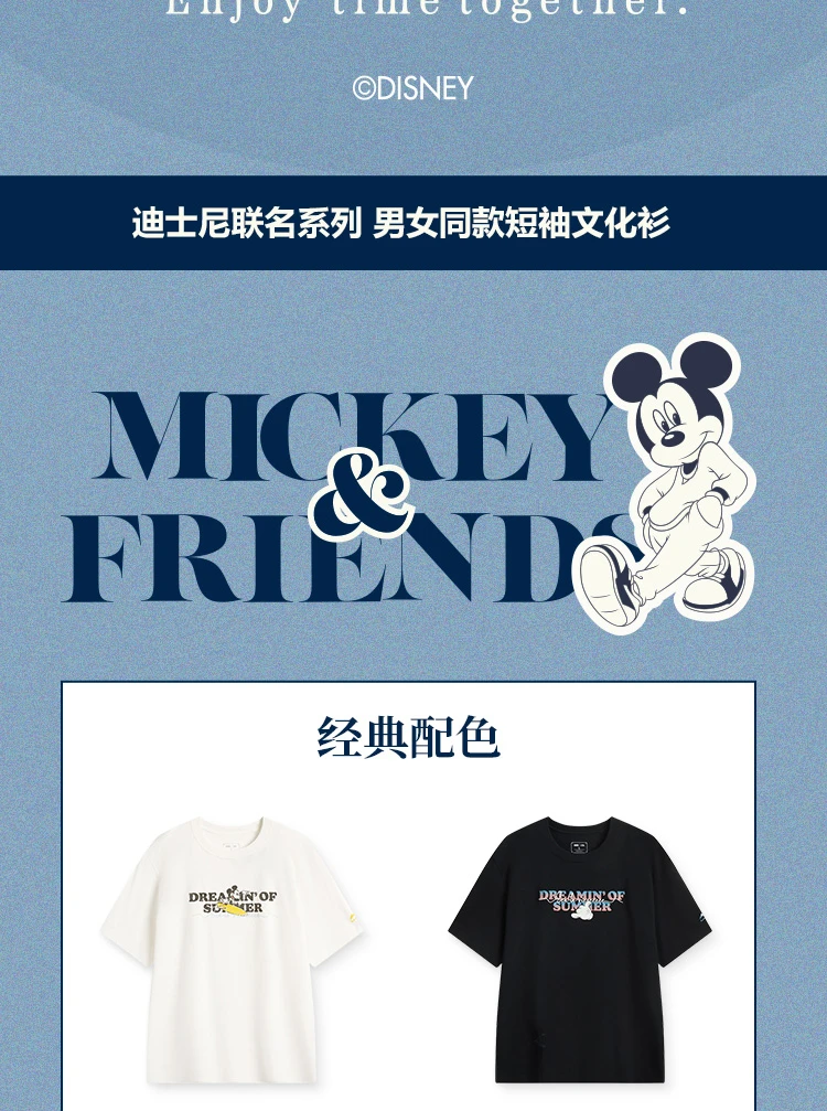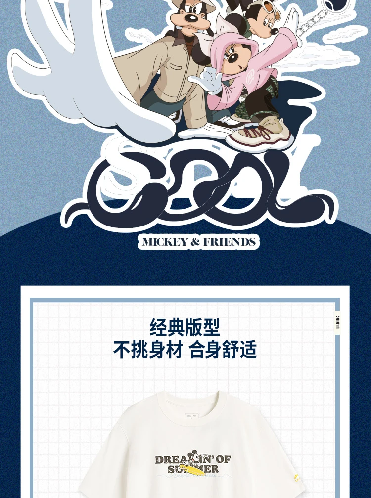 李宁|迪士尼米奇联名系列男女同款冰感舒适吸湿排汗短袖文化衫AHSV635