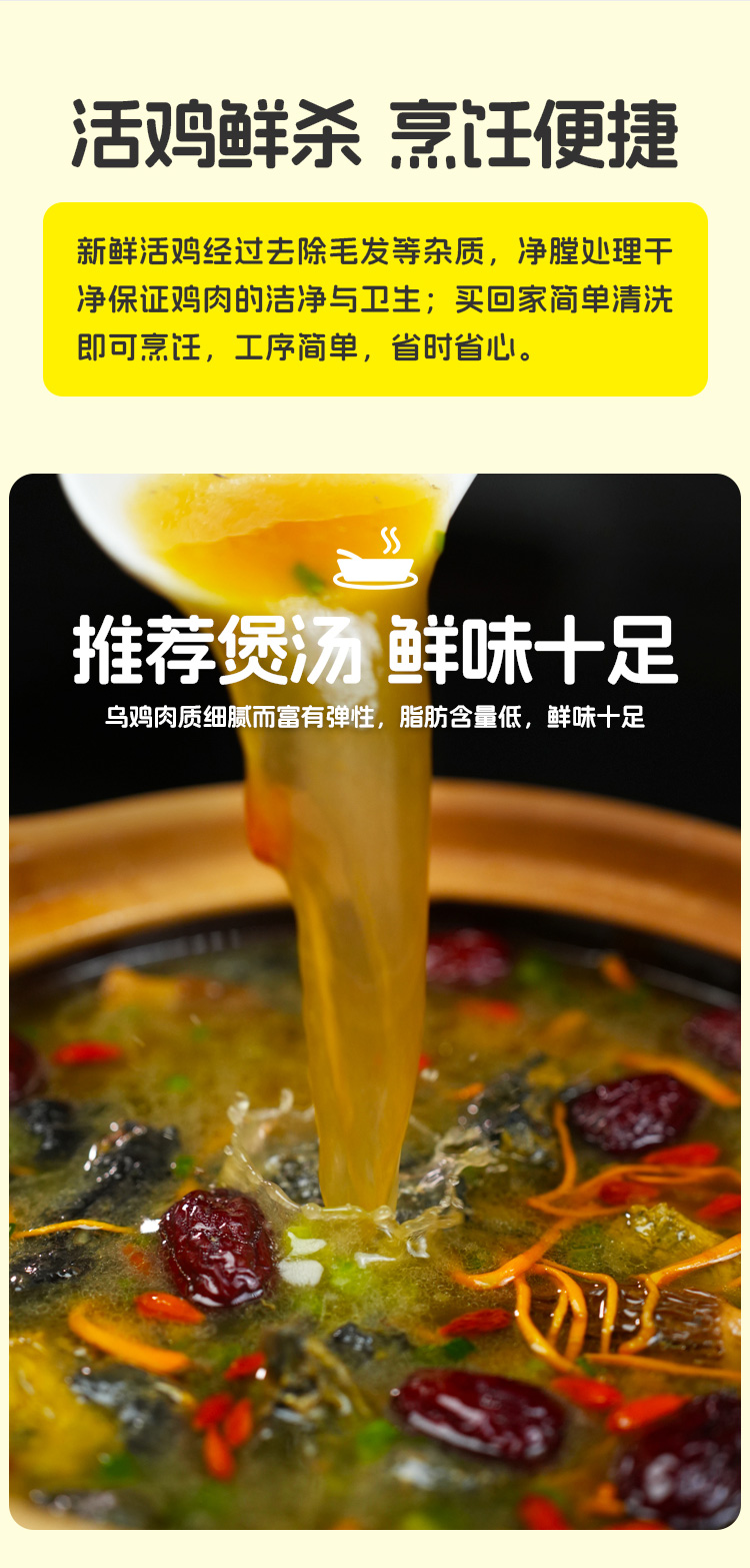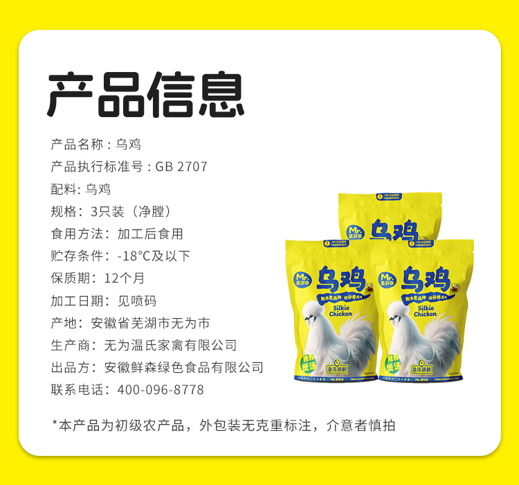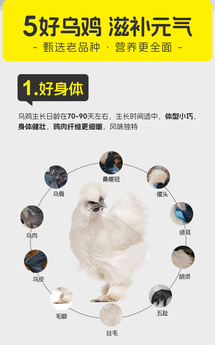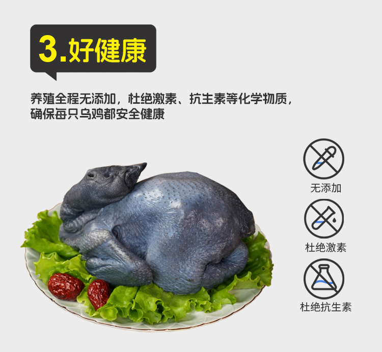 乌鸡 3只【地道老品种】 蛋鲜森 肉质细腻 鲜活宰杀 谷饲喂养