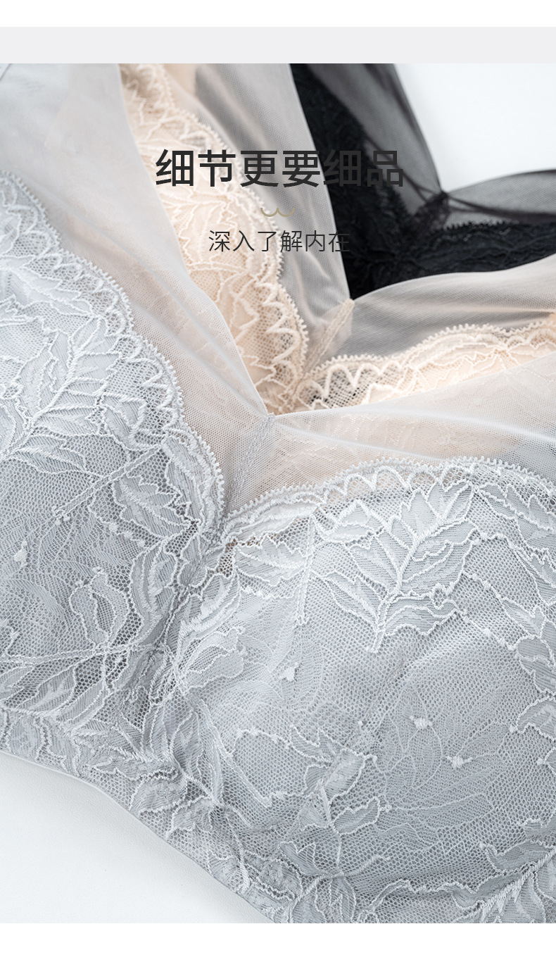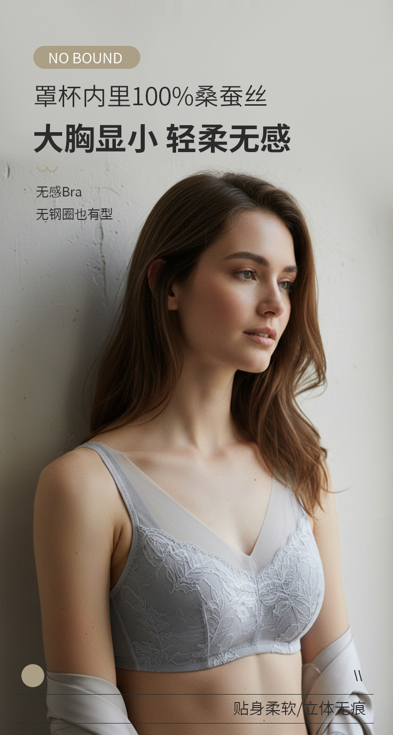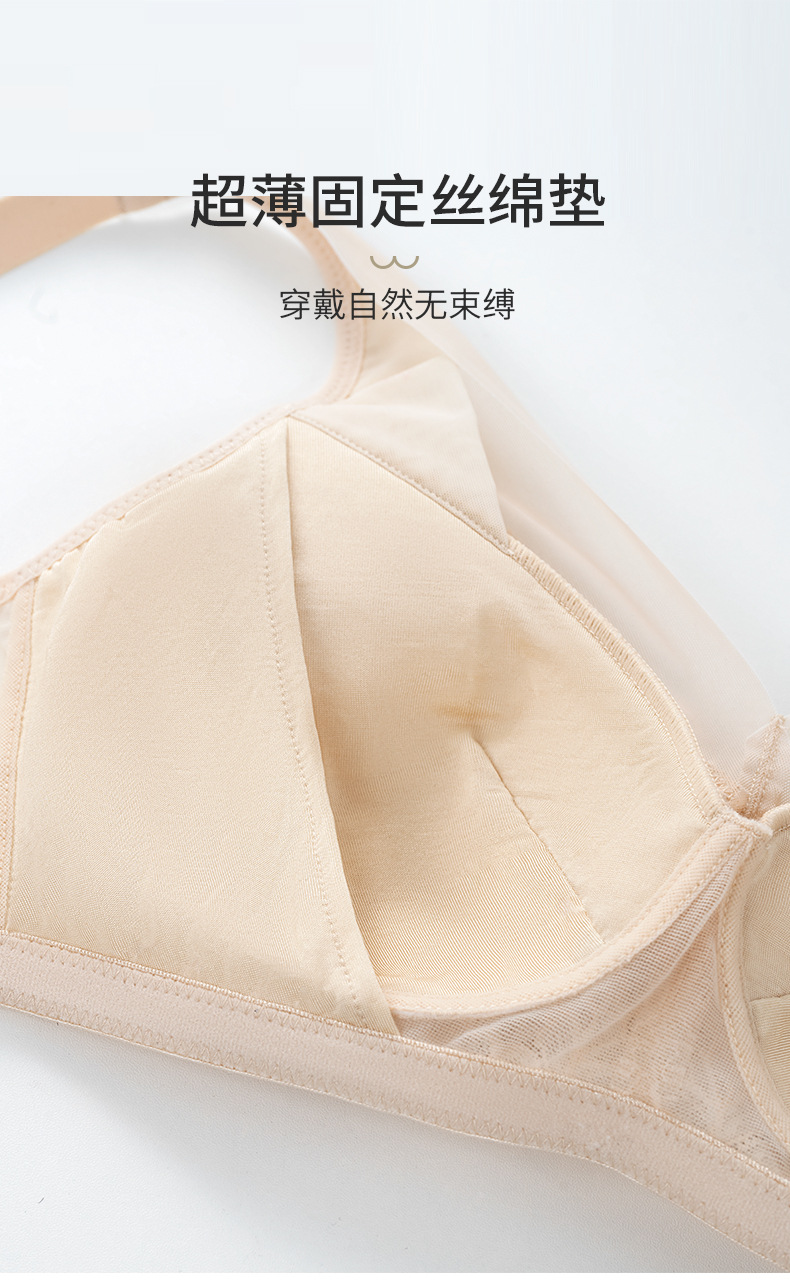 【洛诗琳老顾客福利定制款】真丝大胸显小 收副乳文胸 真丝V领网纱大胸显小文胸 桑蚕丝蕾丝花边聚拢内衣 贴身衣物不支持退换 桑蚕丝超薄性感蕾丝无钢圈内衣23932