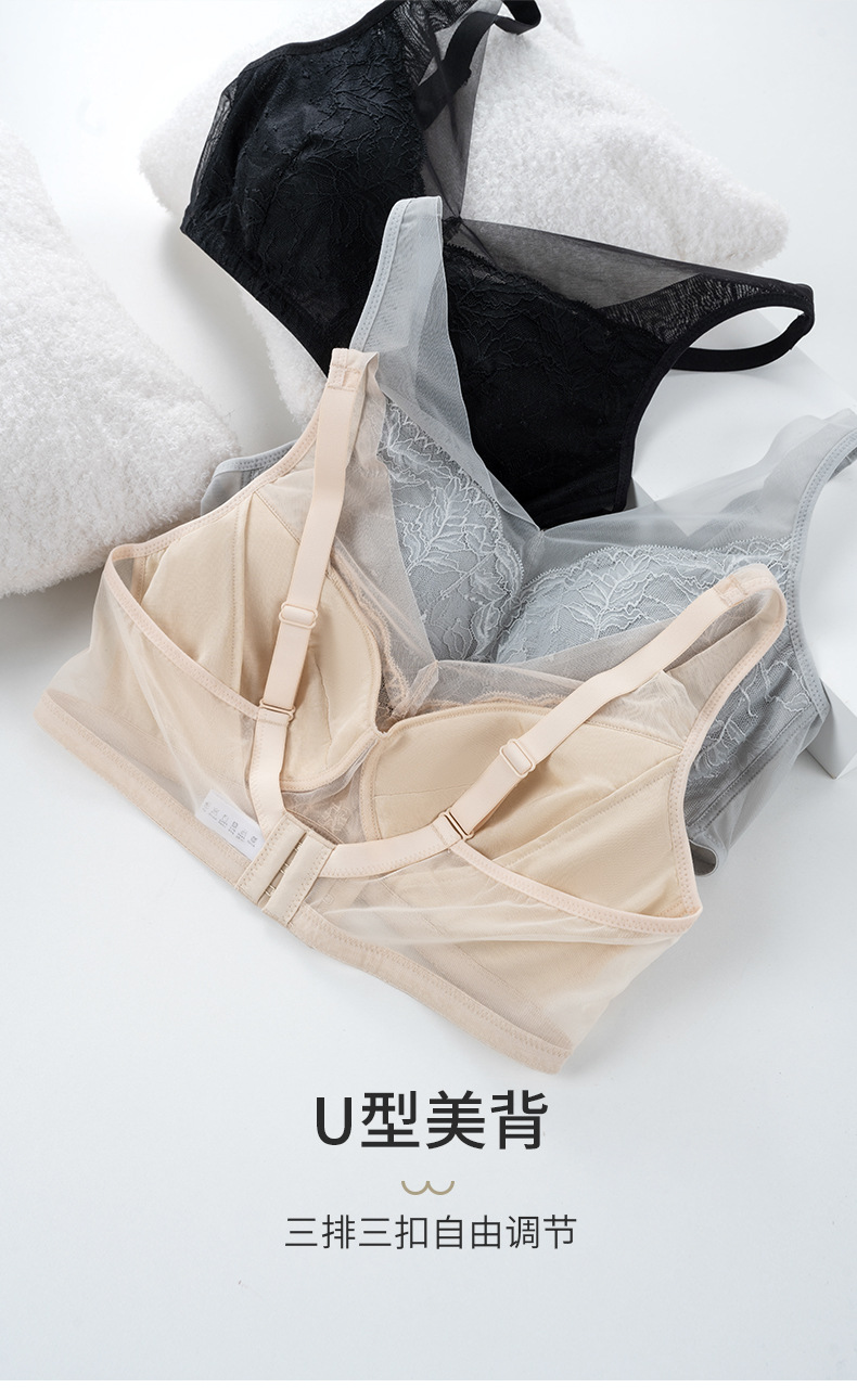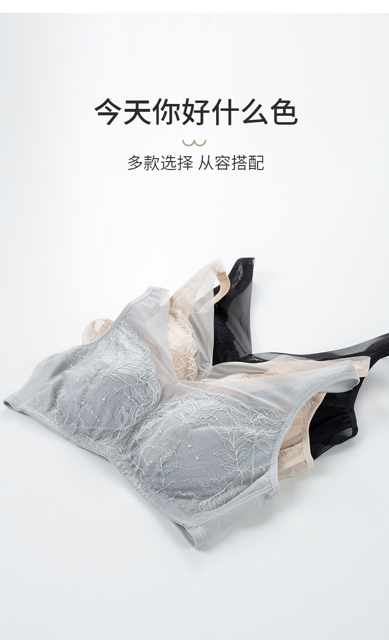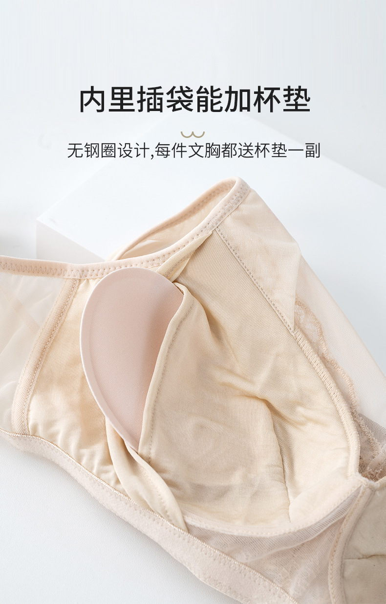 【洛诗琳老顾客福利定制款】真丝大胸显小 收副乳文胸 真丝V领网纱大胸显小文胸 桑蚕丝蕾丝花边聚拢内衣 贴身衣物不支持退换 桑蚕丝超薄性感蕾丝无钢圈内衣23932