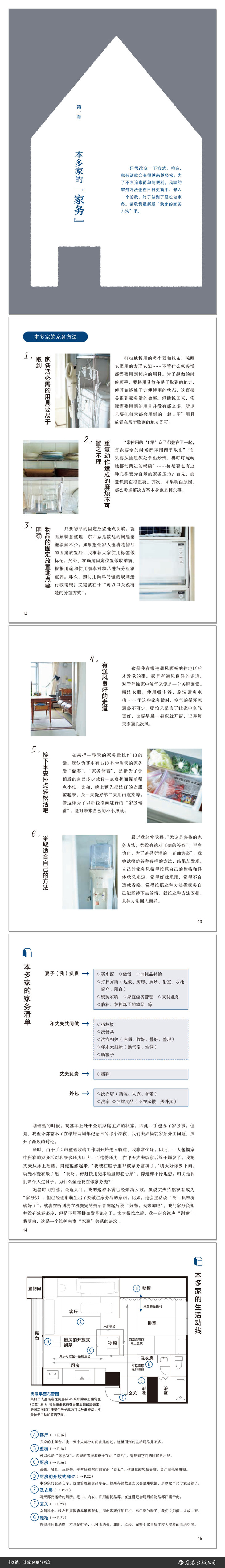 “总想偷懒的”整理收纳师本多沙织,以便捷性和舒适度为优先考虑因素,在日复一日的生活中渐渐摸索出了轻轻松松做家务的“家务整理收纳法”。这本书中,她将带你走进自己家,介绍缩短家务流程的生活动线,说明快速整理打扫的关键,教你合理高效地整理信息、规划时间。同时,她拜访了其他便于做家务的家庭,针对其家居设计重点加以解说,借由完整的实际案例,让读者能够更加深入地了解家务与房屋收纳之间的重要关系。