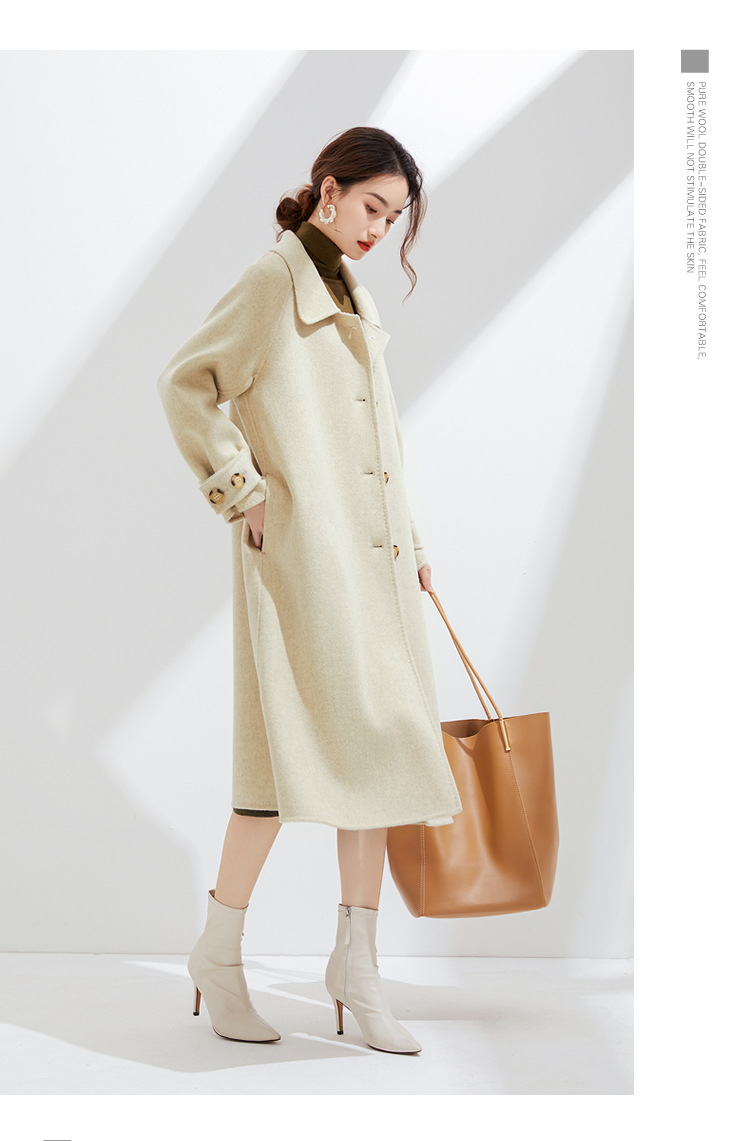 「自」全新升级【铂金会员441/天猫599/差价158】(03018)洛诗琳英伦风双面羊毛大衣2025秋冬显瘦单排扣加长款外套