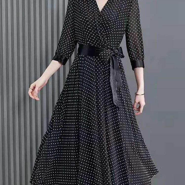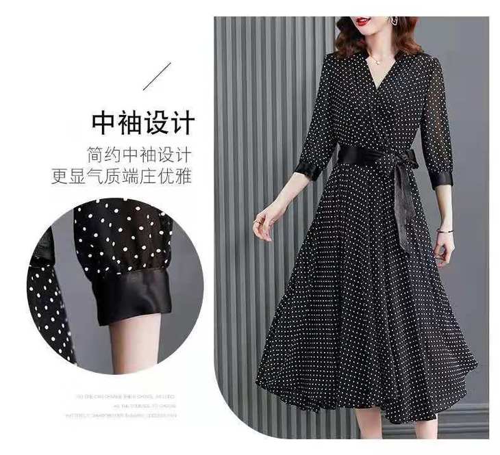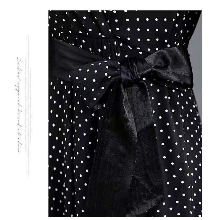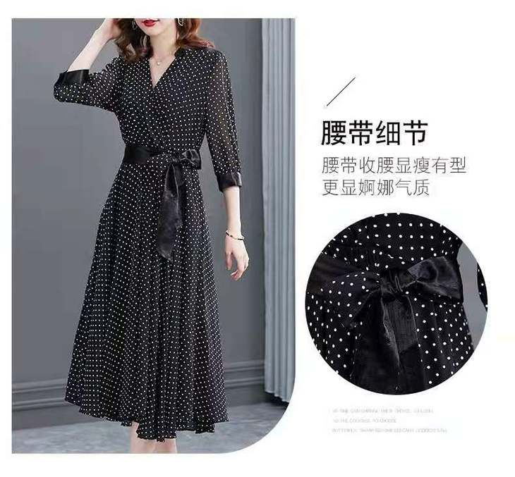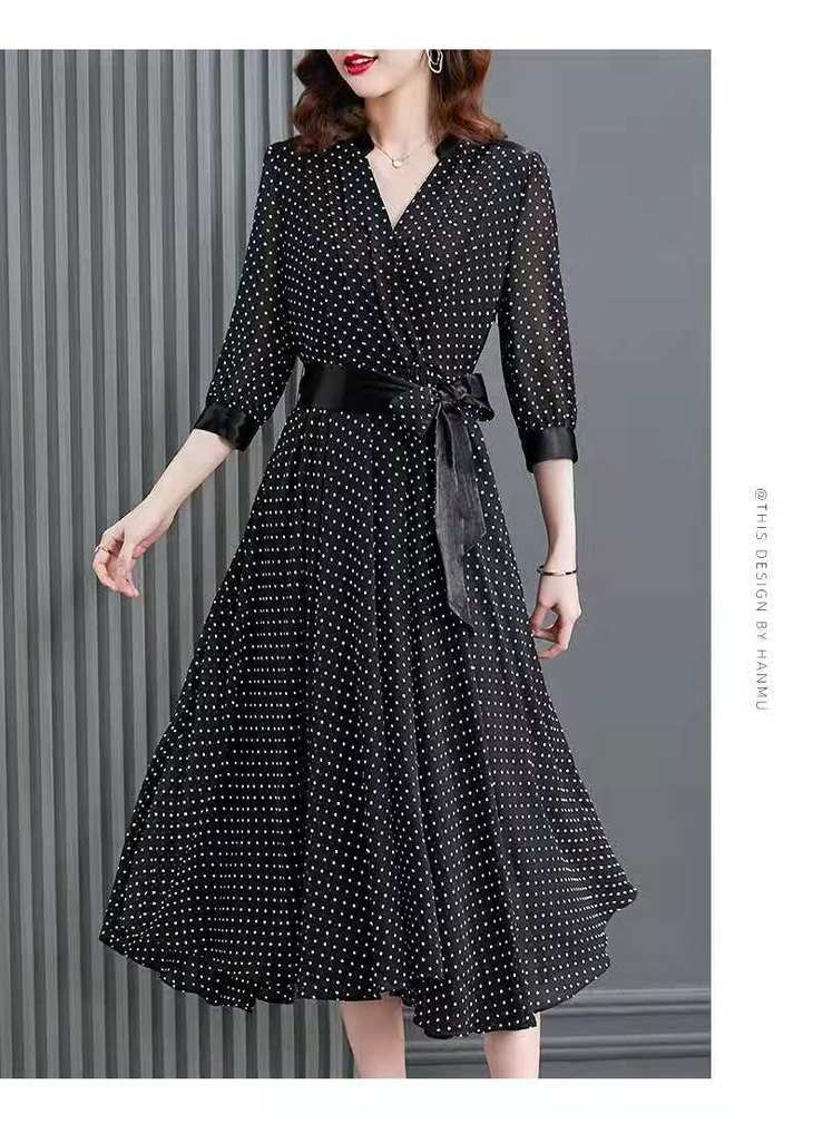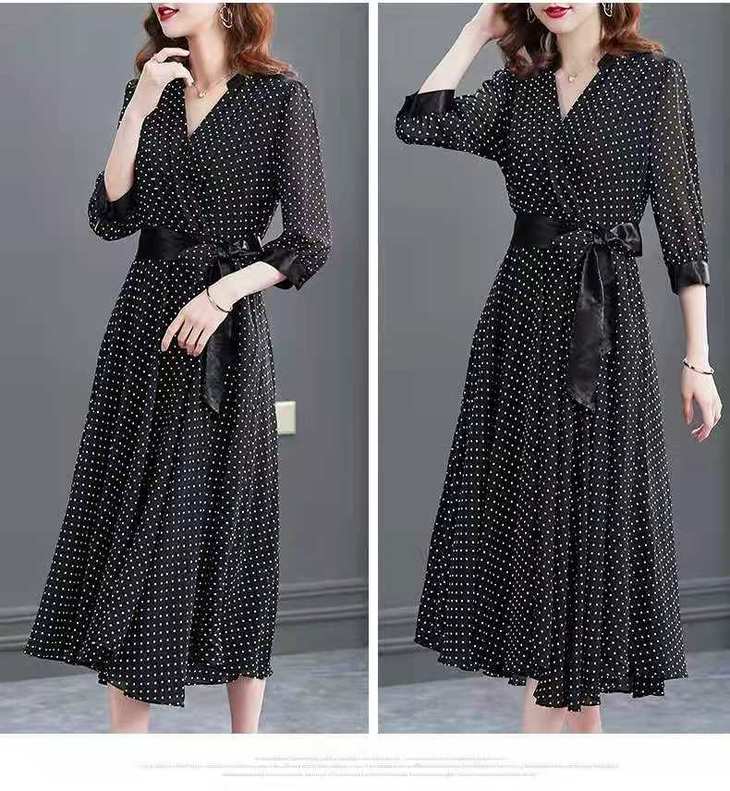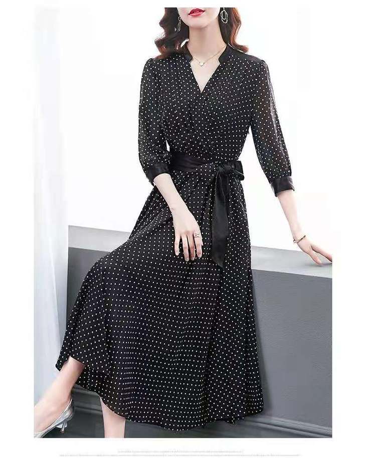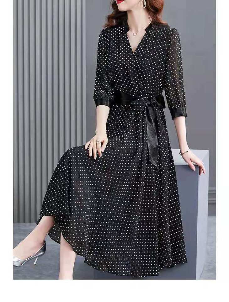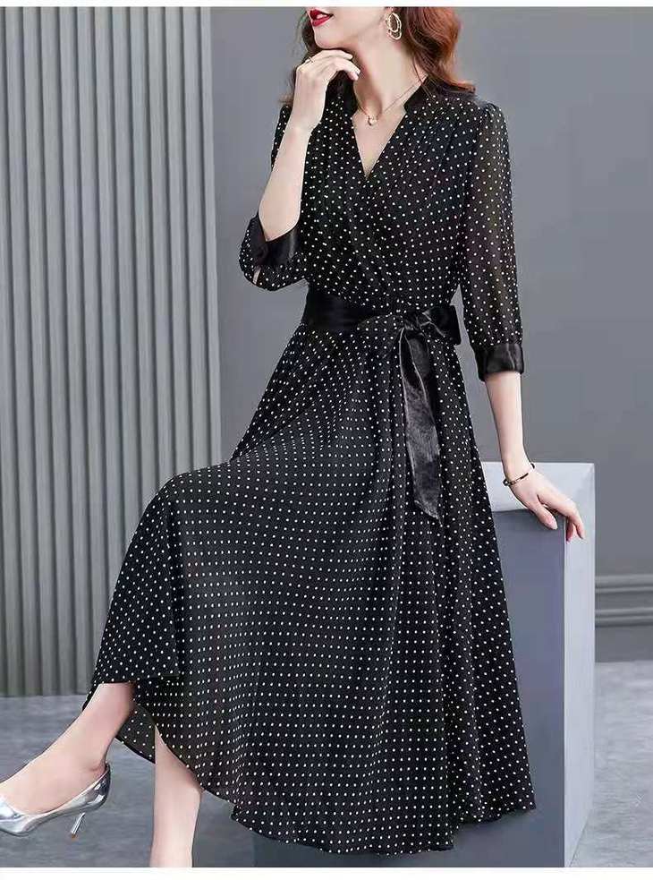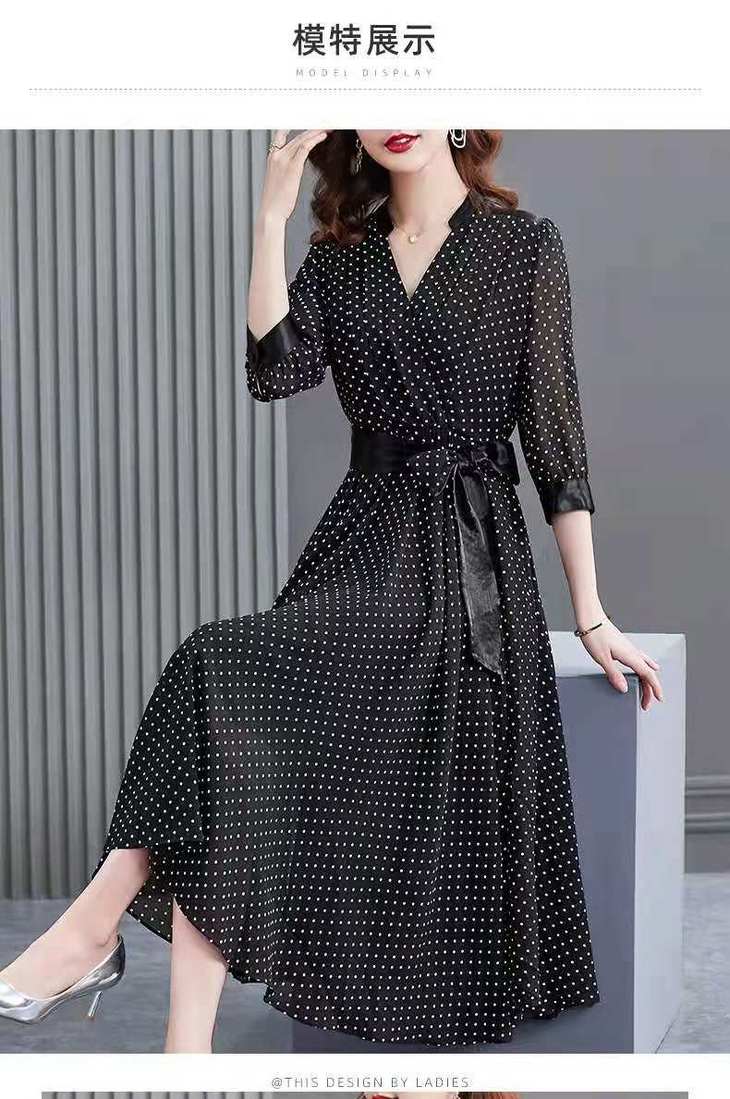 JXG -朵慕姿2021年新款夏季黑色雪纺长款连衣裙高端大码女装气质长裙