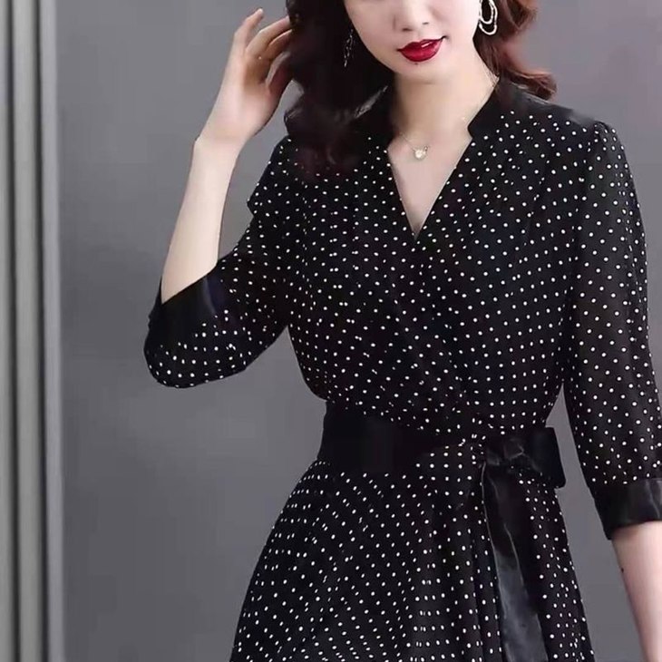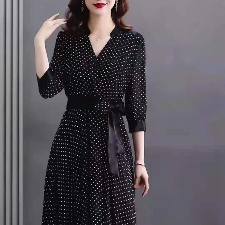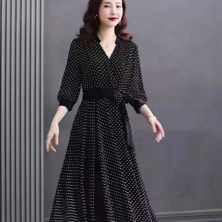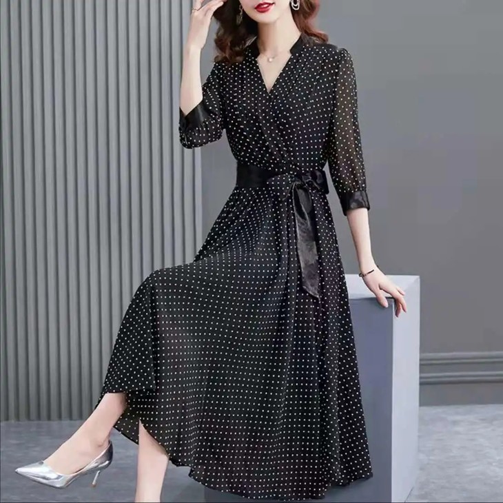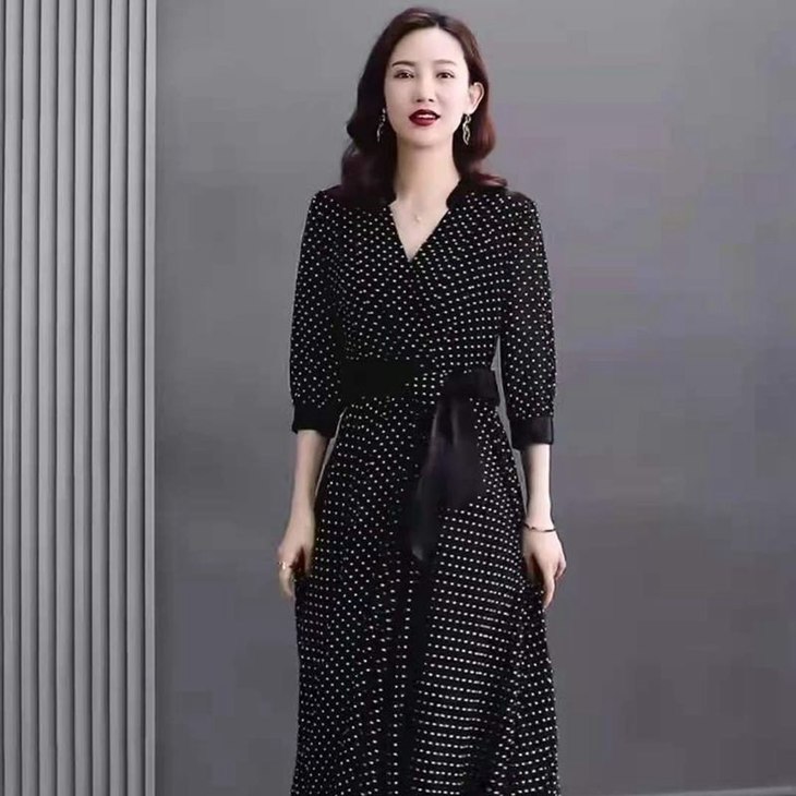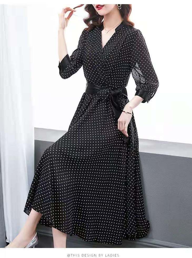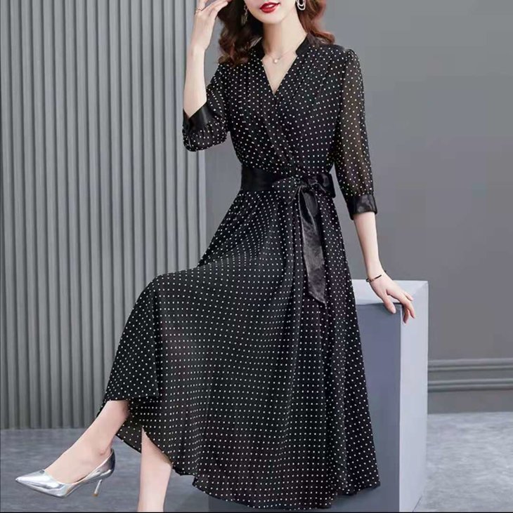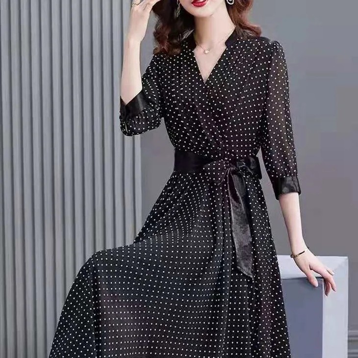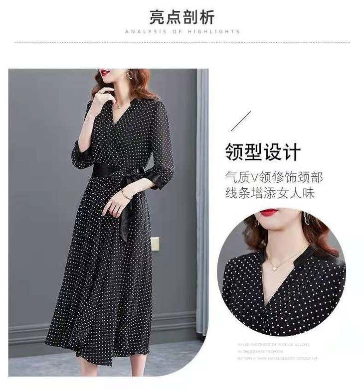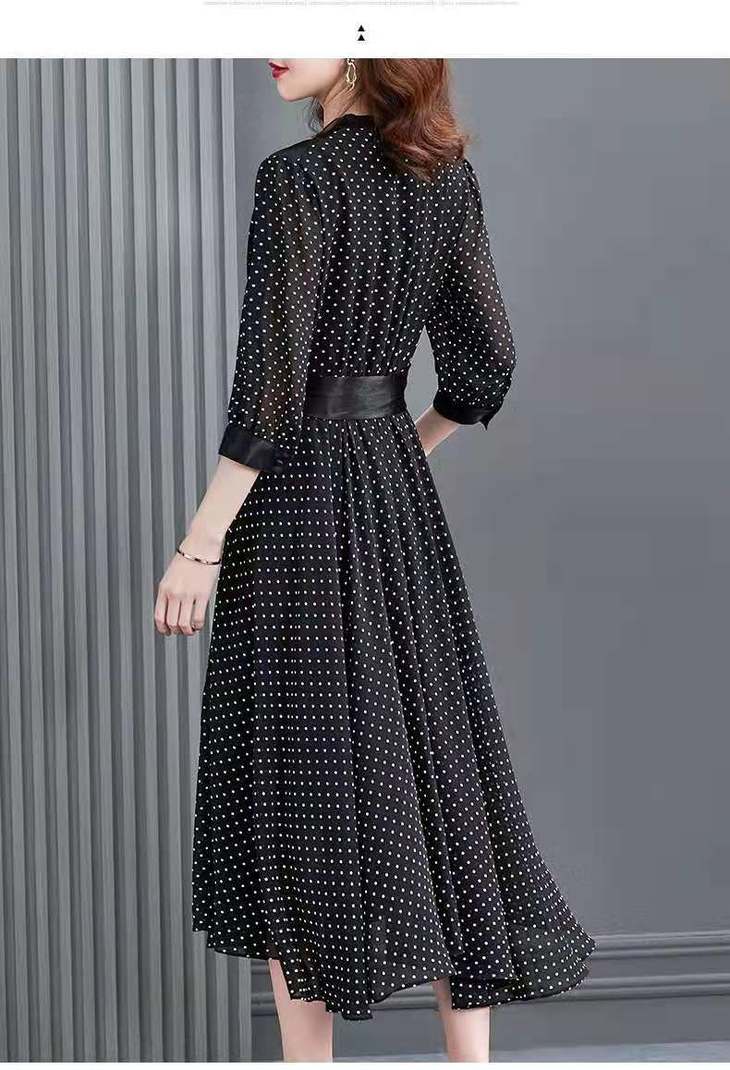JXG -朵慕姿2021年新款夏季黑色雪纺长款连衣裙高端大码女装气质长裙