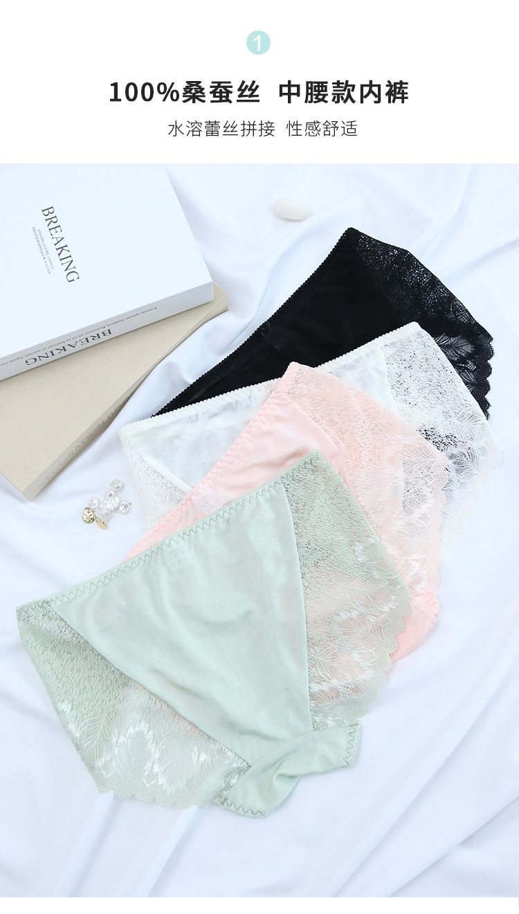 TG-TG01S133春夏真丝内裤女 蕾丝性感三角内裤透气舒适包臀中腰短裤