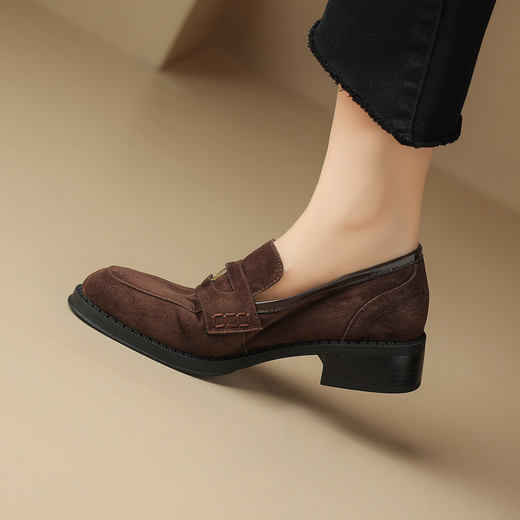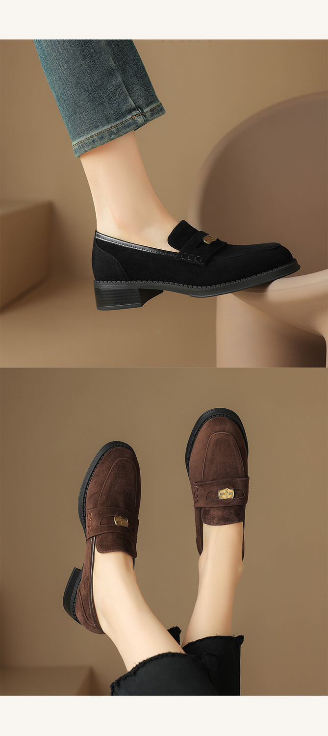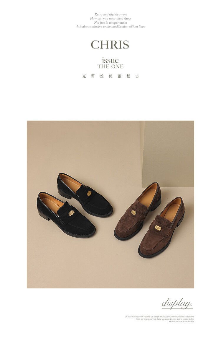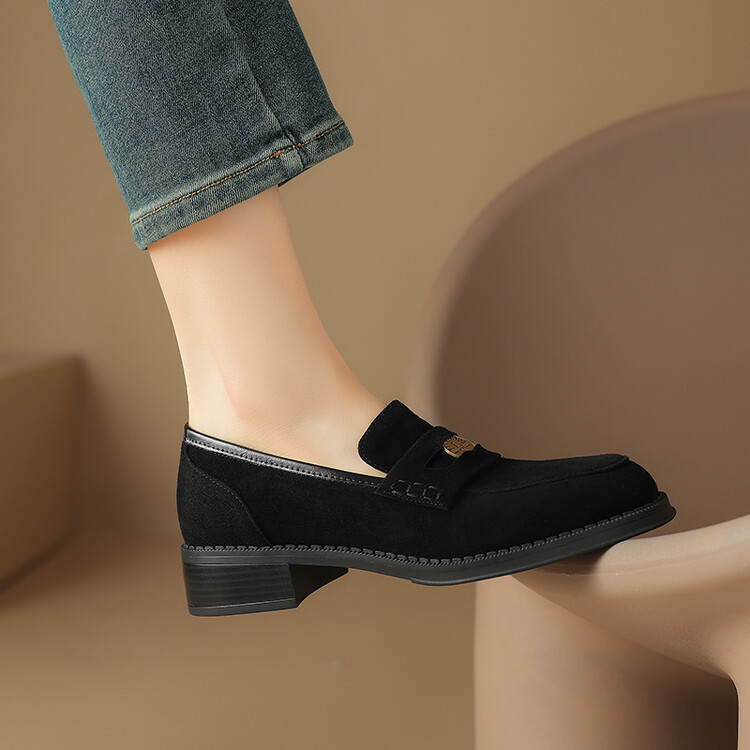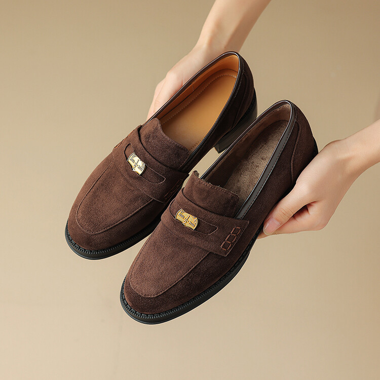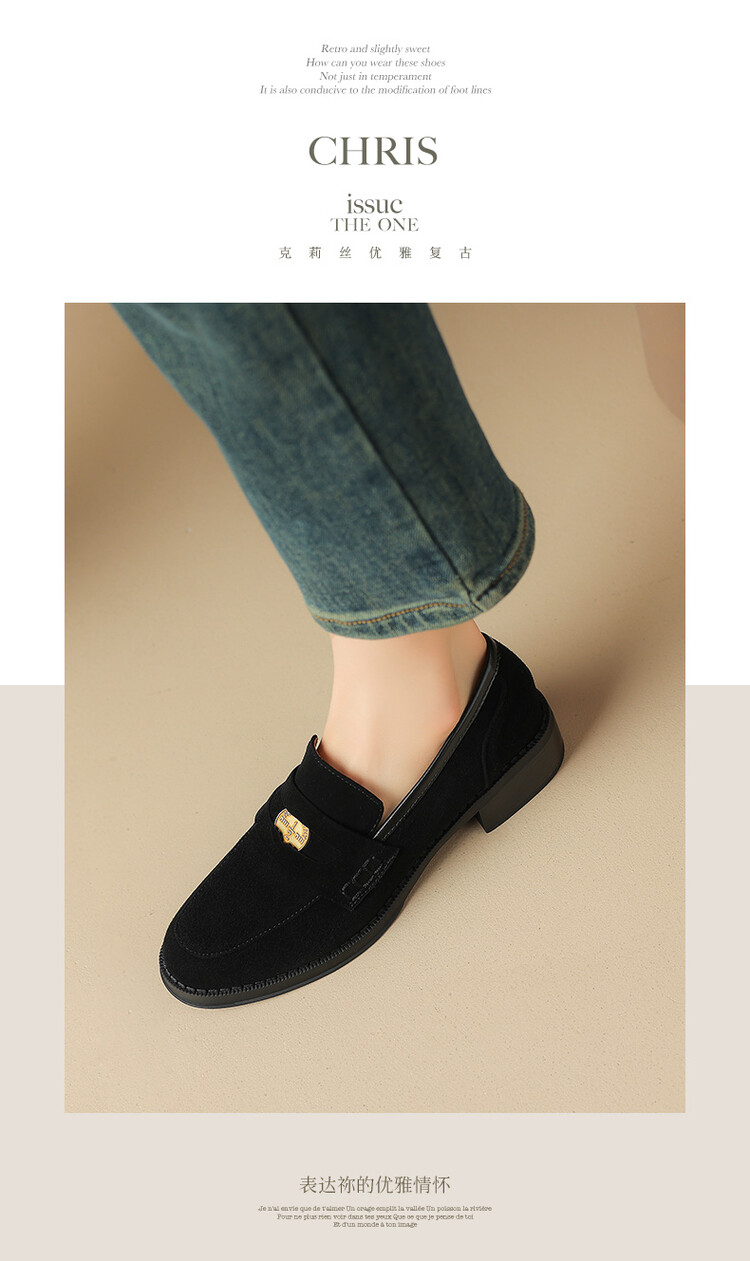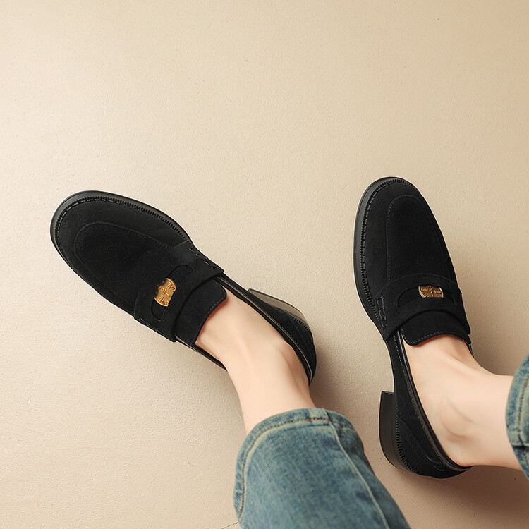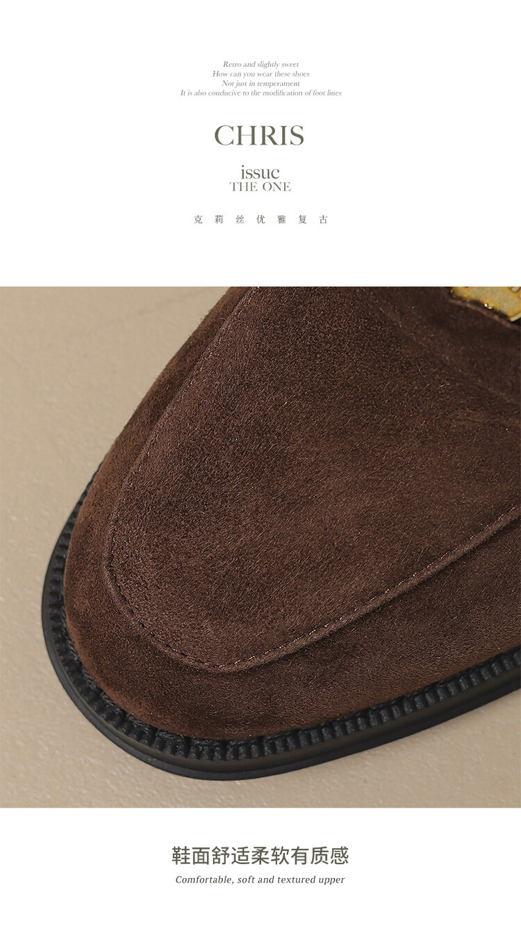 【预售5天】秋冬新款美拉德英伦风一脚蹬真皮小粗跟乐福单鞋女NGMZR&9667