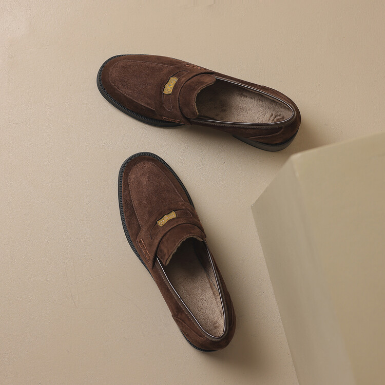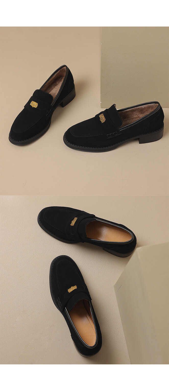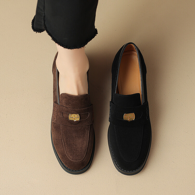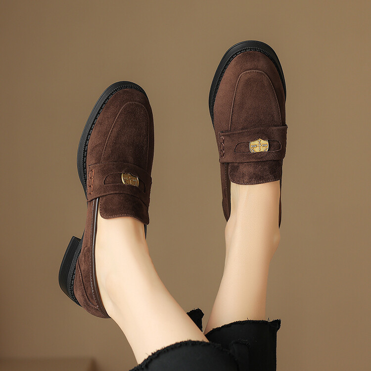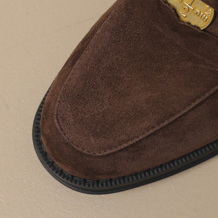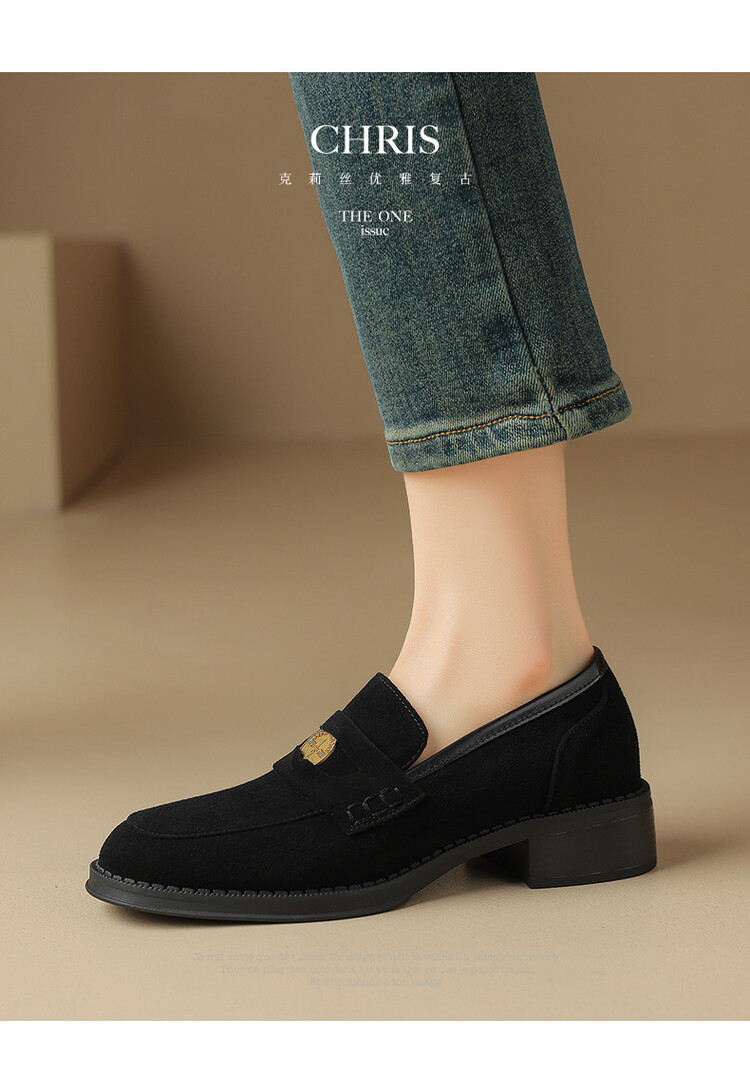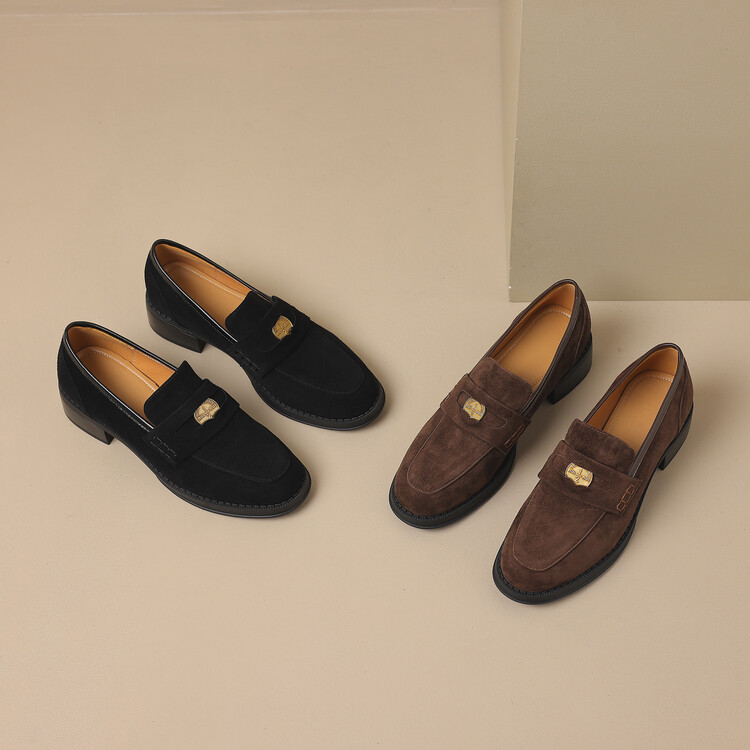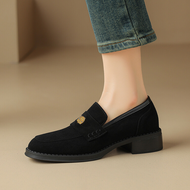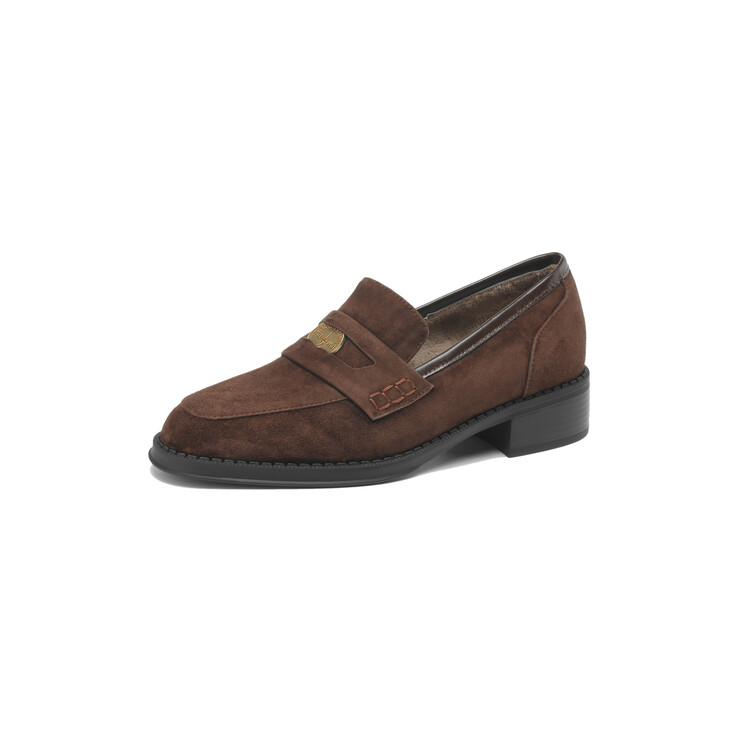 【预售5天】秋冬新款美拉德英伦风一脚蹬真皮小粗跟乐福单鞋女NGMZR&9667
