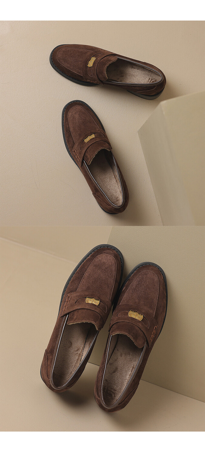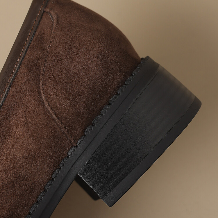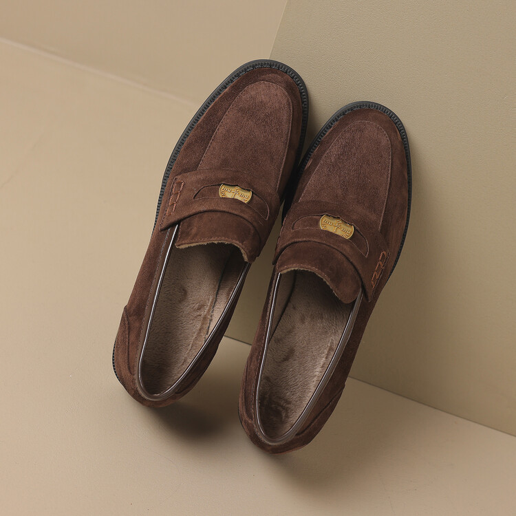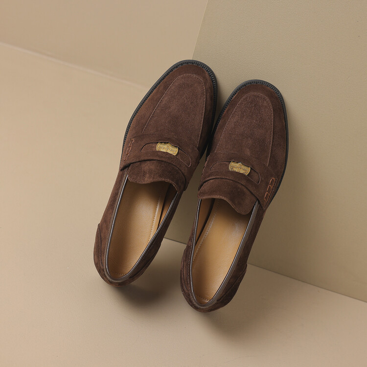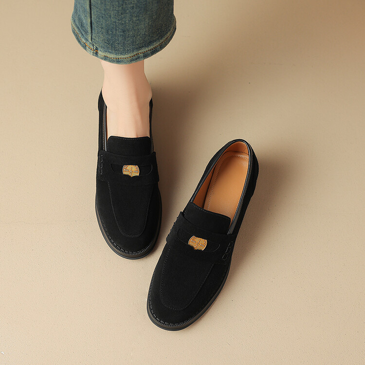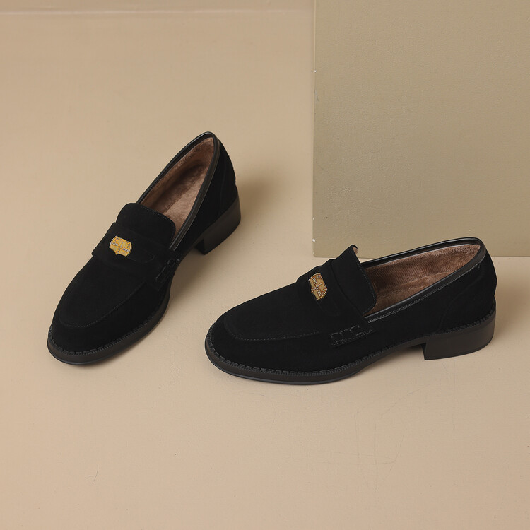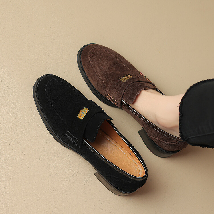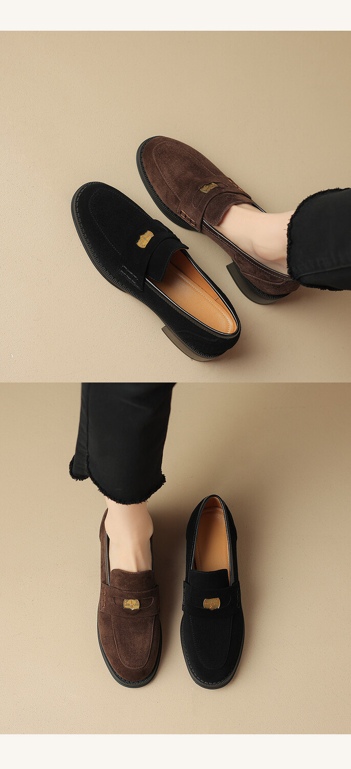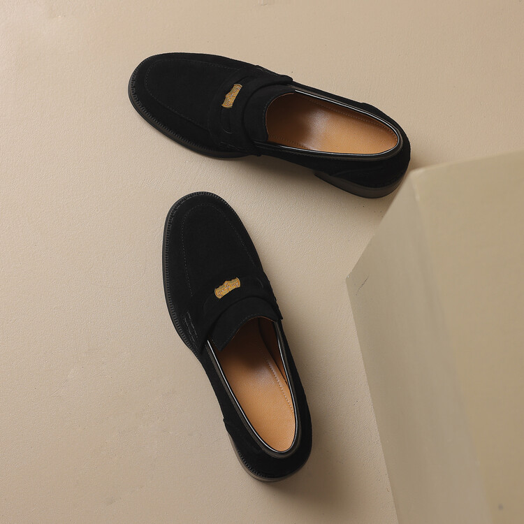 【预售5天】秋冬新款美拉德英伦风一脚蹬真皮小粗跟乐福单鞋女NGMZR&9667