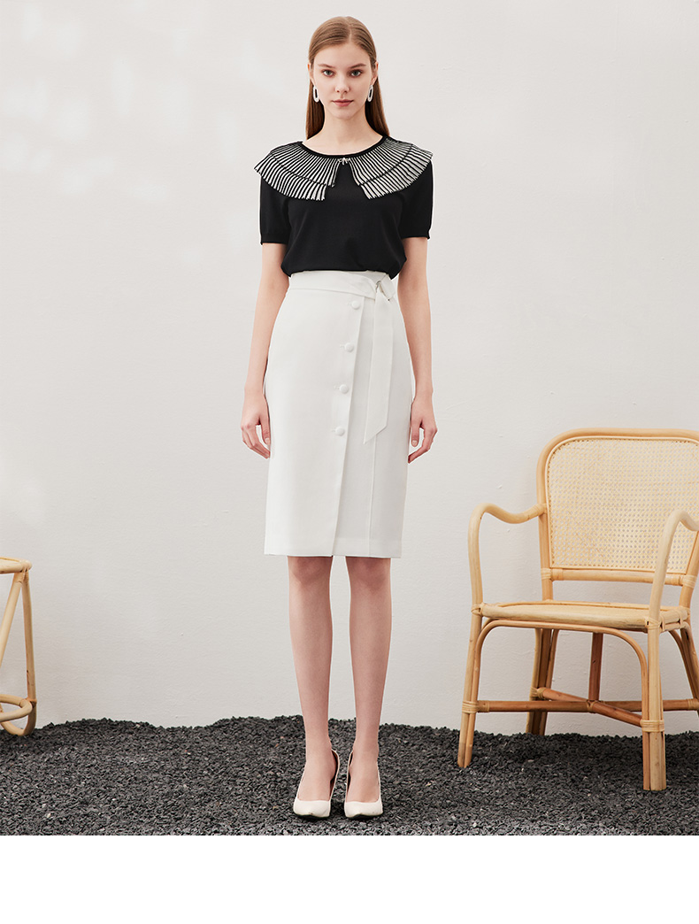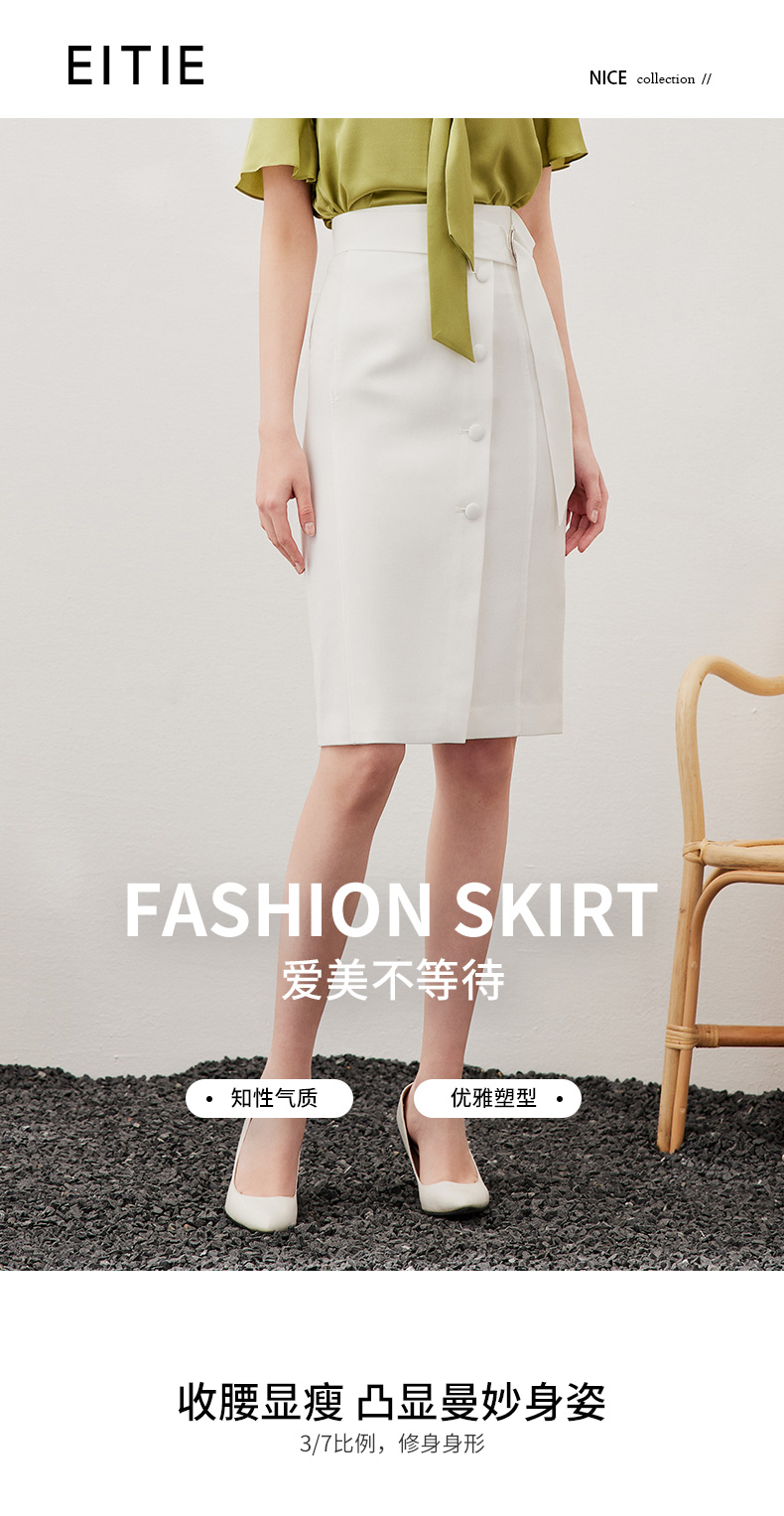 EITIE爱特爱夏季新品优雅时尚高腰开叉百搭半身裙包臀裙女7006706