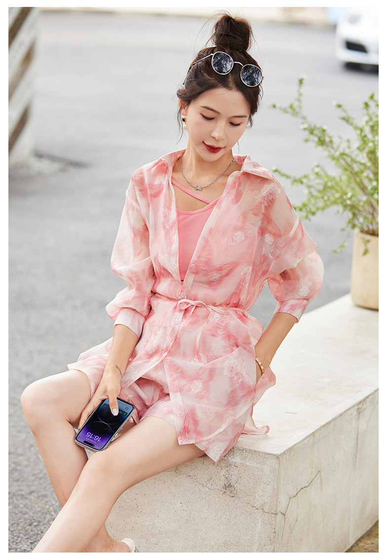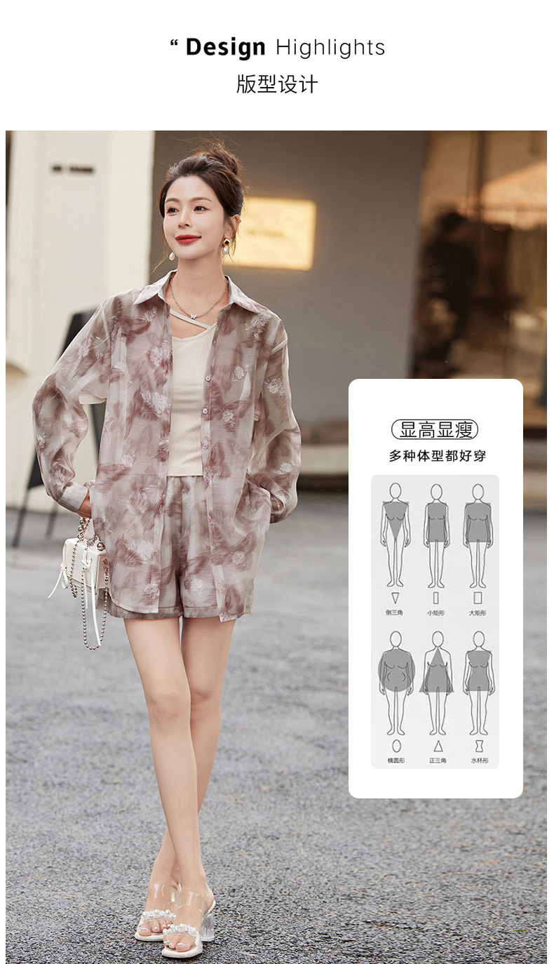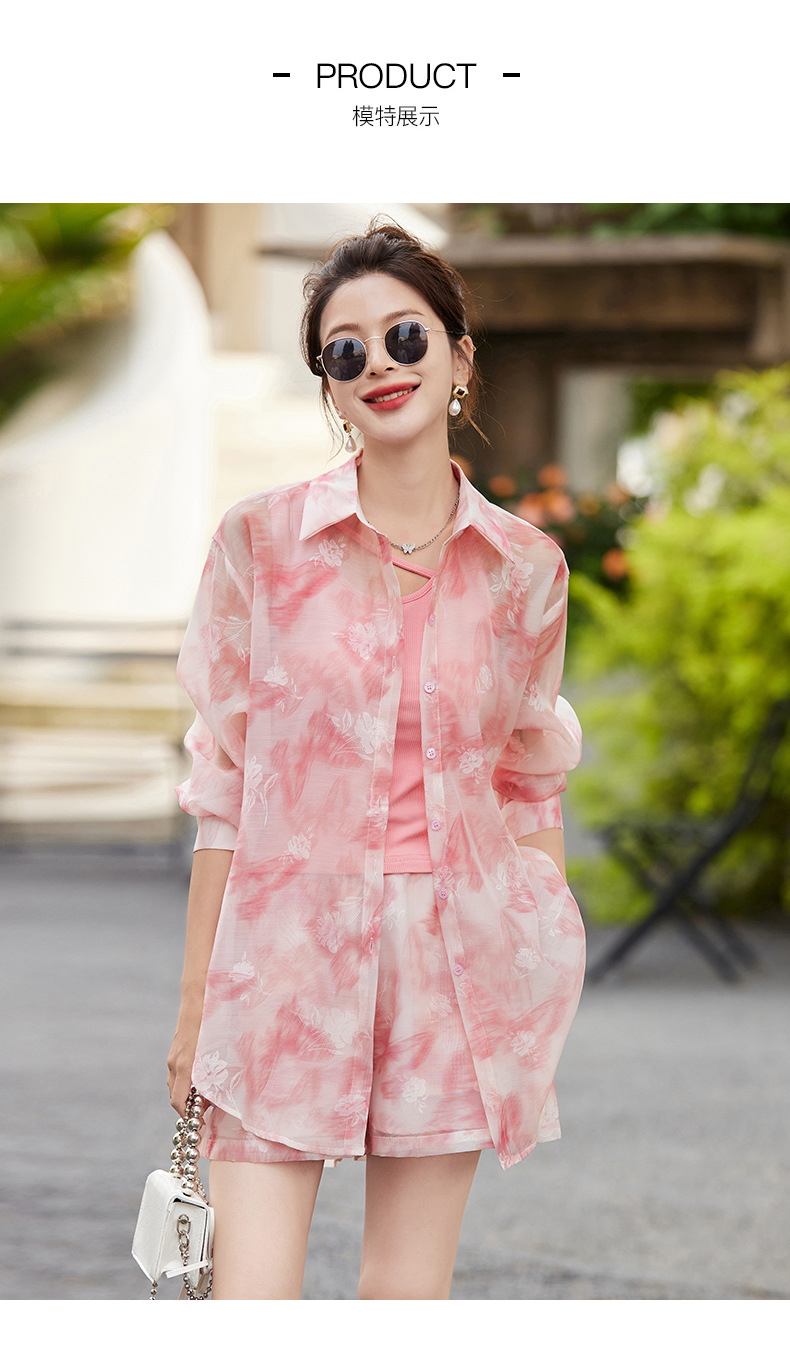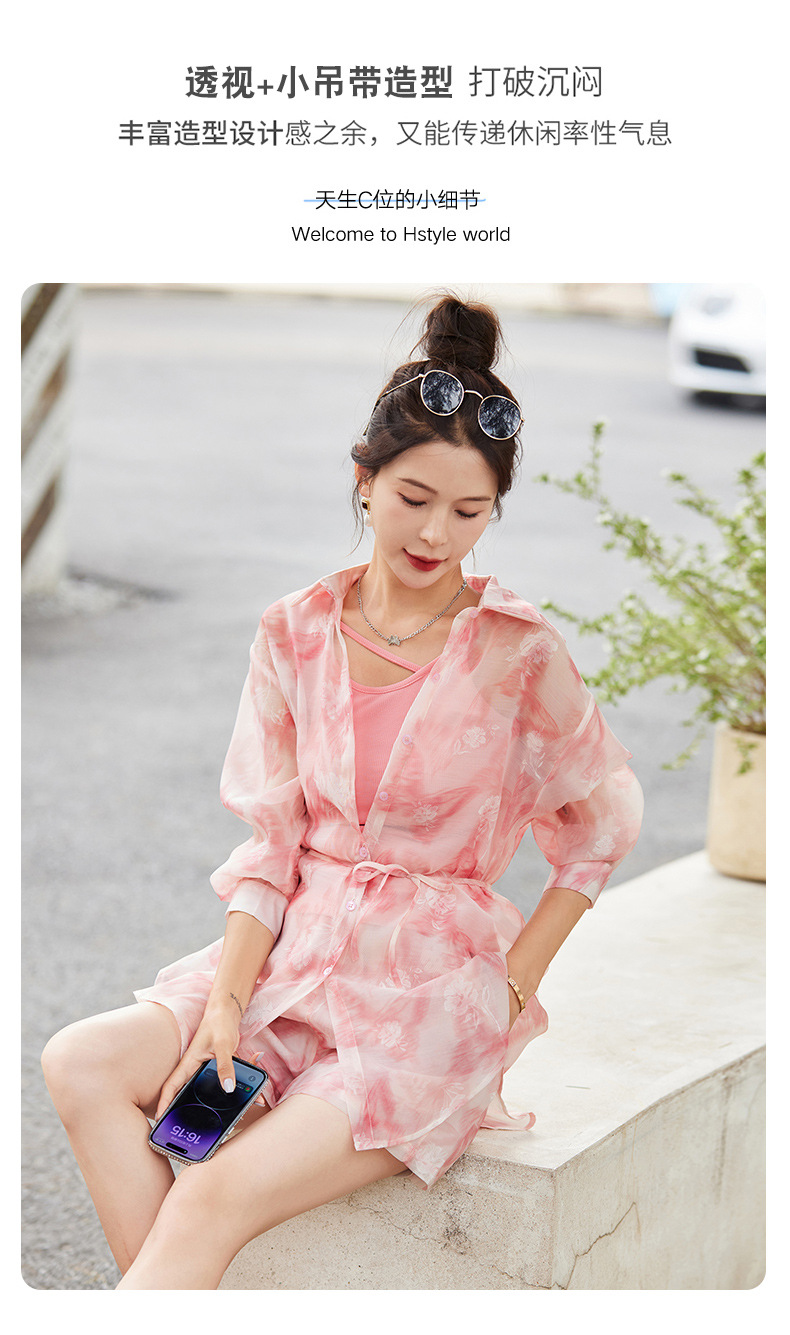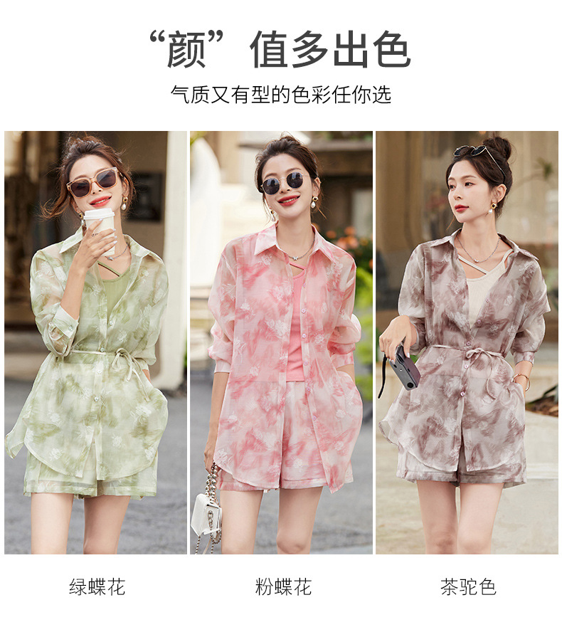 轻薄天丝防晒衣套装,时尚防晒衬衫休闲短裤三件套HR-SUN8821
