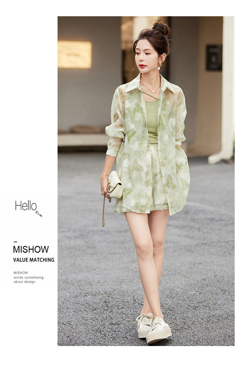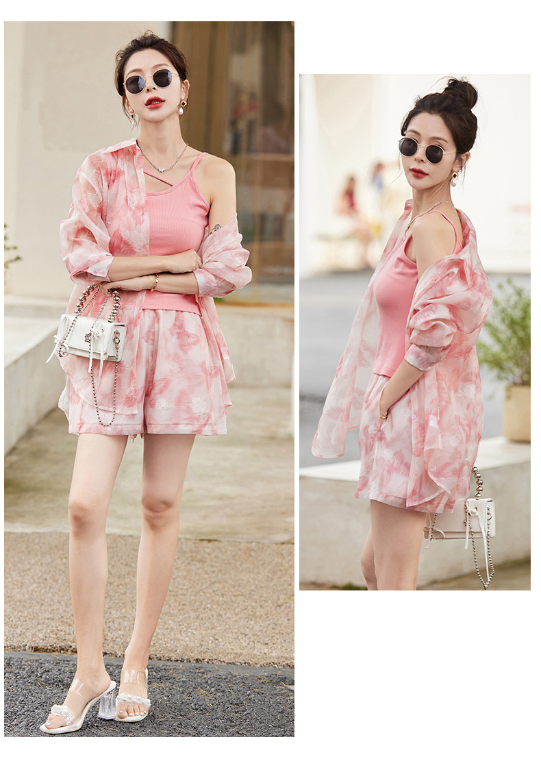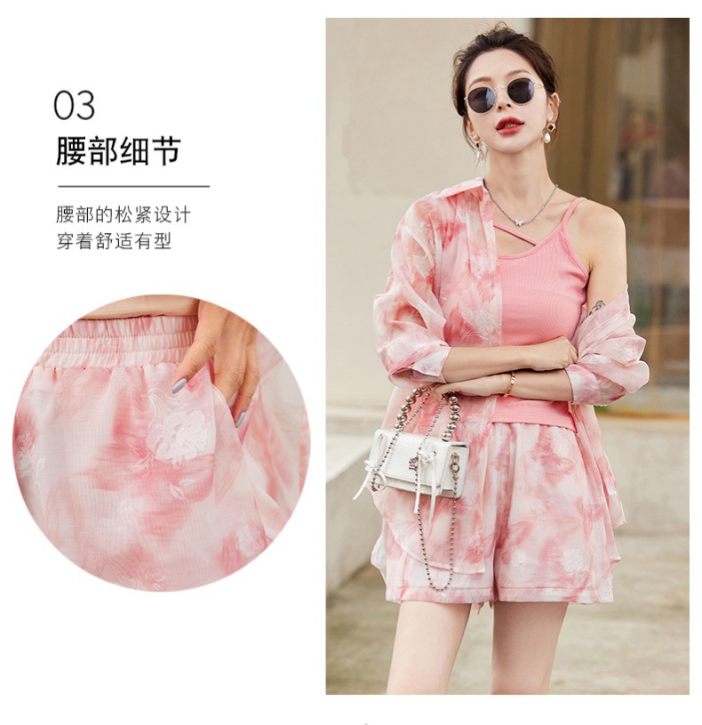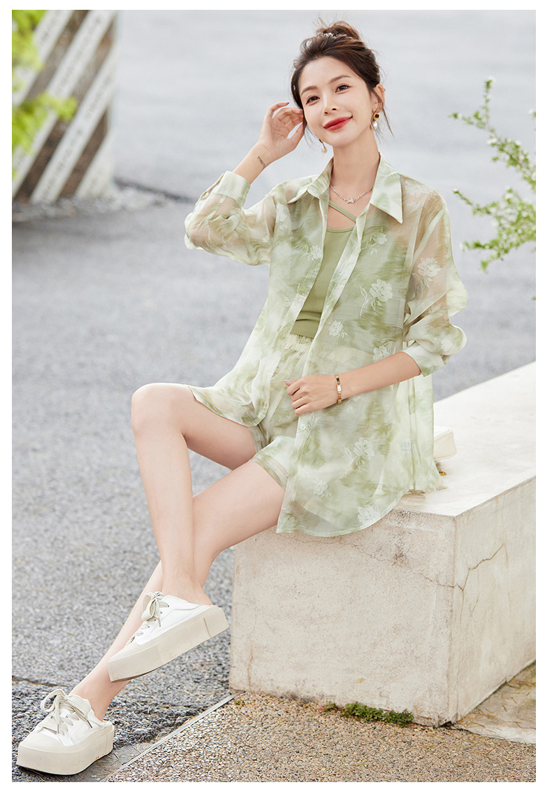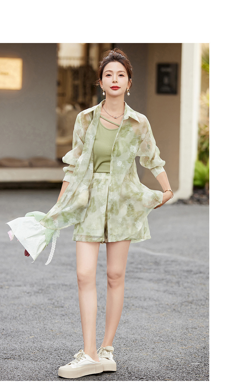 轻薄天丝防晒衣套装,时尚防晒衬衫休闲短裤三件套HR-SUN8821