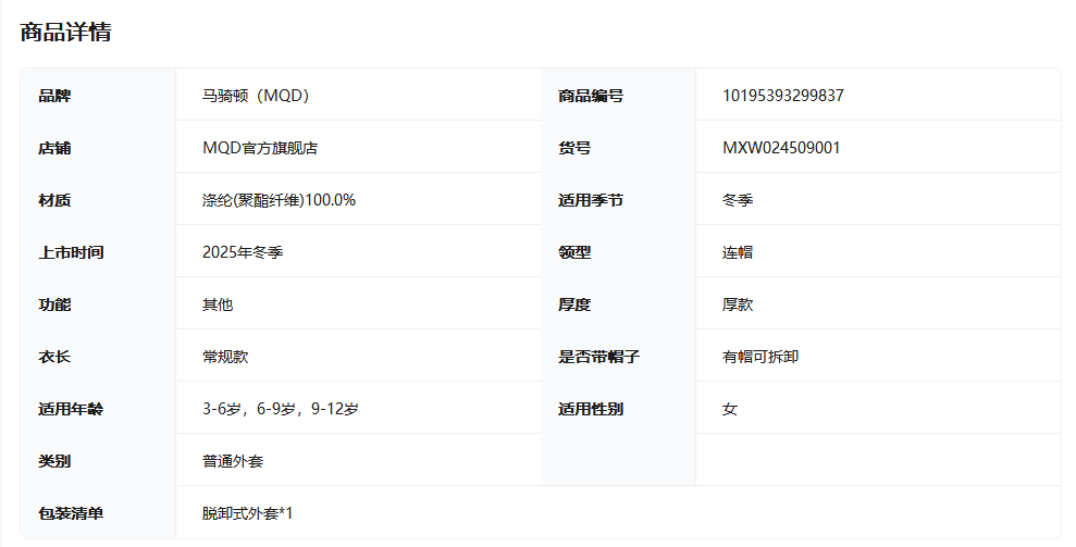 【秒】【特】【MQD】马骑顿(MQD)儿童秋冬款外套大衣女童新款休闲外套