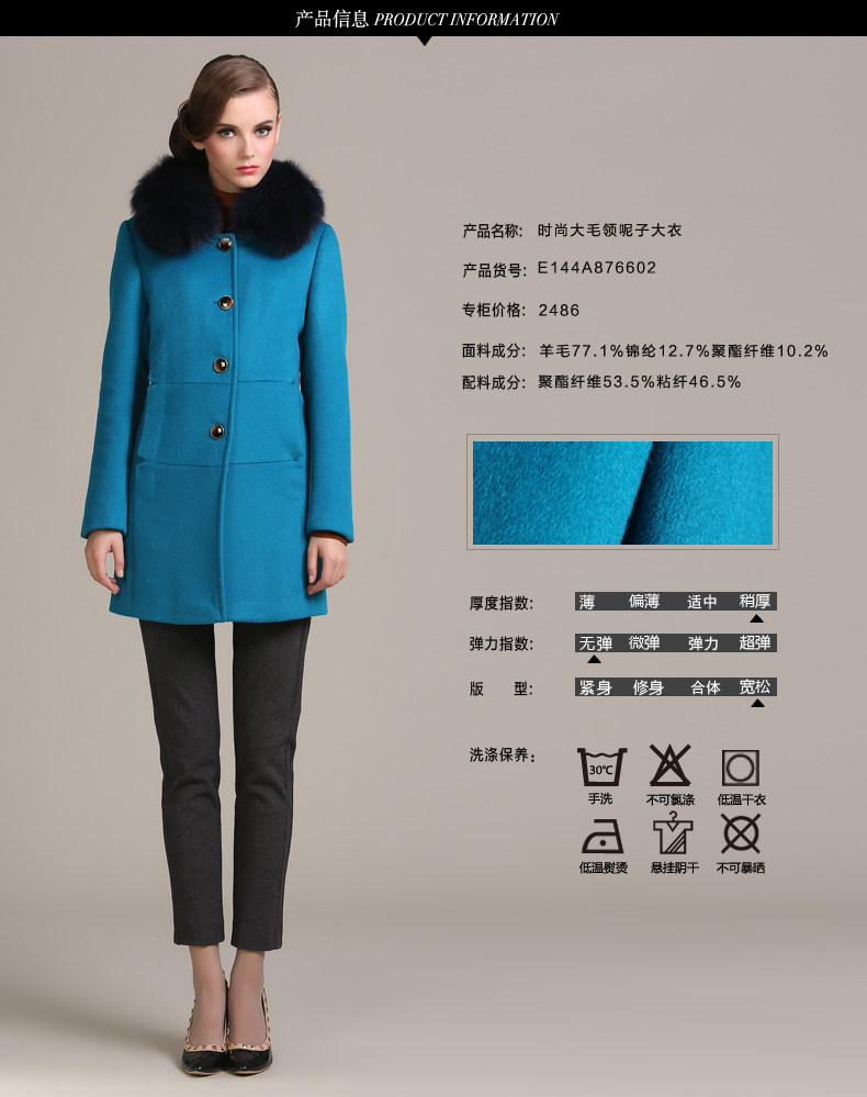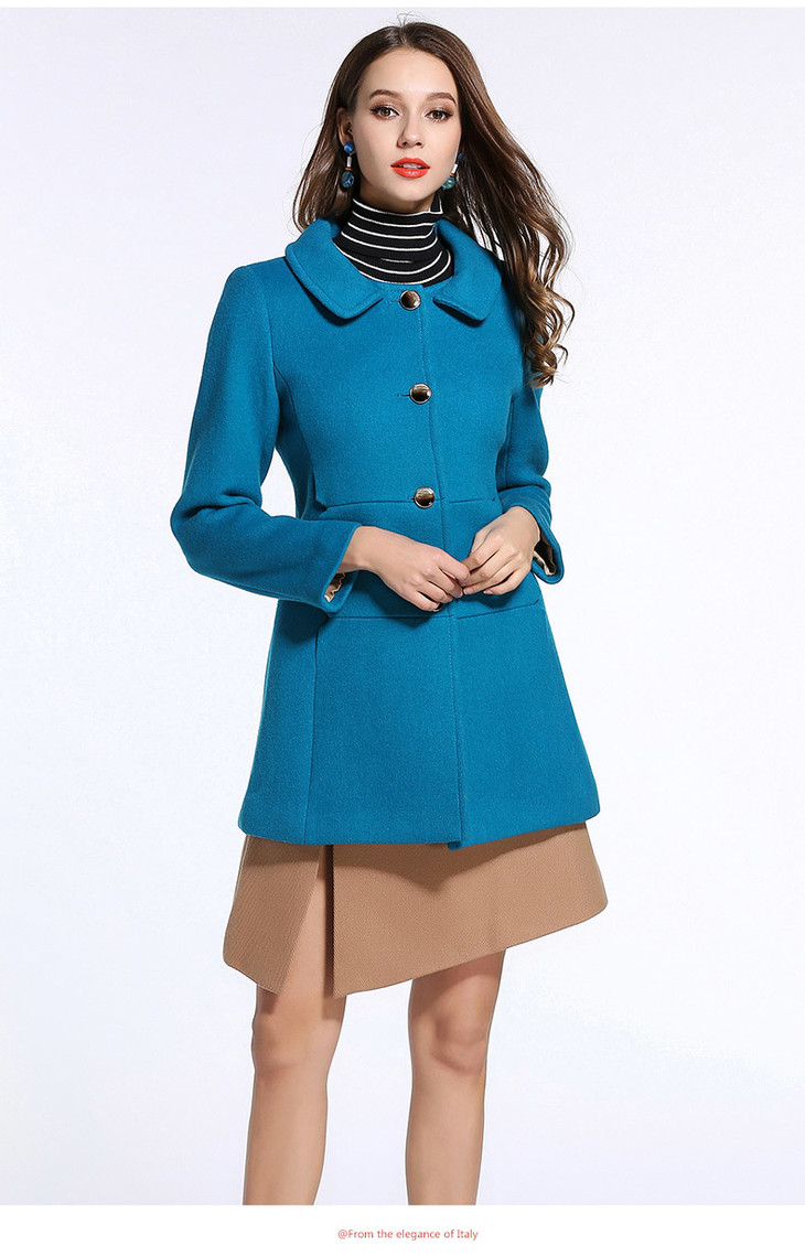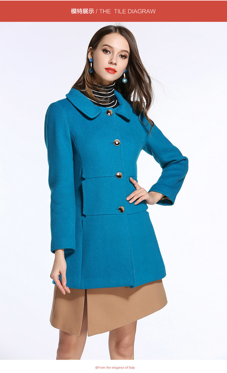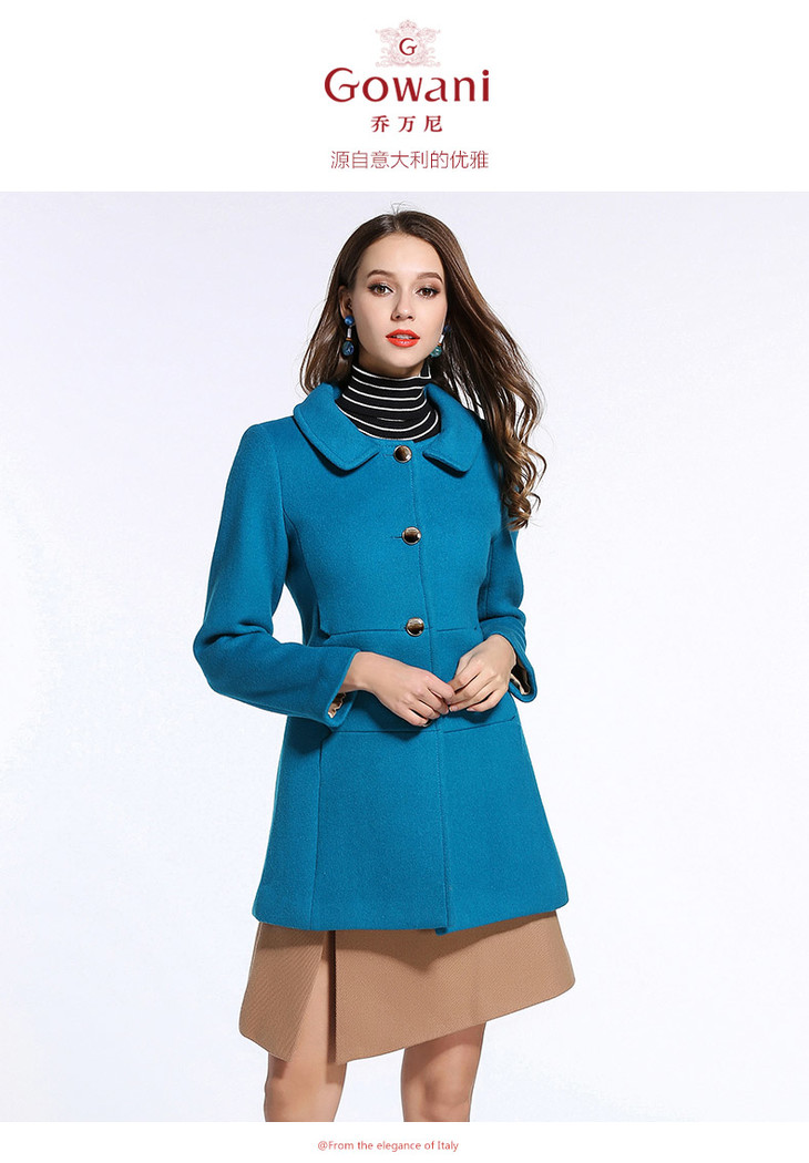乔万尼冬季高贵奢华羊毛呢修身外套纯色无毛领E144A876