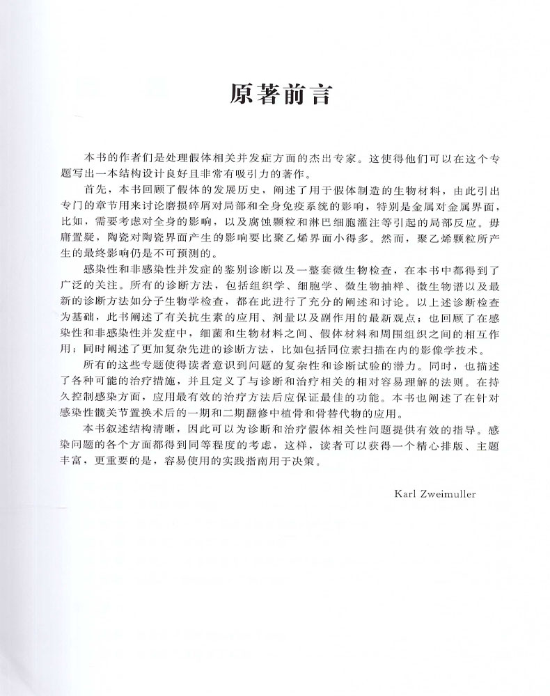 在全关节置换术后感染中,已经存在着各种不同的处理方案。本书将以现有证据、当前观念的回顾以及各种诊断和治疗的方法(包括外科方法和抗生素使用,并且因假体种类、感染和患者而异)为基础,为每一例可能存在的病例详细描述最佳的治疗方法和套路。本书将会是处理全关节置换术后感染的必备资料,包含了一系列富有逻辑且非常详细的指示,这有助于指导在这个领域进行手术的骨科医生们根据过去数十年详尽而细致的研究而做出最佳选择。