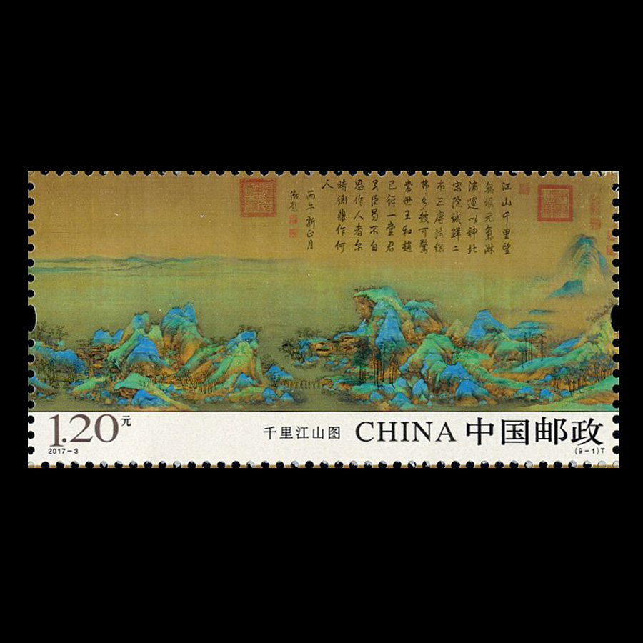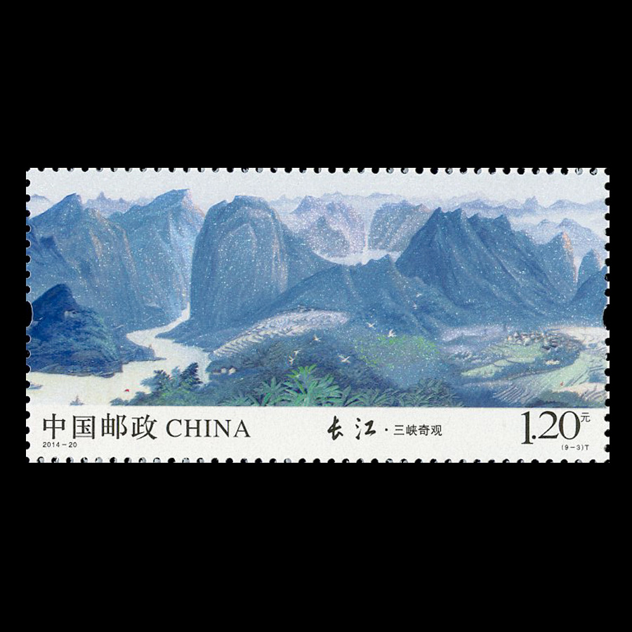 祖国大好河山邮票 一套六张 秦岭 黄河 长江 长城 千里江山图 清明上河图