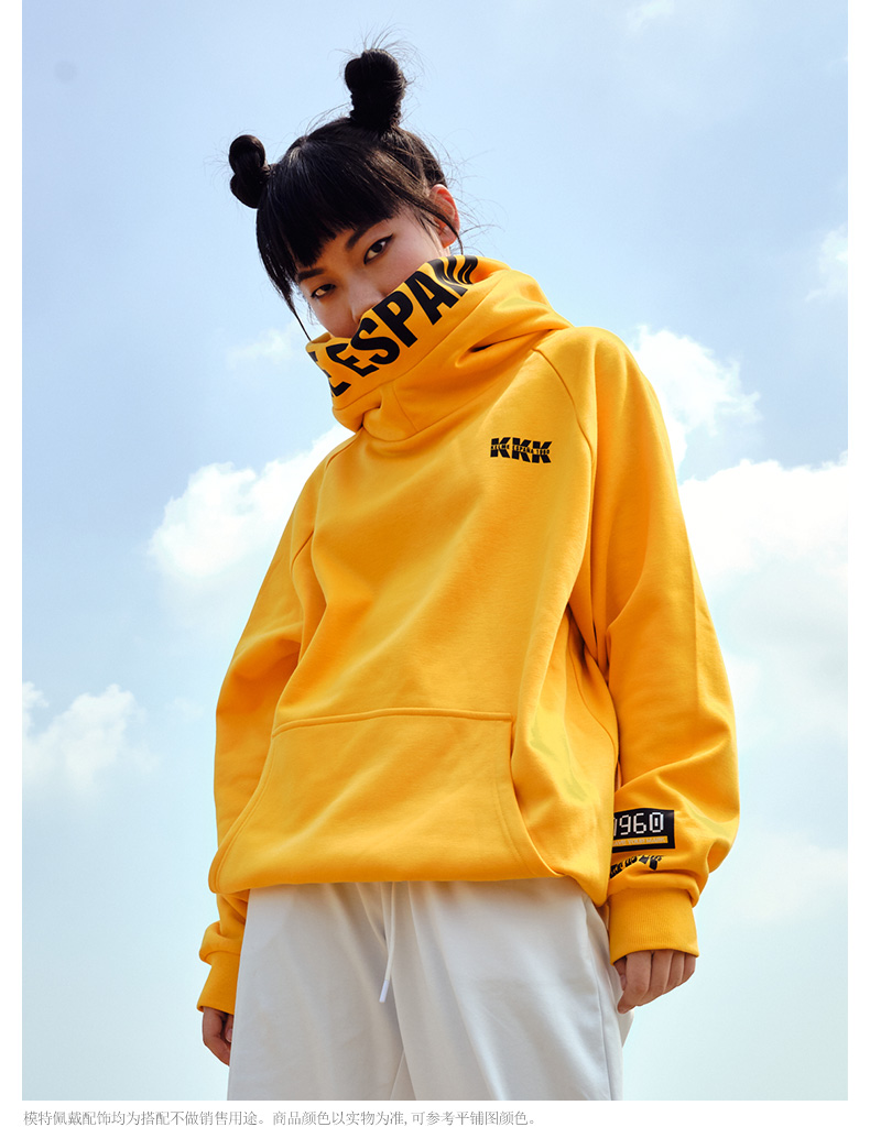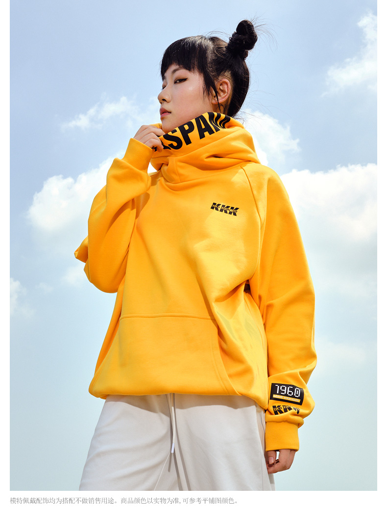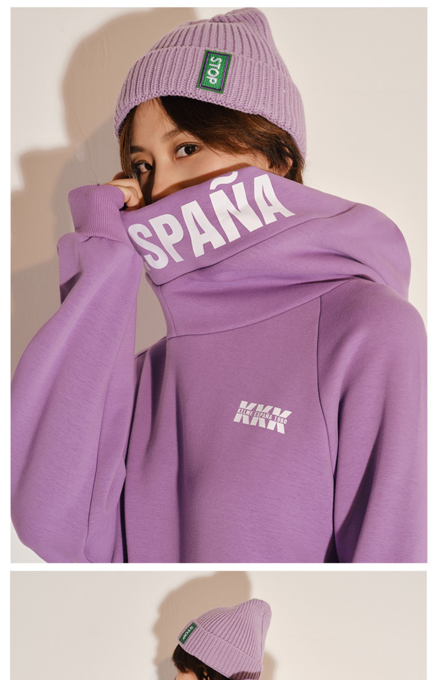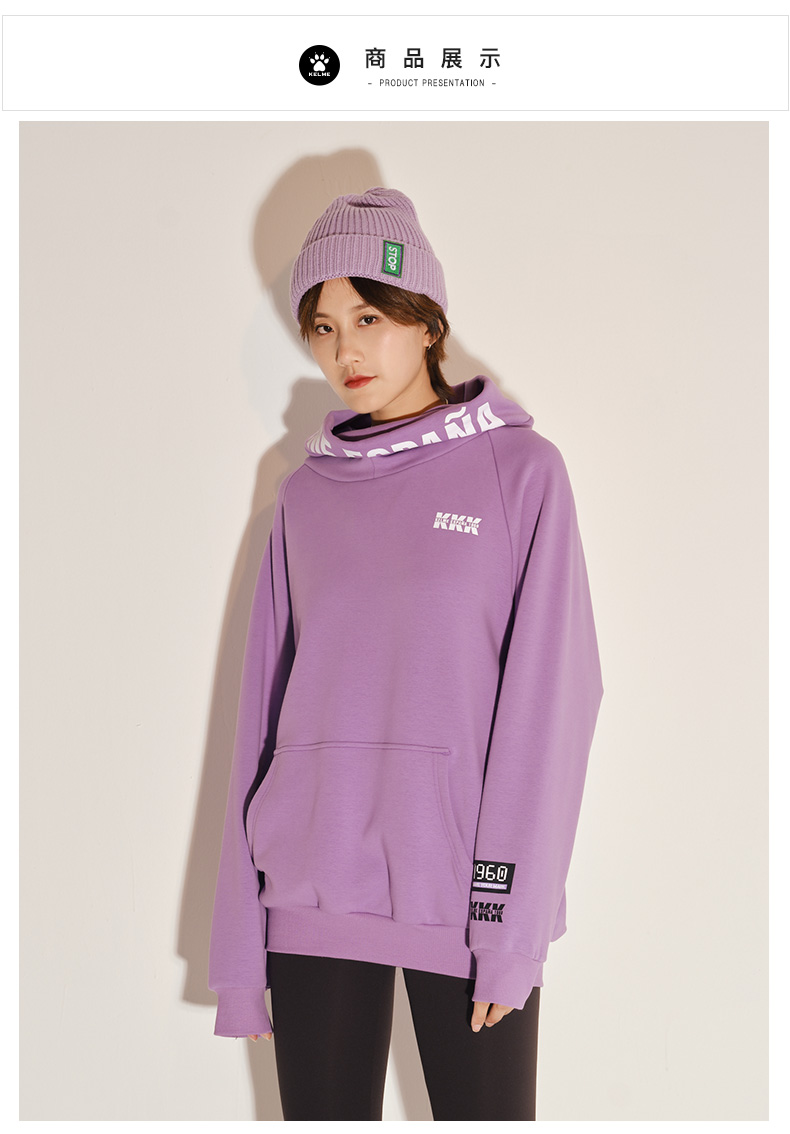 卡尔美 新款秋冬字母高领连帽韩版ins宽松中长款卫衣女