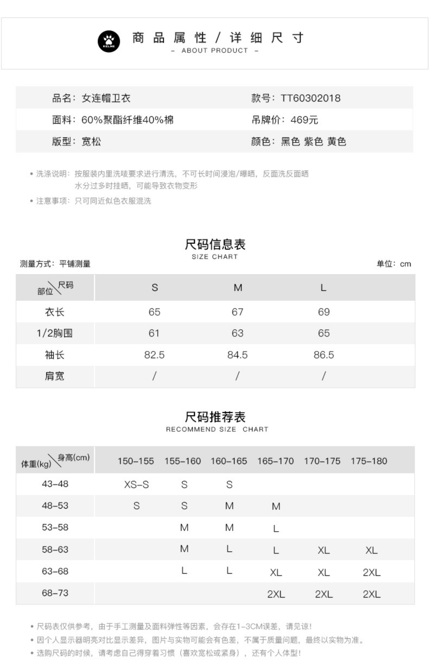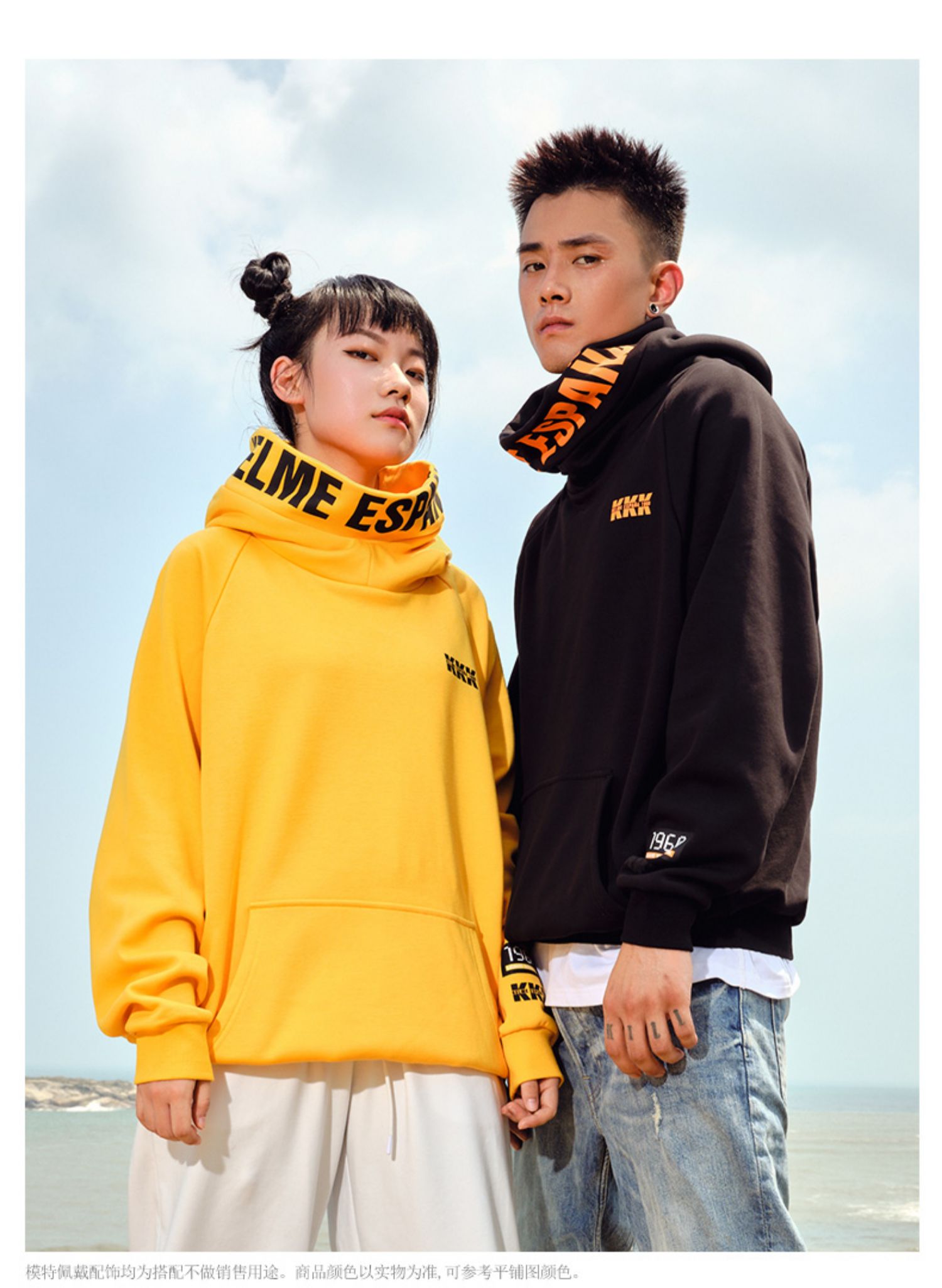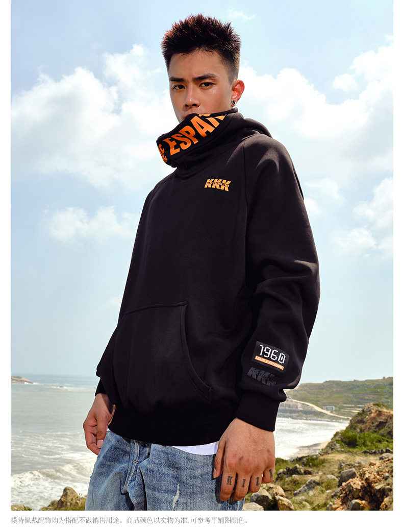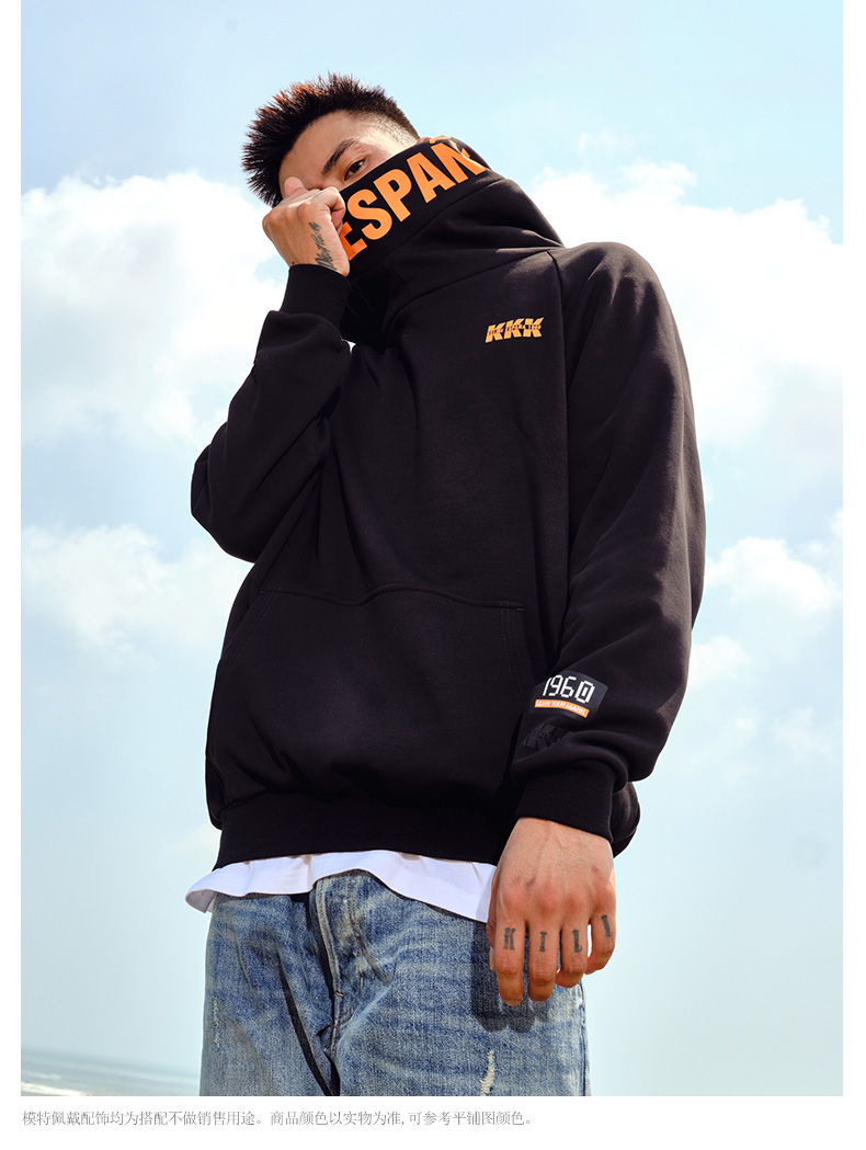 卡尔美 新款秋冬字母高领连帽韩版ins宽松中长款卫衣女