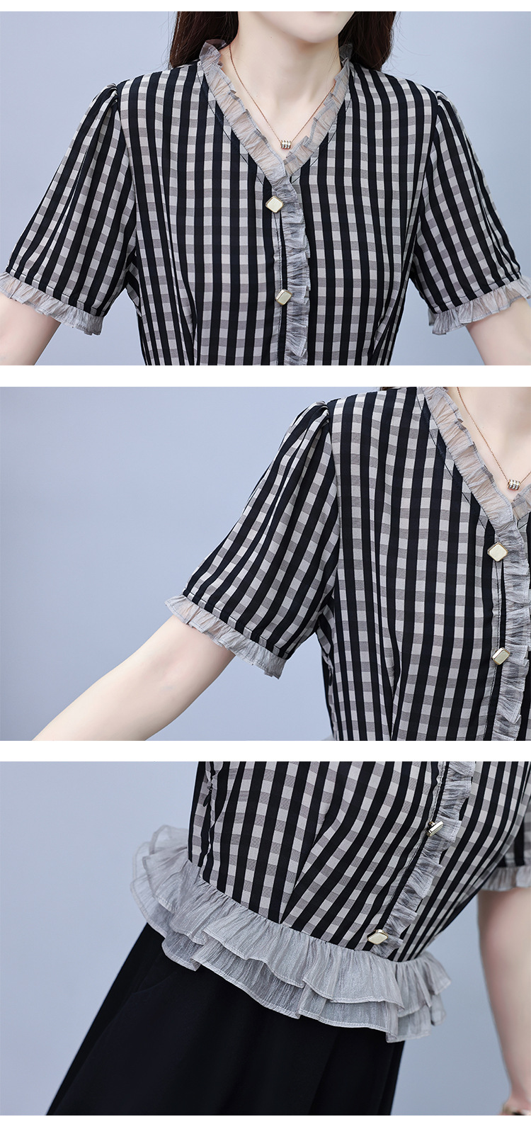 丁摩 夏季薄款镂空针织衫女新款天丝短袖T恤欧根纱木耳边小衫5ZF-NS-2399